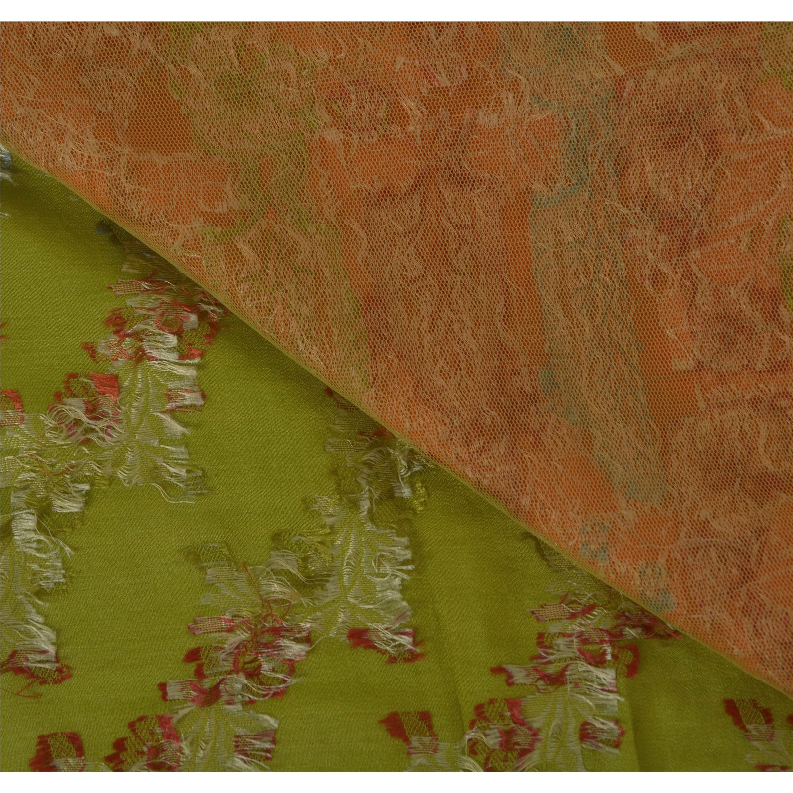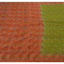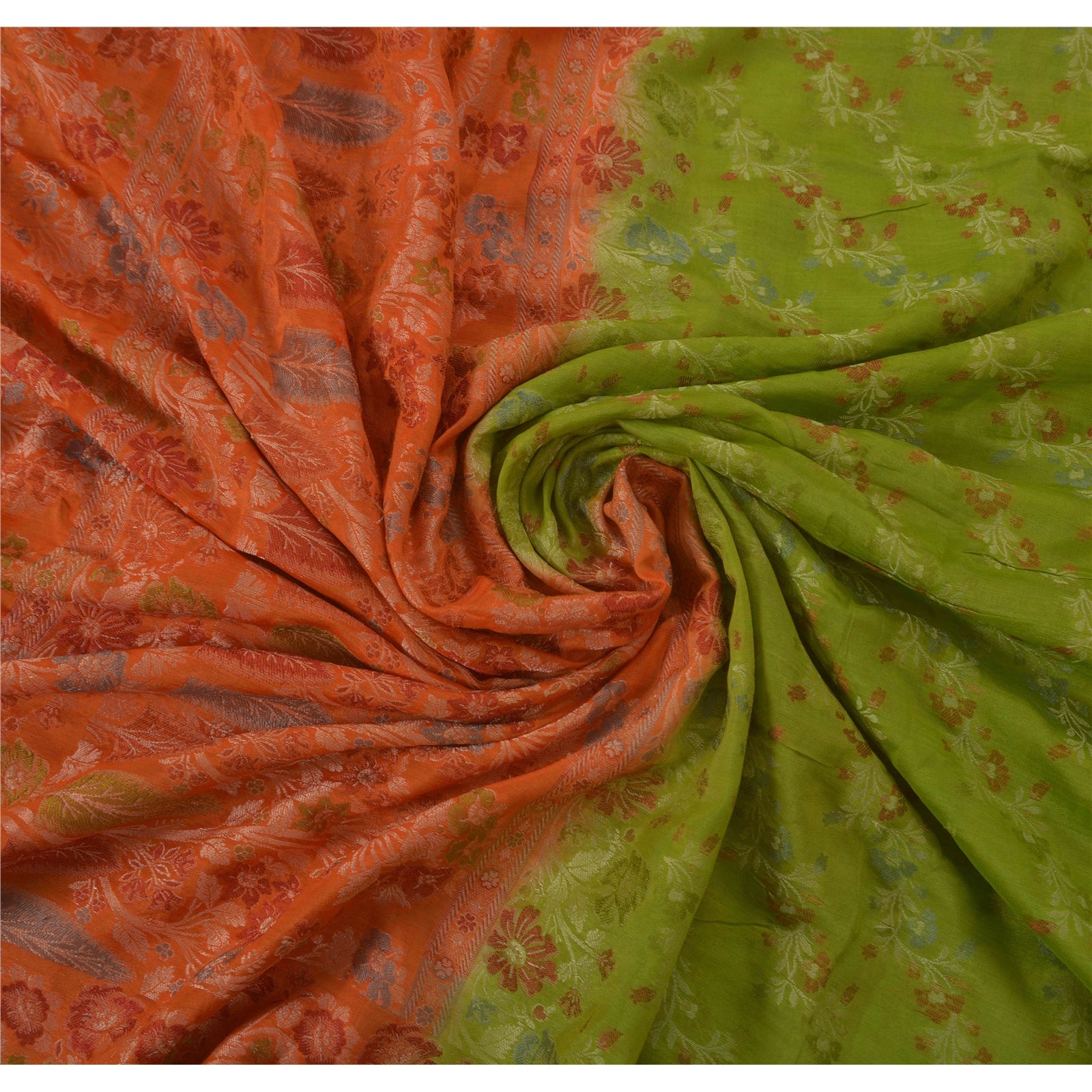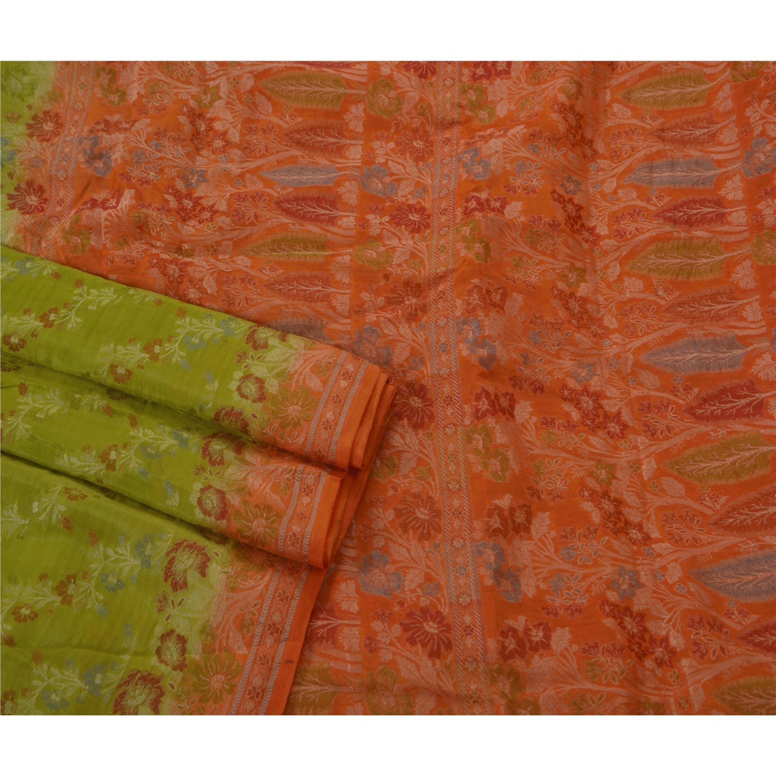 Sanskriti Vintage Saree 100% Pure Silk Woven Green Sustainable Fabric 5 Yd Sari Craft