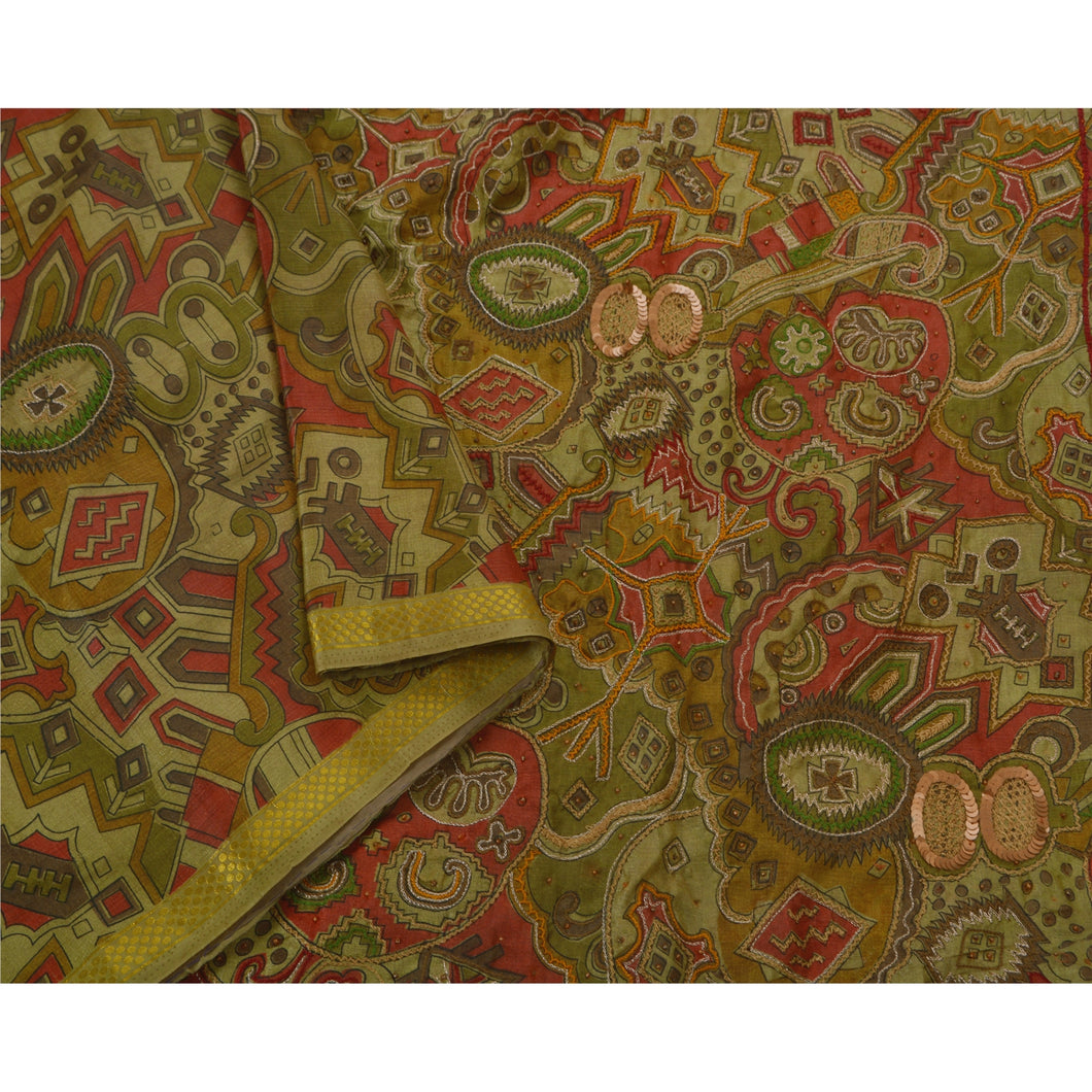 Sanskriti Vintage Saree Art Silk Hand Beaded Green Sustainable Fabric 5Yd Premium Craft Sari