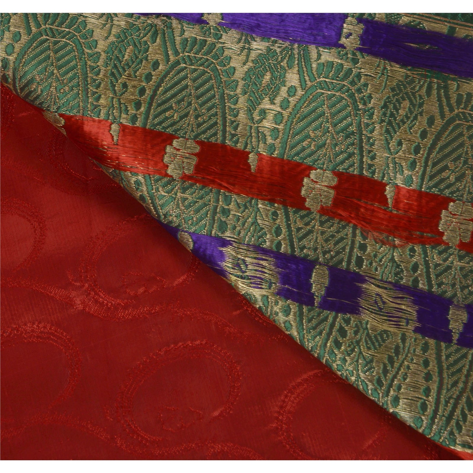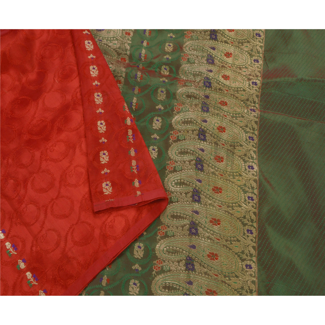 Sanskriti Vintage Saree Art Silk Woven Red Sustainable Fabric 5 Yd Premium Craft Sari