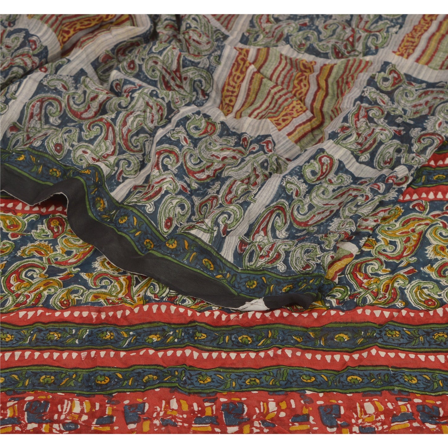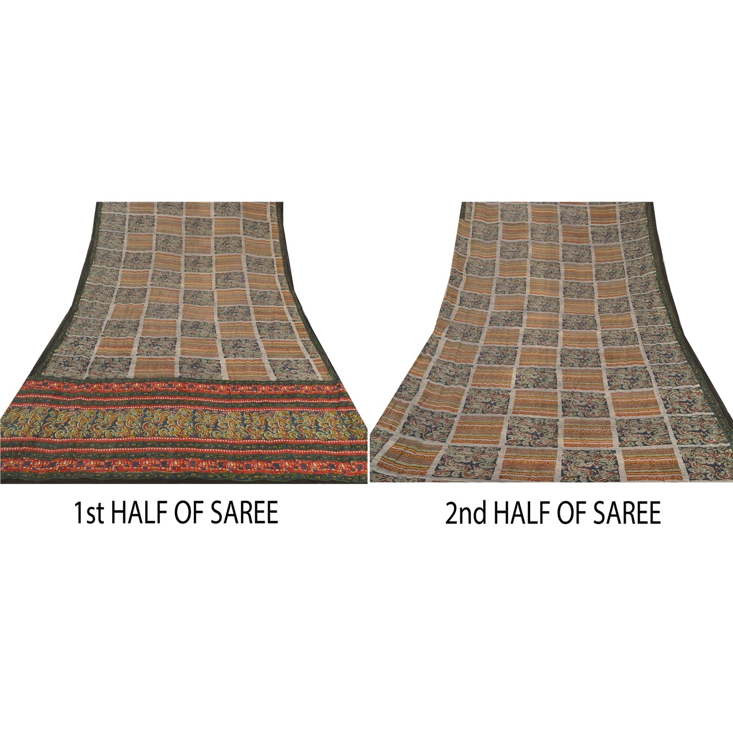 Sanskriti VintageSaree Pure Georgette Silk Printed Sari Craft Multicolor Sustainable Fabric