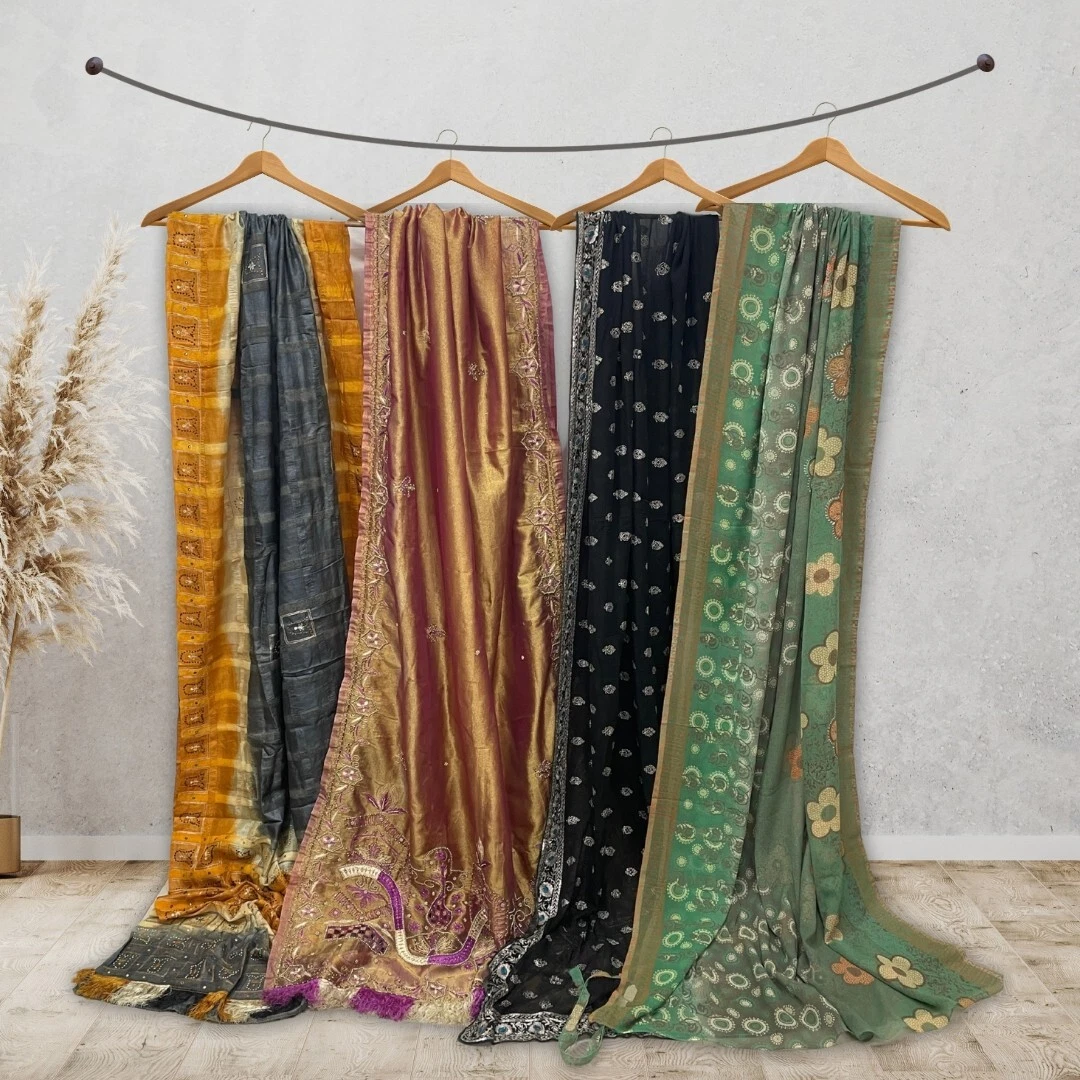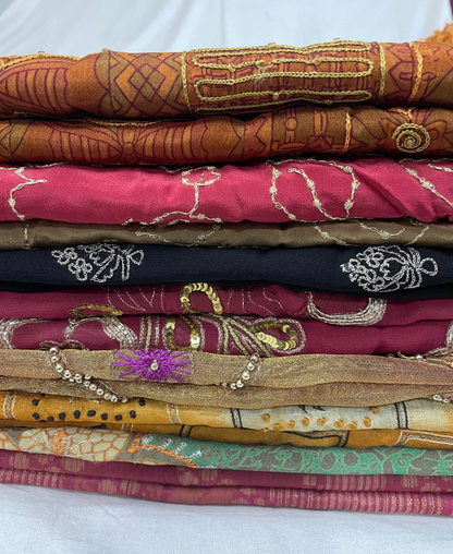 Sustainable Bulk Sarees Fabric - Sanskriti Vintage Assorted Recycled Art Silk Sarees for Crafts and Projects