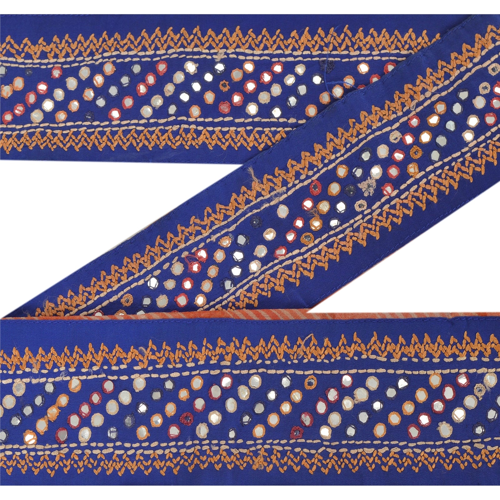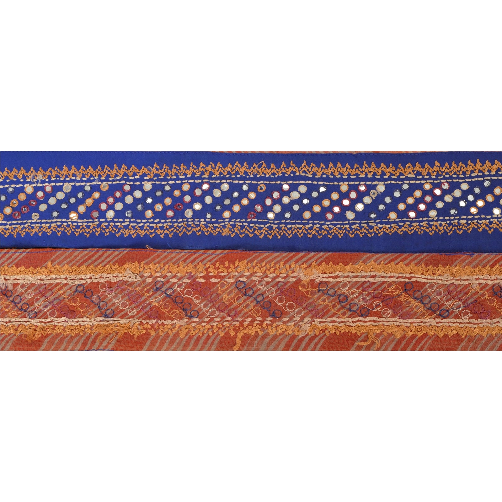 Sanskriti Vintage 1 Yd Sari Border Antique Hand Embroidered Trim Sewing Craft Orange Lace