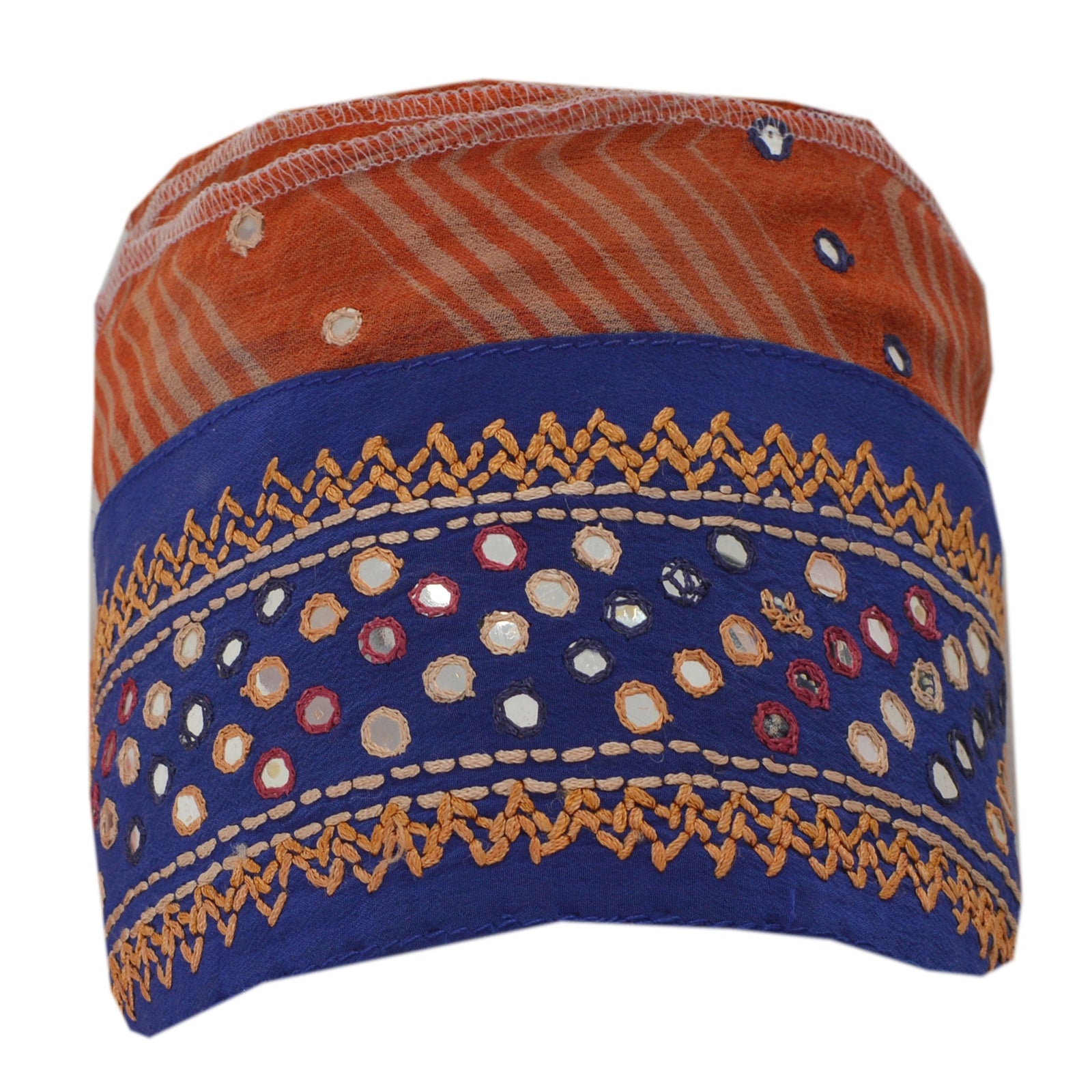Amazing georgette hand embroidered sari border in blue & orange color highlighting zardozi work. Border has beautiful floral patterns painstakingly hand embroidered with saffron, cream, orange thread work . Further you can see fine detailing with mirror work. WOW!! an awesome one of a kind versatile border. 1 Quantity = 1 Yard