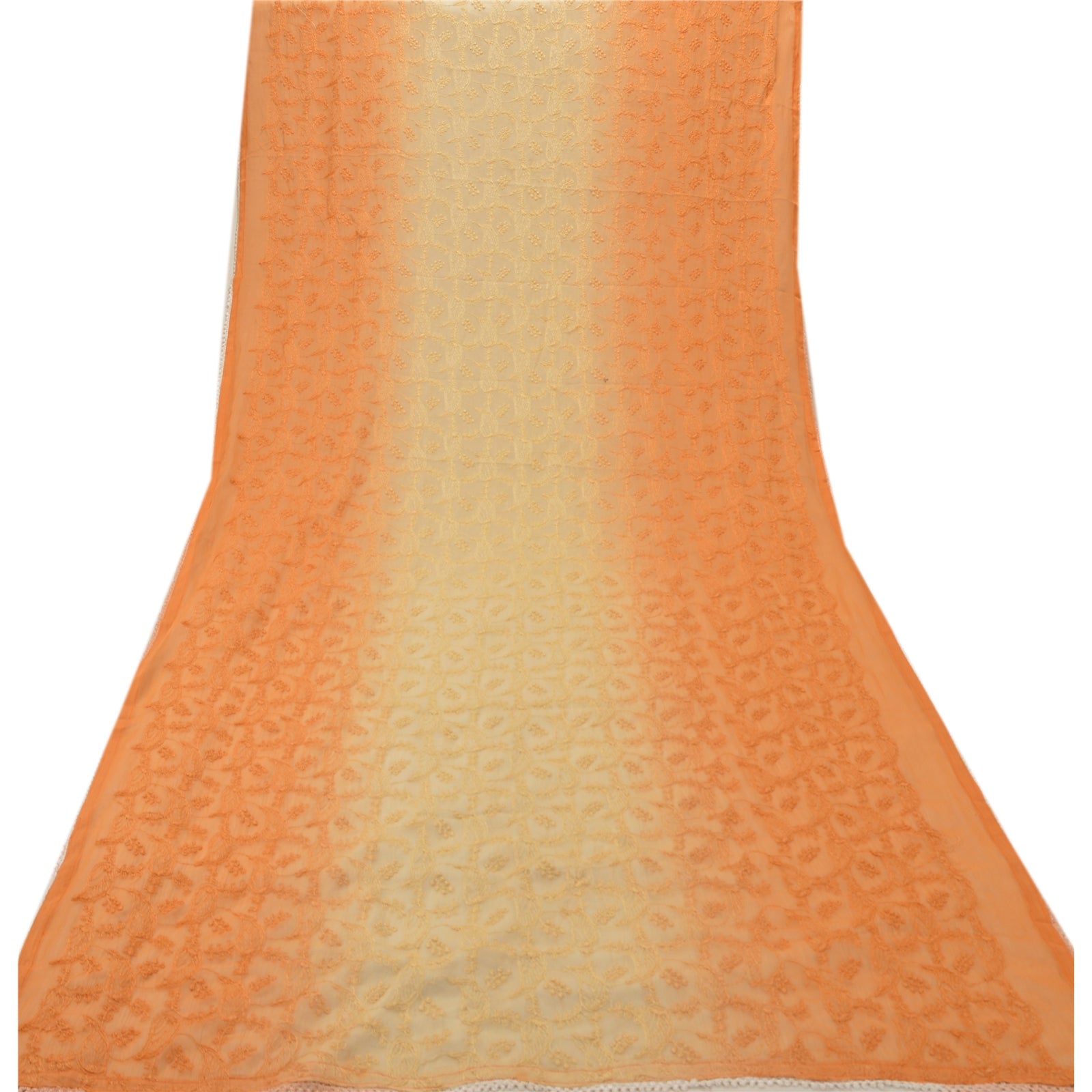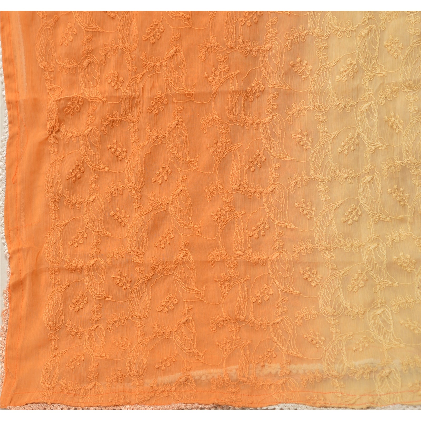 Sanskriti Vintage Dupatta Long Stole Georgette Orange Hijab Hand Embroidered Shawl