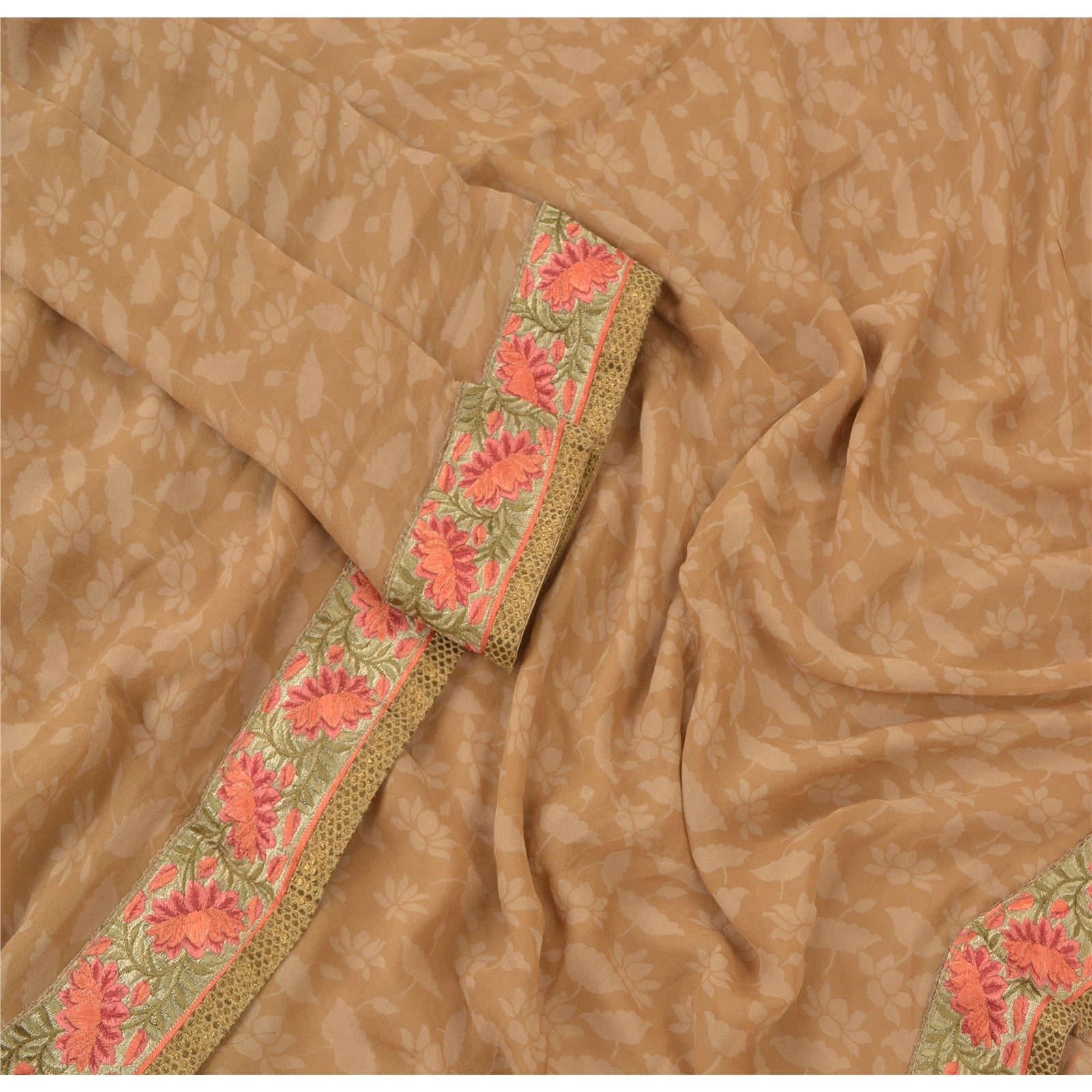 Sanskriti Vintage Dupatta Long Stole Pure Georgette Beige Hijab Printed Wrap Scarves
