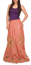 Sanskriti Vintage Indian Bollywood Women Long Skirt Hand Beaded Peach S Size Lehenga
