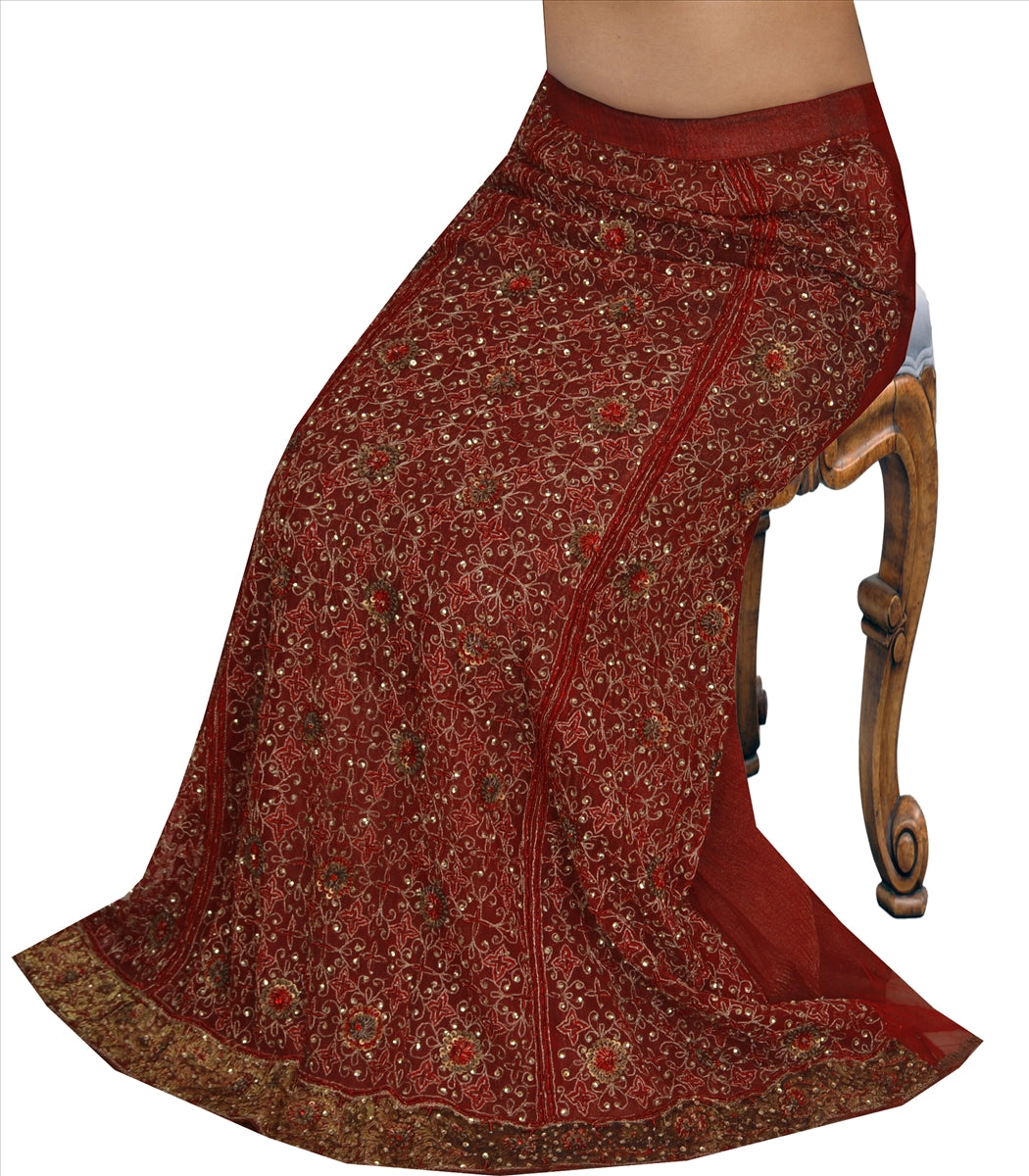 Sanskriti Vintage Indian Bollywood Women Solid Long Skirt Maroon M Size Lehenga
