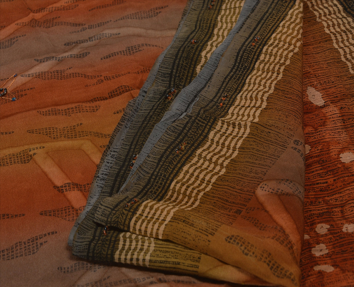 Sanskriti Vintage Indian Saree 100% Pure Crepe Silk Hand Beaded Craft Sustainable Fabric Cultural Sari