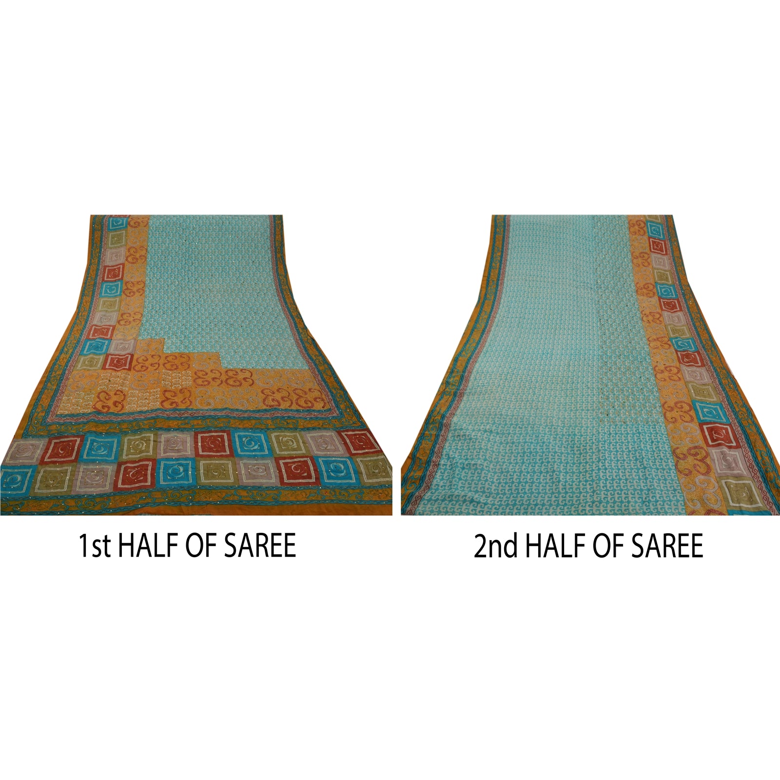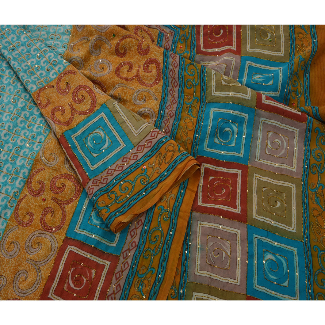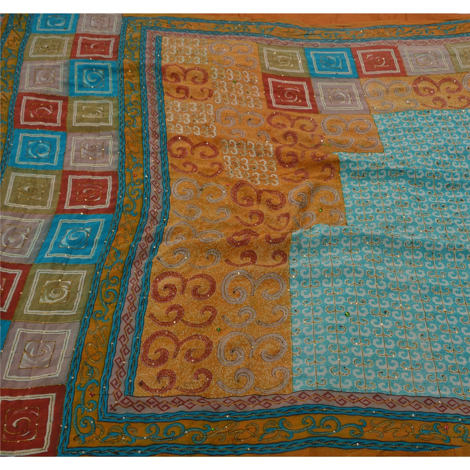 ? Beautiful multi colored hand embroidered printed pure crepe silk sari ? Pallu & Border features floral design embellished with black/golden thread work, gold sequins and red/green kundan work. ? There are floral motifs with similar work in center part of sari. What is special about this saree? Vibrant printed work with floral design on multi color base Sustainable Fabric is really enhancing the beauty of the saree. This unique vintage saree can be used for various crafting ideas even if you don't want to use it as a sari. Design a dress, use it as a throw, as window dressing, upholstery, sarongs, table linen and much more. Let your creative juices flow and use this decorated Sustainable Fabric in multiple fashion.