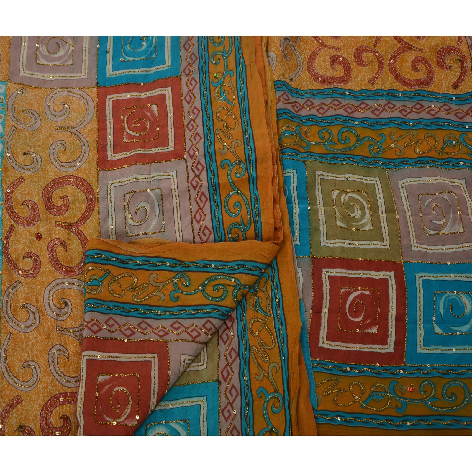Sanskriti Vintage Indian Saree 100% Pure Crepe Silk Hand Beaded Craft Sustainable Fabric Premium Sari