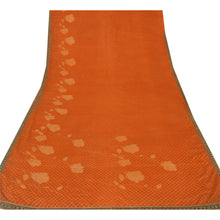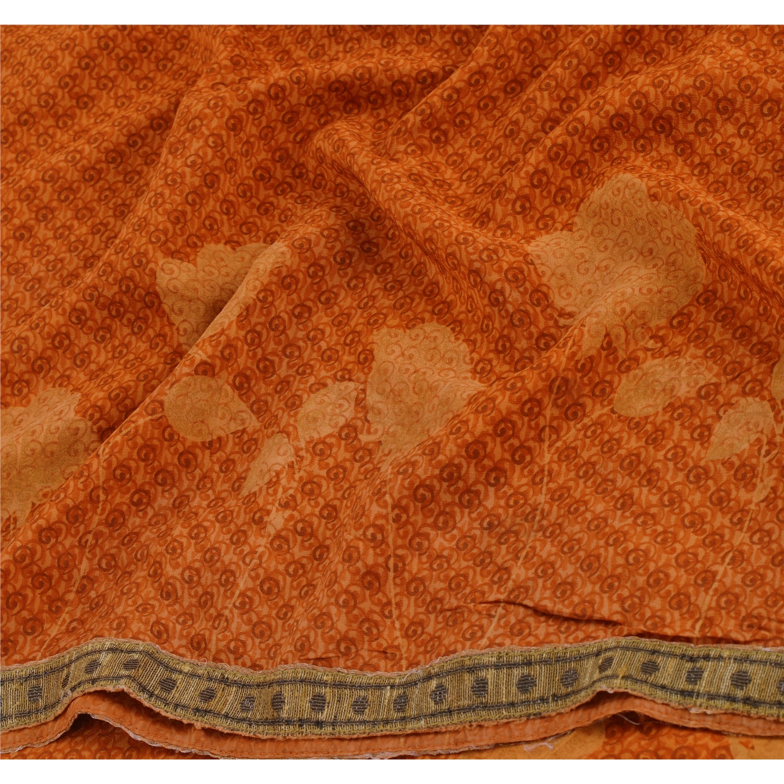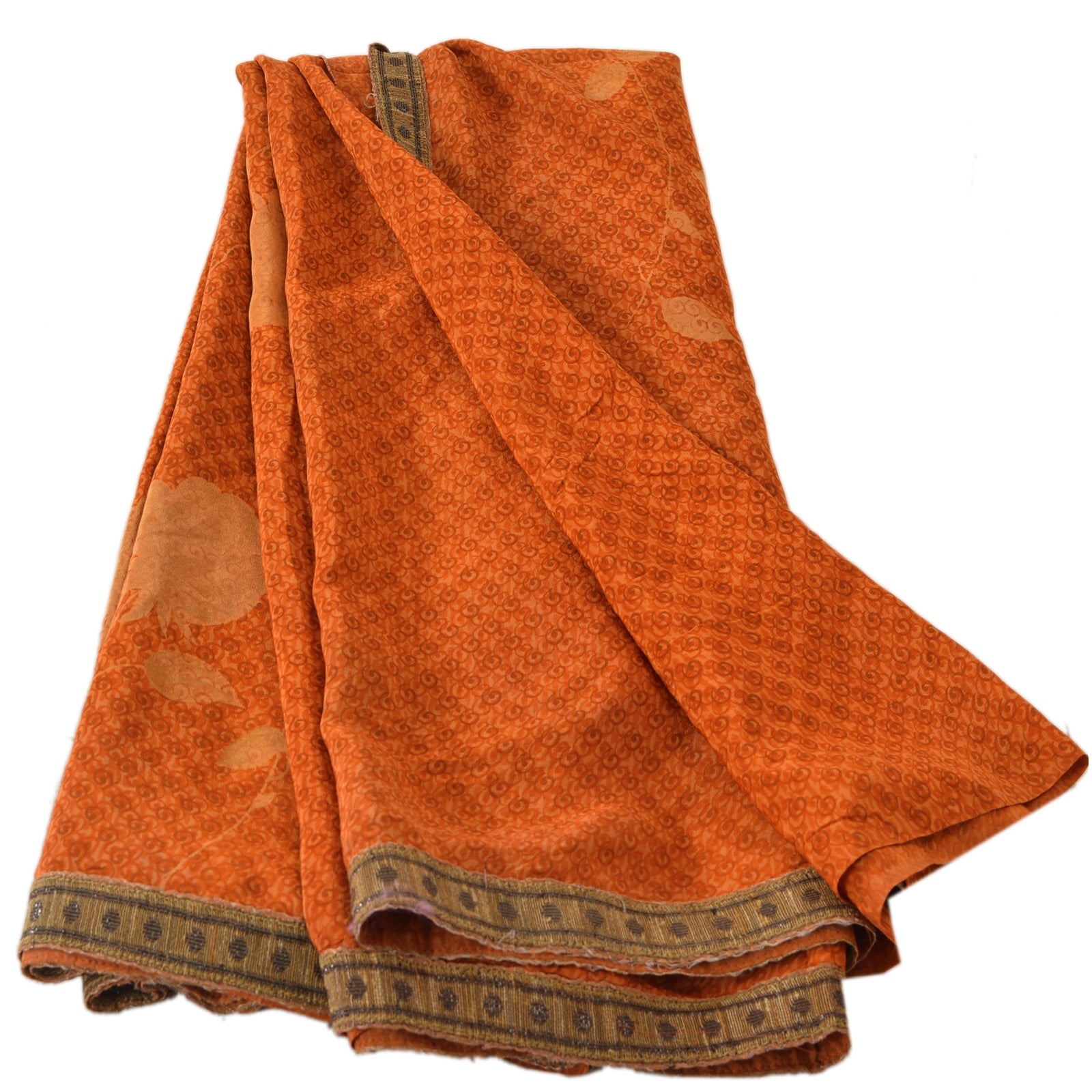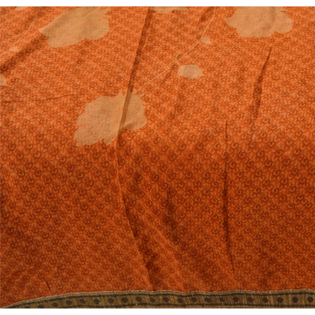 Sanskriti Vintage Orange Saree 100% Pure Crepe Silk Printed Sustainable Fabric Dress Making Sari Craft
