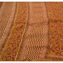 Amazing And Unique Kalamkari Saree. Base Sustainable Fabric Is Pure Cotton In Cream & brown Color combination With Block Printed Kalamkari Floral, paisley & zig-zeg Design In Maroon, green, Black Color. You can see golden sparkle work is really enhancing the beauty of the saree. Traditional Kalamkari Work Is The Highlight Of The Saree. WOW !! An Amazing Piece Of Art. This unique vintage saree can be used for various crafting ideas even if you don't want to use it as a sari. Design a dress, use it as a throw, as window dressing, upholstery, sarongs, table linen and much more. Let your creative juices flow and use this decorated Sustainable Fabric in multiple fashion.