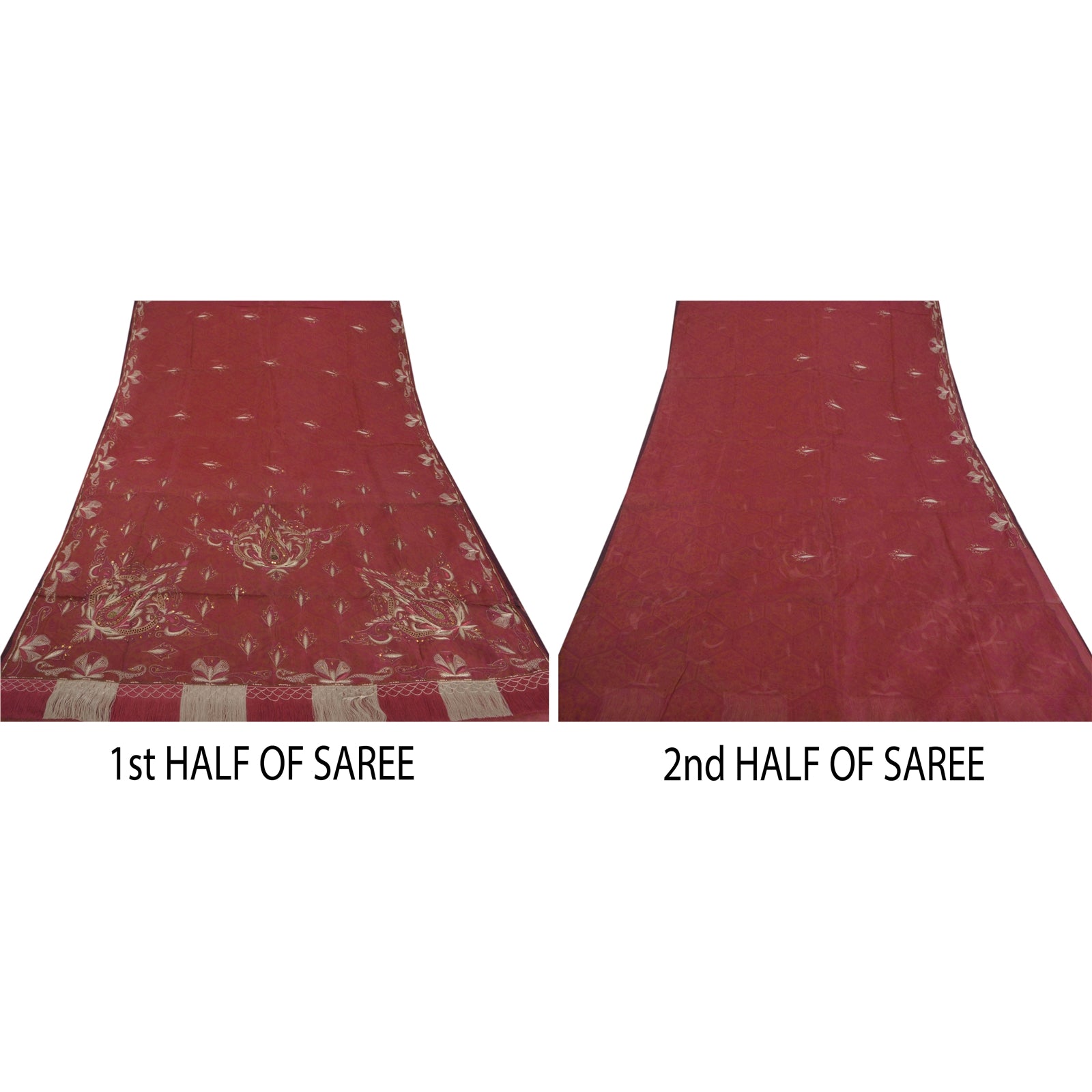 Sanskriti Vintage Saree 100% Pure Organza Silk Hand Beaded Woven Sustainable Fabric Premium 5 Yd Sari
