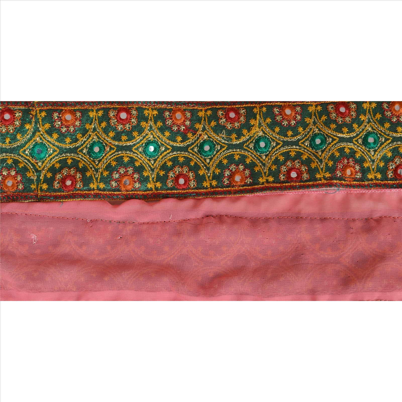Sanskriti Vintage Sari Border Antique Embroidered 1 Yd Indian Trim Sewing Pink Patch Lace