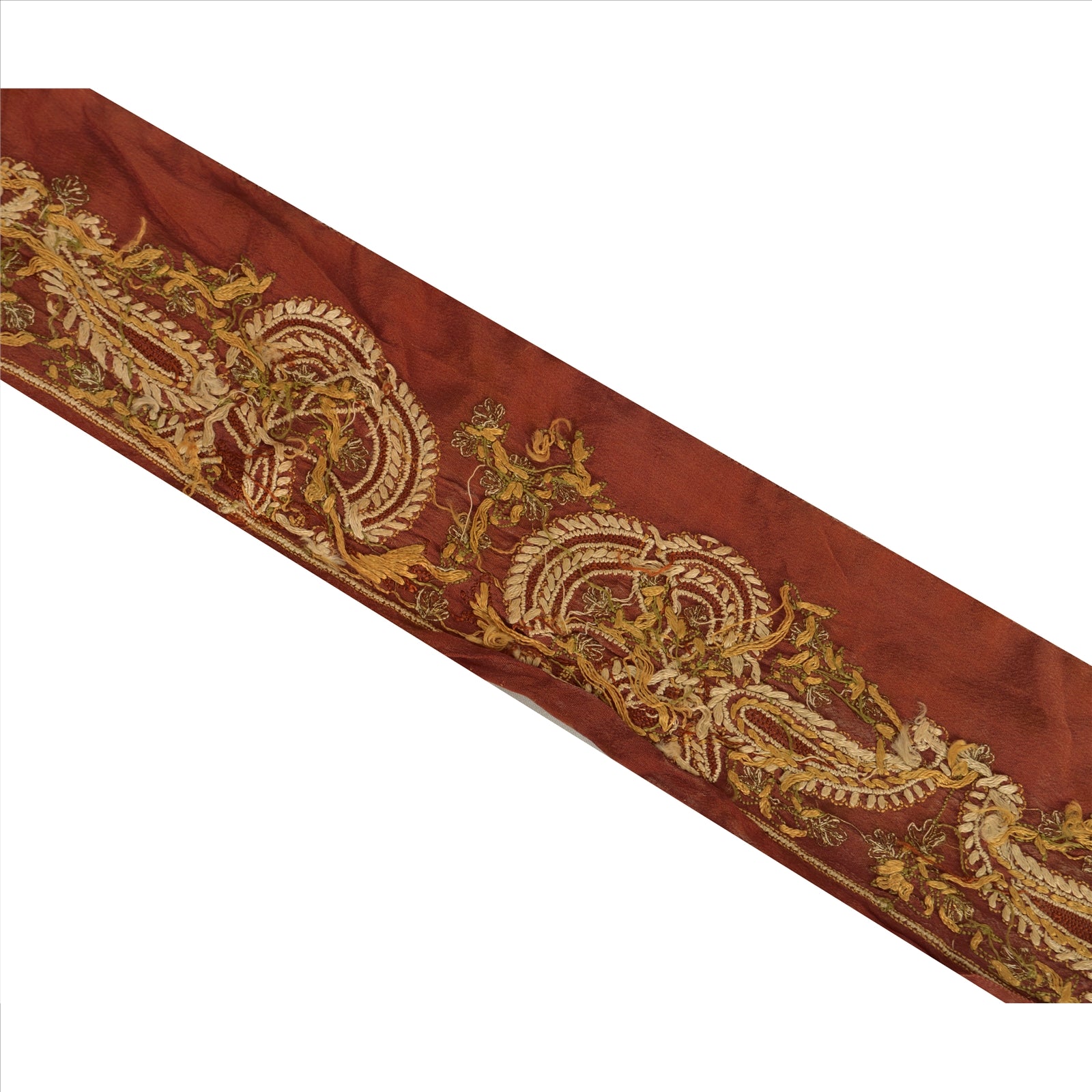 Sanskriti Vintage Sari Border Antique Hand Beaded 1 Yd Indian Trim Sewing Orange Lace