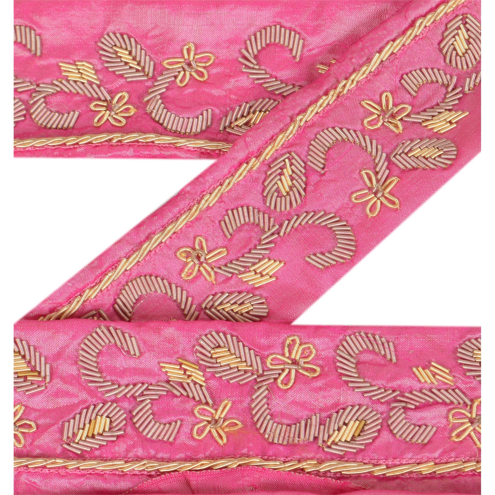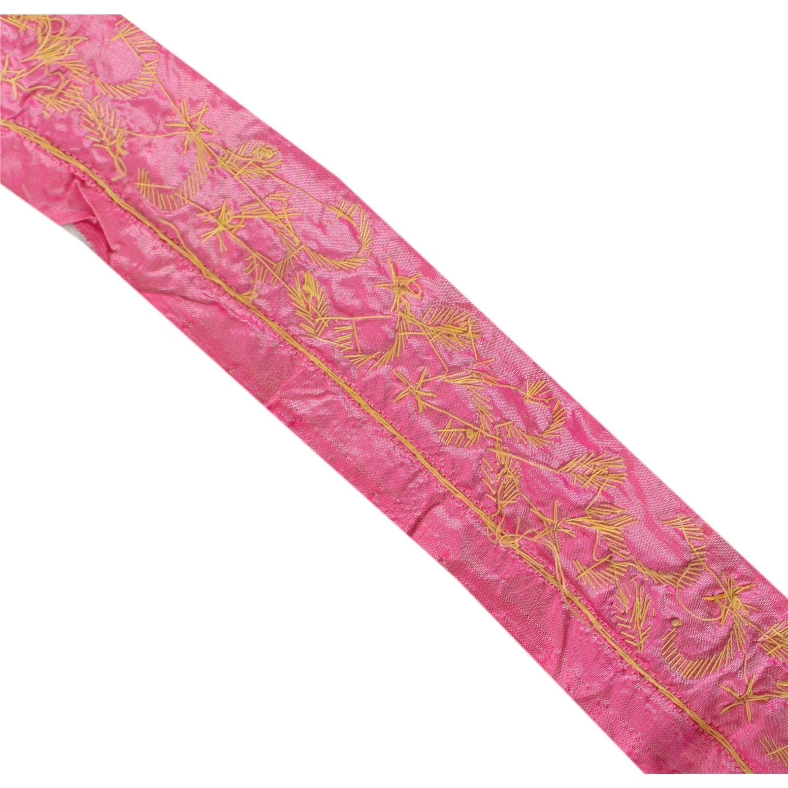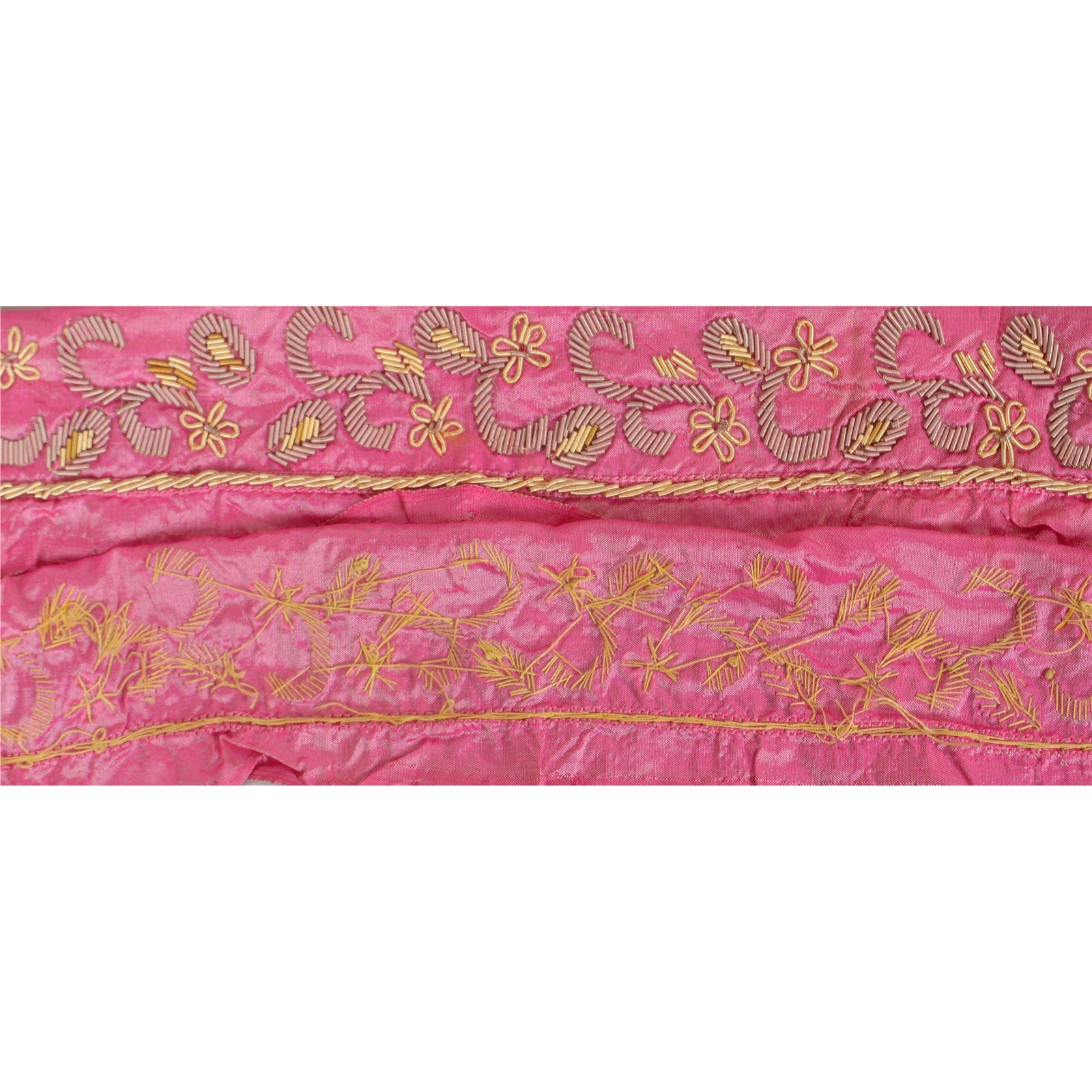 Sanskriti Vintage Sari Border Antique Hand Embroidered 1 Yd Indian Trim Ribbon Pink Lace