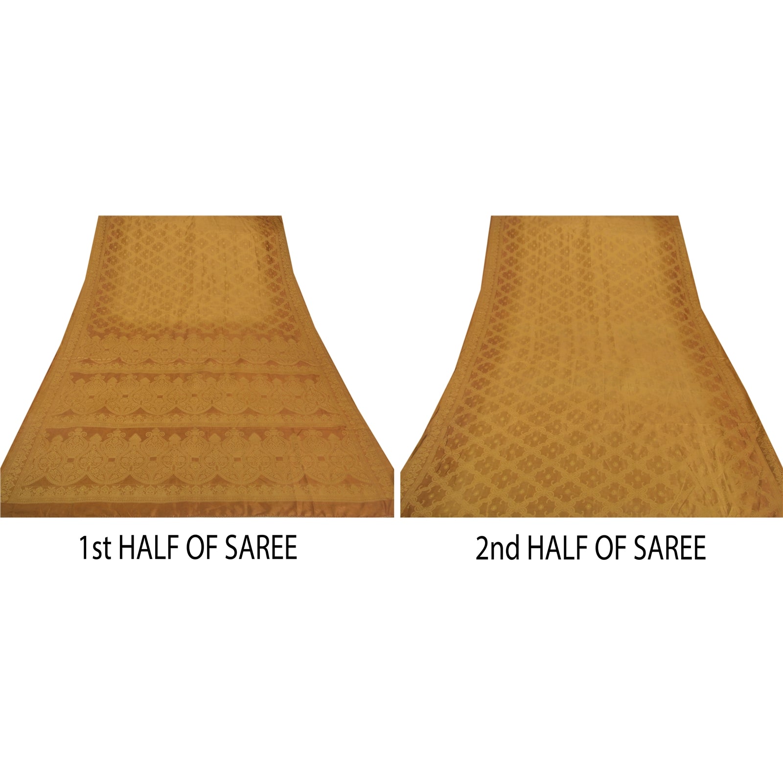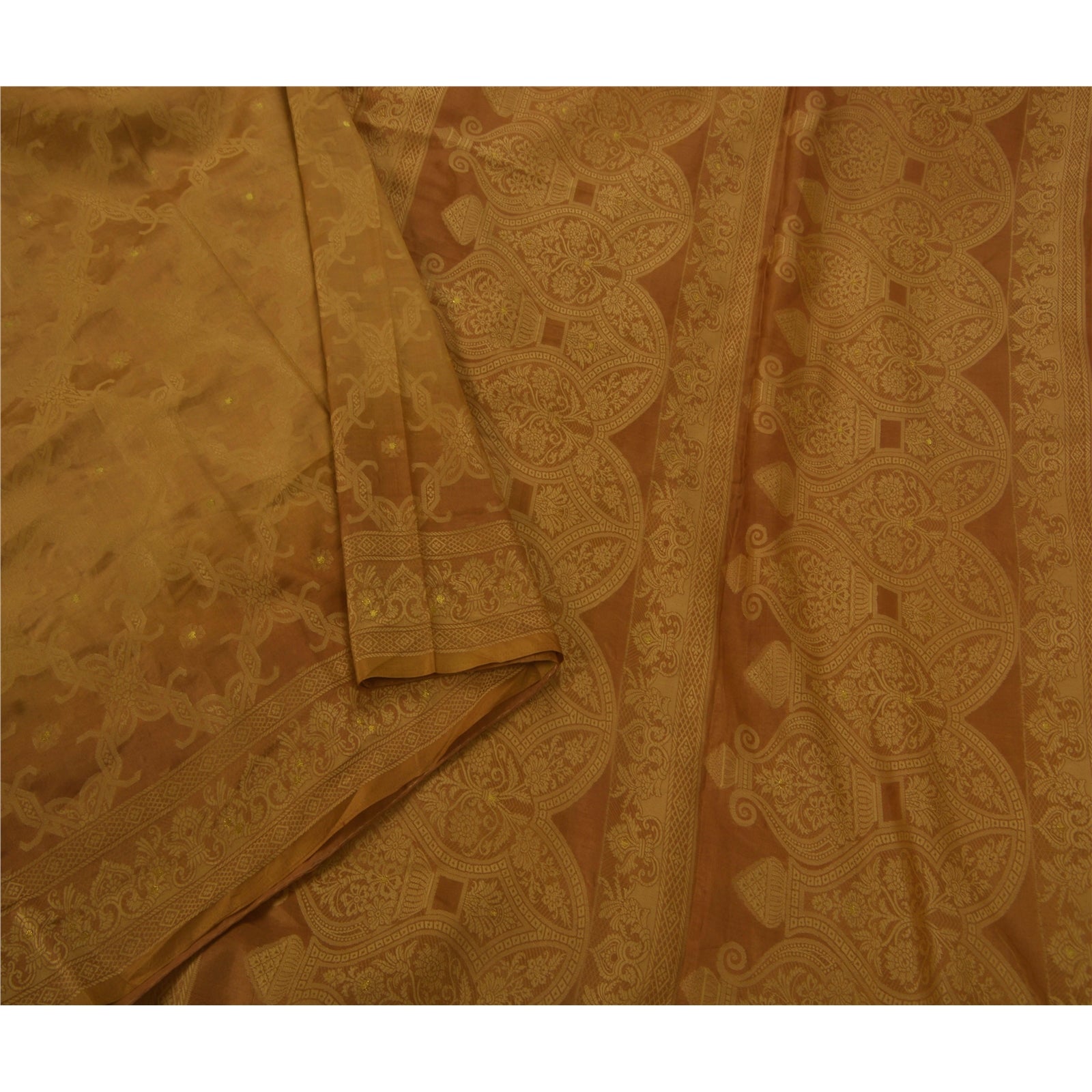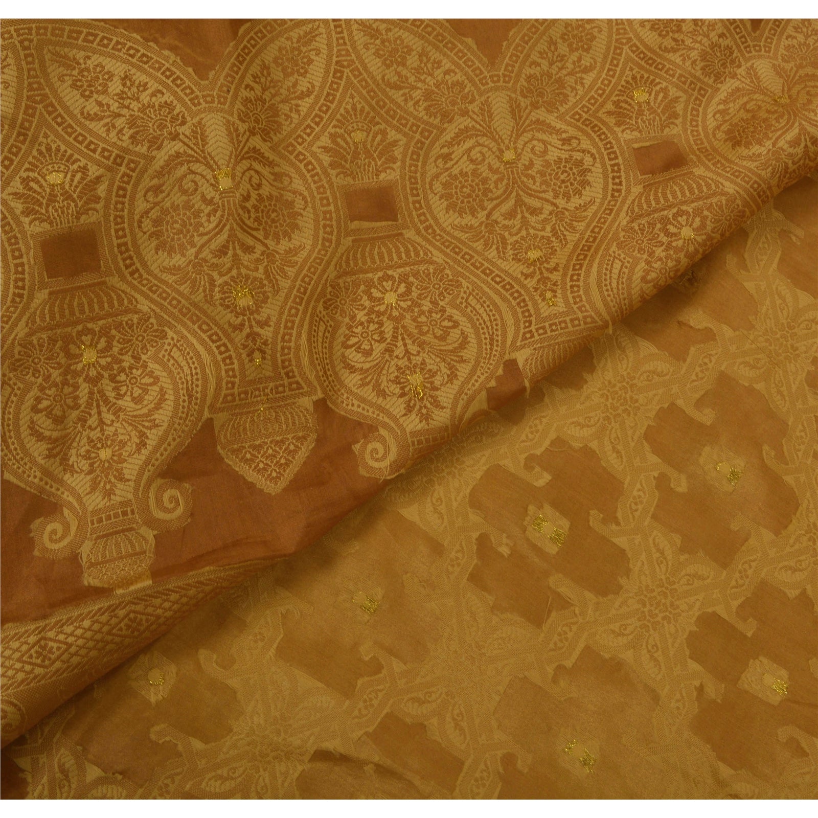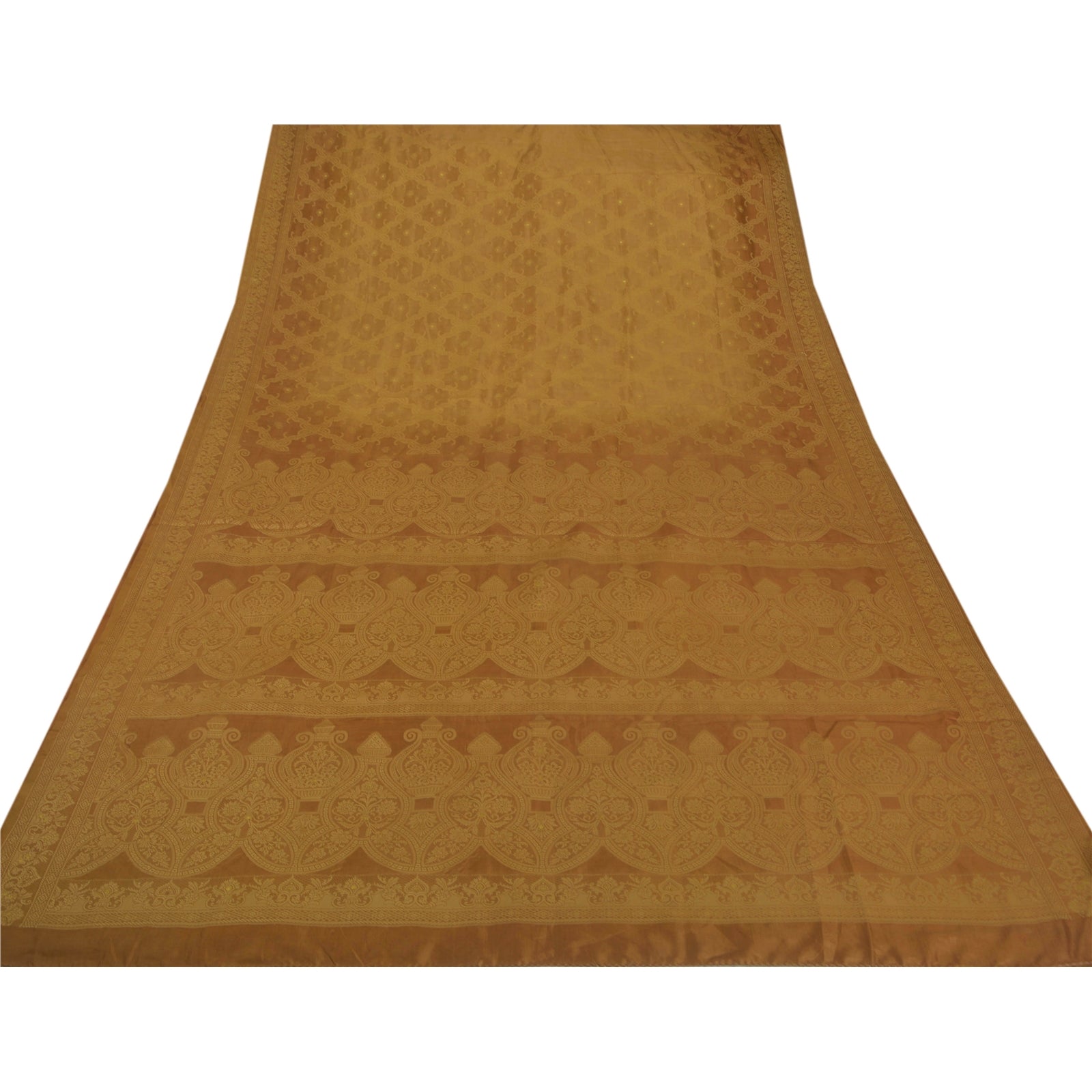 Санскритское винтажное коричневое сари из чистого шелка, тканое ремесло, 5 ярдов, экологически чистая ткань, премиум-класса сари