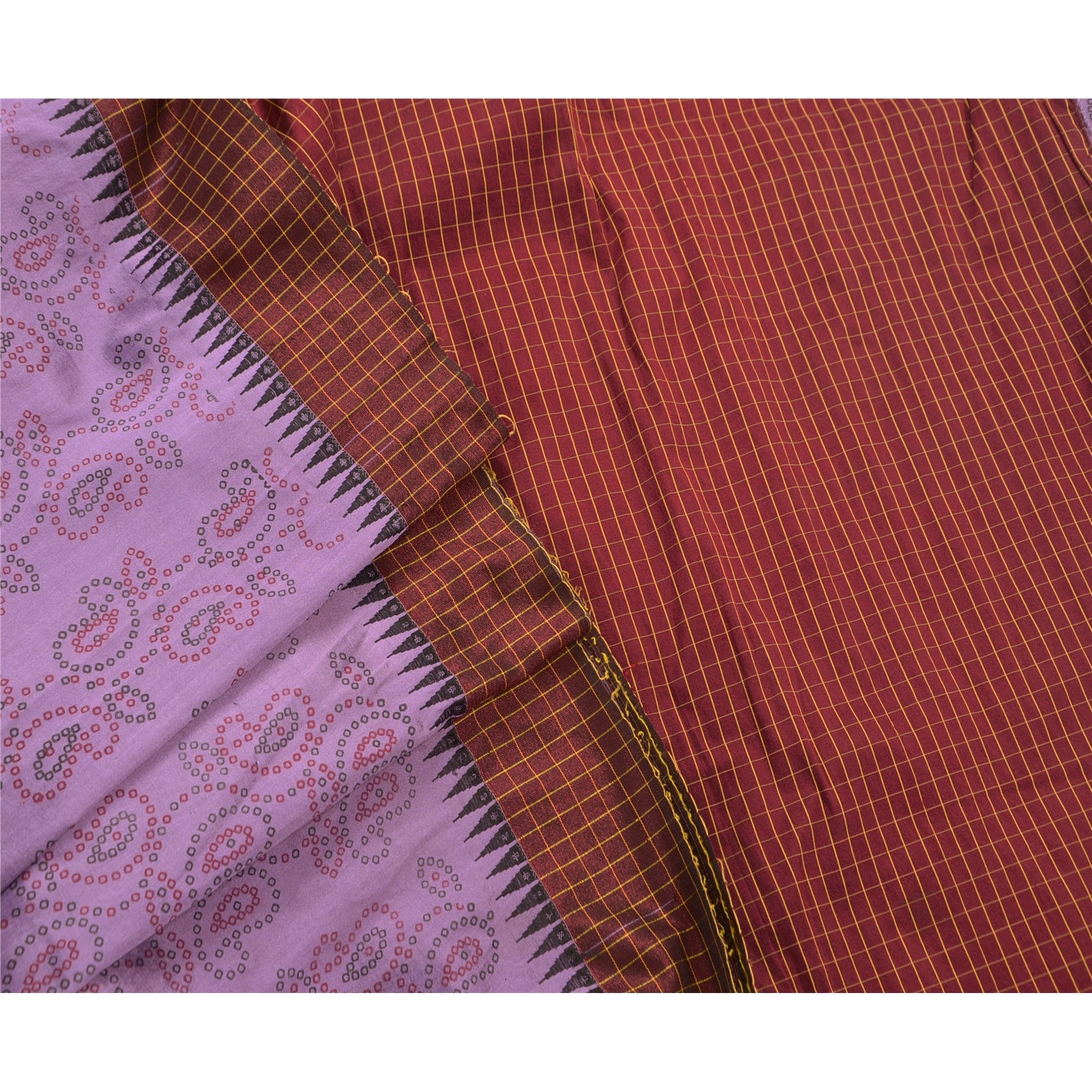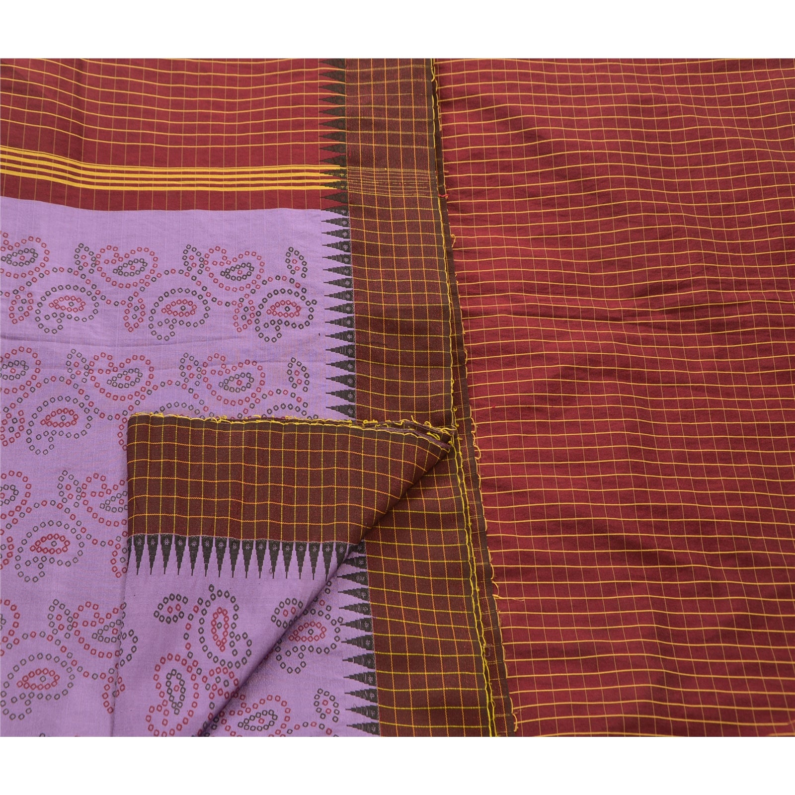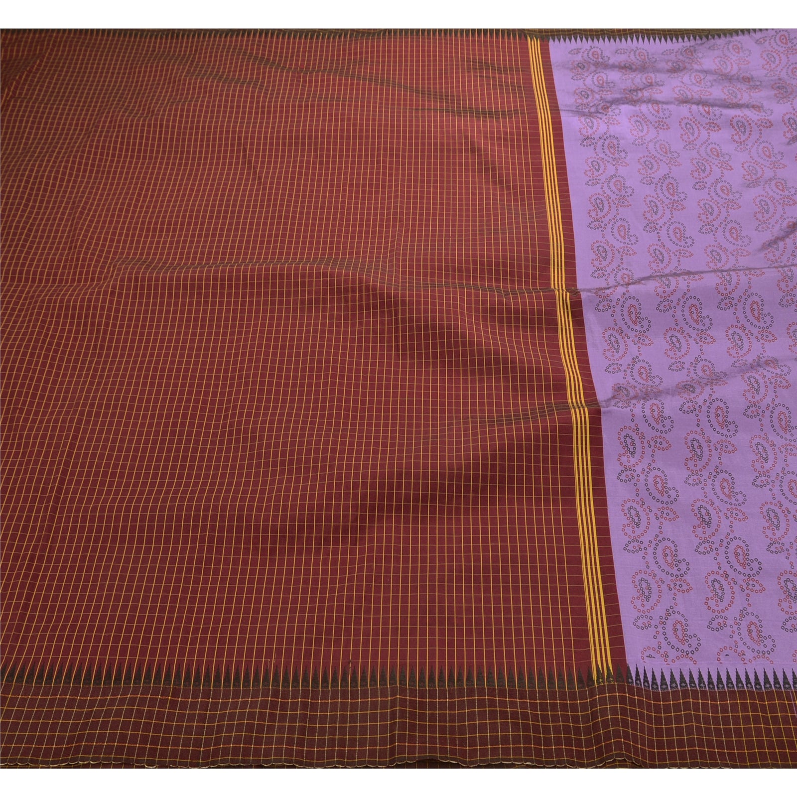 ? Красивое хлопковое сари темно-красного и фиолетового цветов. ? Pallu & Border имеет клетчатый рисунок, украшенный кремовым плетением, что делает сари восхитительным. ? В центральной части сари присутствуют цветочные и пейсли-мотивы с росписью. Что особенного в этом сари? Красивая роспись в сочетании темно-красного и фиолетового цветов на хлопковой основе из экологически чистой ткани действительно подчеркивает красоту сари. Это уникальное винтажное сари можно использовать для различных идей по рукоделию, даже если вы не хотите использовать его как сари. Спроектируйте платье, используйте его как покрывало, как окно Гардероб, обивка, саронги, столовое белье и многое другое. Дайте волю своим творческим способностям и используйте эту декорированную устойчивую ткань в различных вариантах.