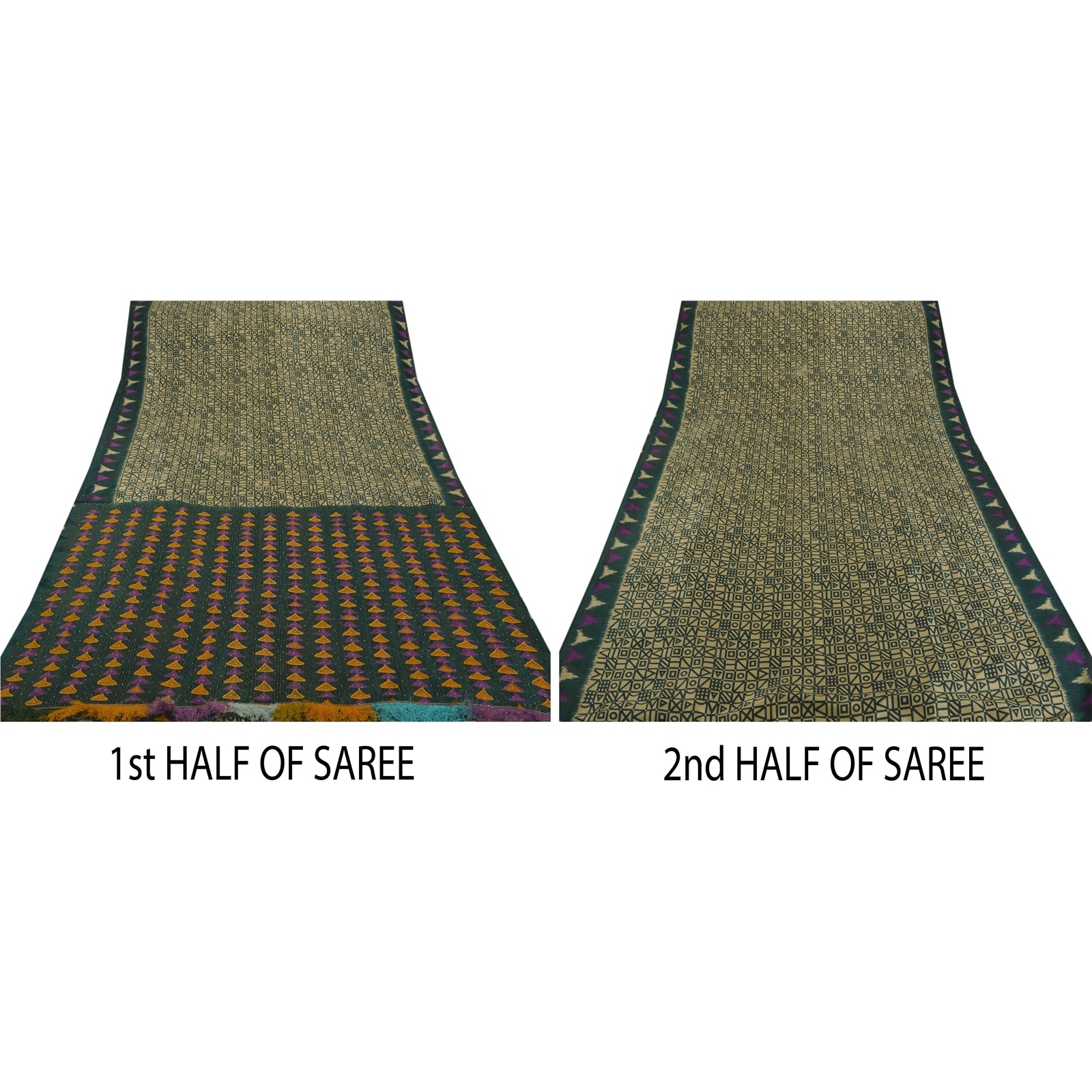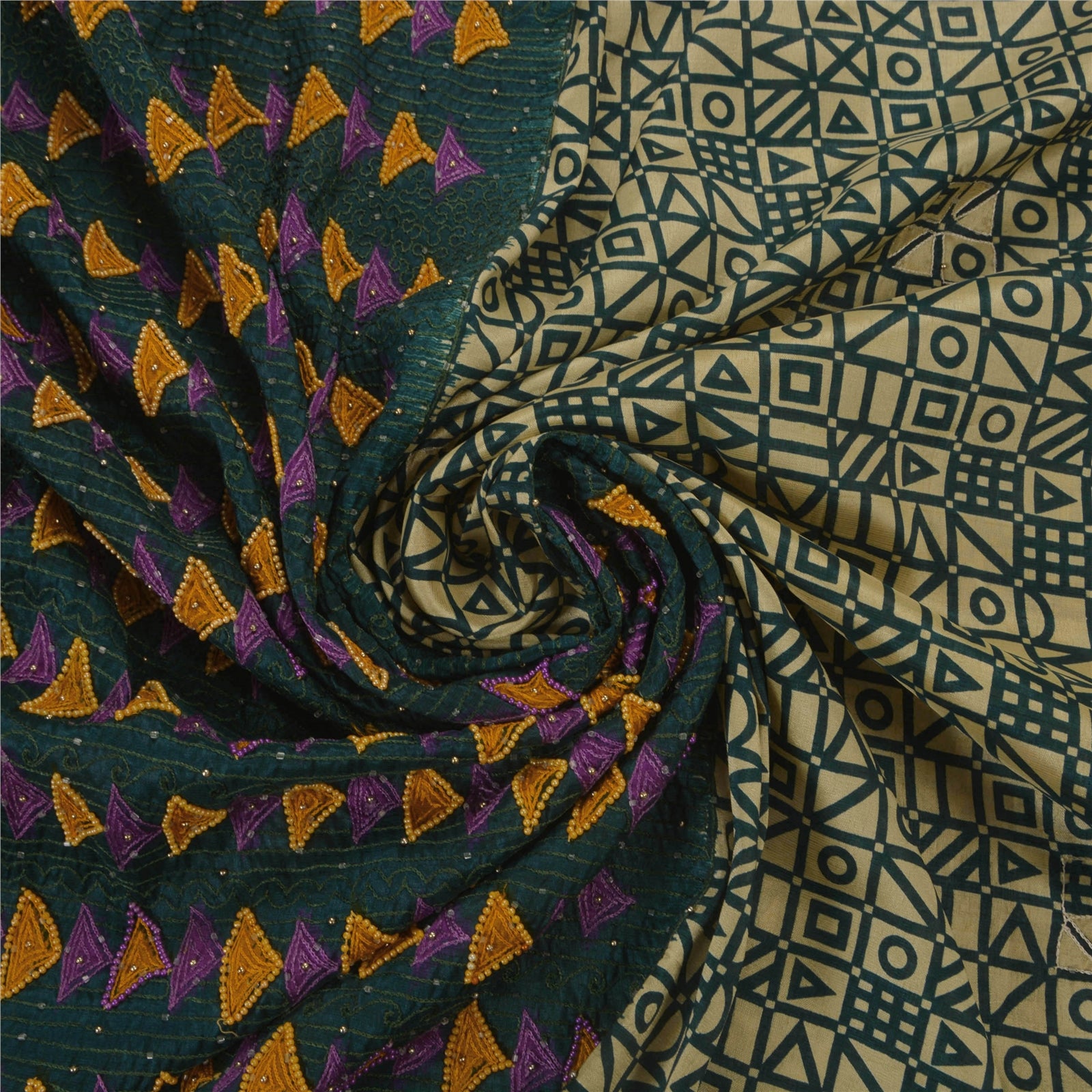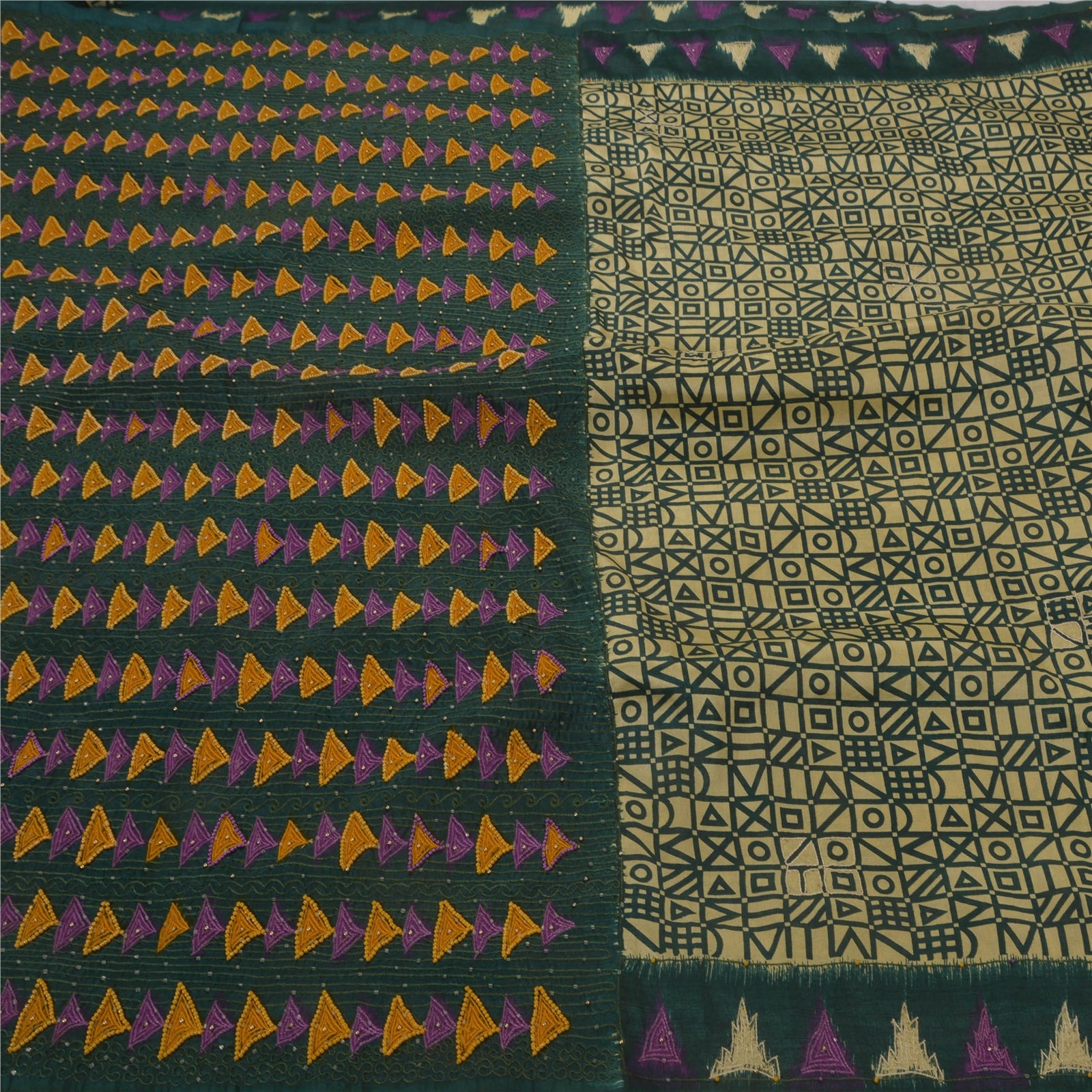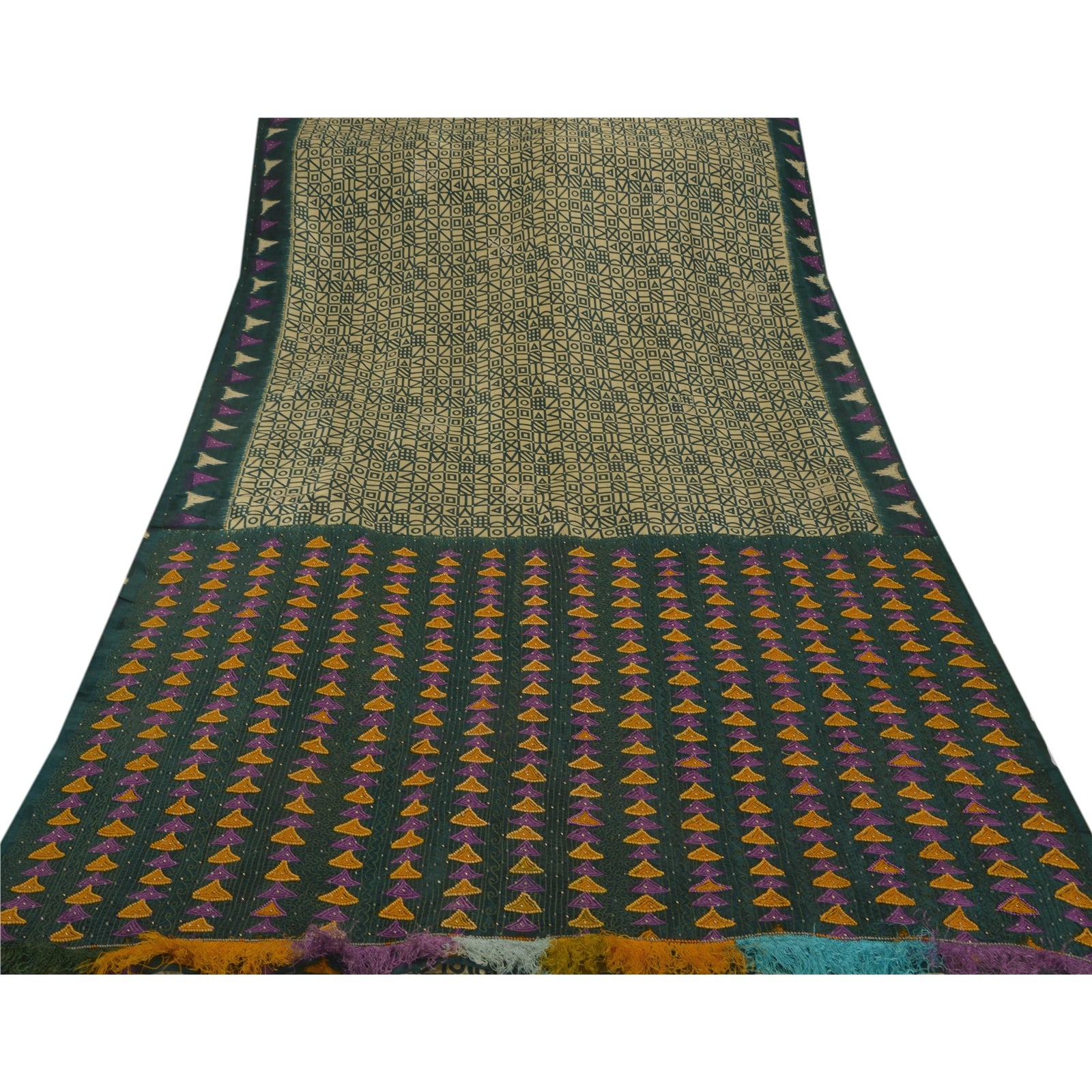 Санскрити Винтаж Антикварное Сари Искусство Шелк Ручная Вышивка Экологичная Ткань Премиум 5Yd Сари
