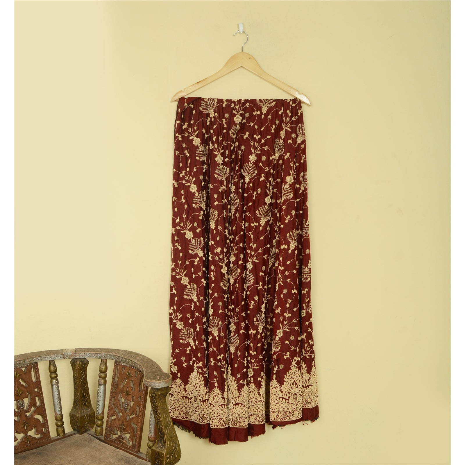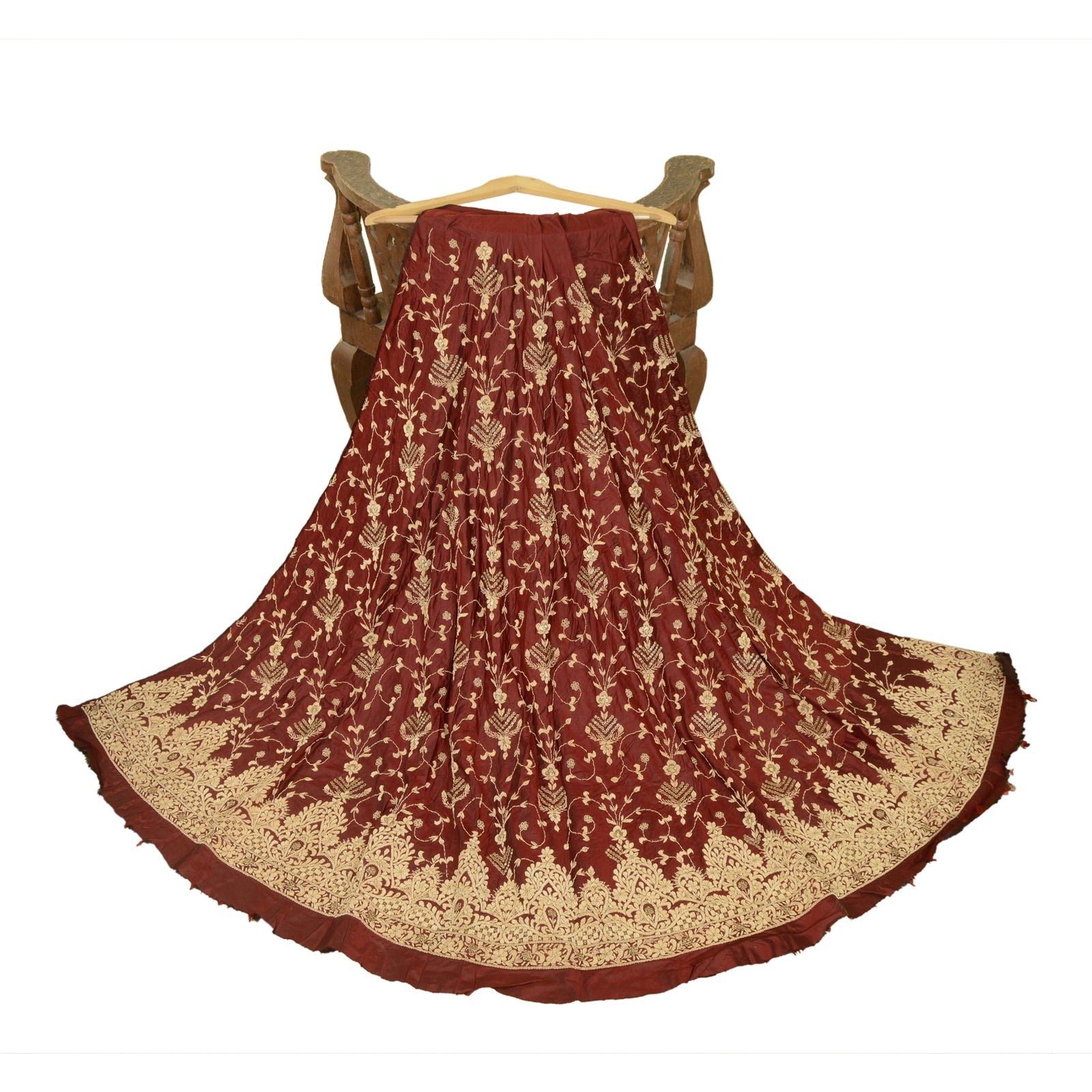 'THE ITEM COLOR OR SHADE MAY BE DARKER OR LIGHTER THAN THE PICTURE.' Sanskriti offers this dark red color long skirt made with 100% Pure Satin Silk. Antique very heavy hand embroidered skirt. There is so much antique work done in this one, it is fully covered with zardozi work. All over skirt has floral & veil & paisley design embellished with pure metallic golden zardozi work, white glass beads. It is a unstitched skirt with a length of 53 inch and flare of the skirt is 159 inch. Flaunt this heavy skirt with ethnic tops, blouses or kurtis at parties, weddings and other occasions. Antique work skirt with beautiful craftsmanship which I am sure you will truly appreciate. The quality of zari work is amazing, its a pure metallic zari. Some zari work gives an antique look. 'International buyers please note: Import duties, taxes, and charges are not included in the item price or postage cost. These charges are the buyer's responsibility. Please check with your country's customs office to determine what these additional costs will be prior to bidding or buying. Buyer will pay custom duty/tax. It is calculated and charged differently by every country. As a seller I do not have any control over it. VAT or sales tax is calculated by the platform at the time of checkout. Customs charge is payable at the time of delivery.