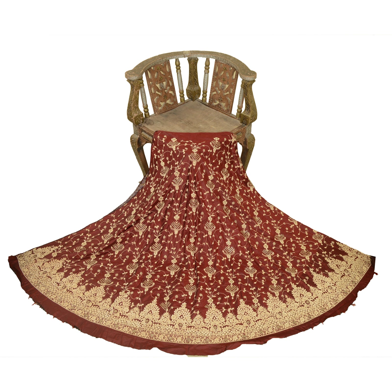 'THE ITEM COLOR OR SHADE MAY BE DARKER OR LIGHTER THAN THE PICTURE.' Sanskriti offers this dark red color long skirt made with 100% Pure Satin Silk. Antique very heavy hand embroidered skirt. There is so much antique work done in this one, it is fully covered with zardozi work. All over skirt has floral & veil & paisley design embellished with pure metallic golden zardozi work, white glass beads. It is a unstitched skirt with a length of 53 inch and flare of the skirt is 159 inch. Flaunt this heavy skirt with ethnic tops, blouses or kurtis at parties, weddings and other occasions. Antique work skirt with beautiful craftsmanship which I am sure you will truly appreciate. The quality of zari work is amazing, its a pure metallic zari. Some zari work gives an antique look. 'International buyers please note: Import duties, taxes, and charges are not included in the item price or postage cost. These charges are the buyer's responsibility. Please check with your country's customs office to determine what these additional costs will be prior to bidding or buying. Buyer will pay custom duty/tax. It is calculated and charged differently by every country. As a seller I do not have any control over it. VAT or sales tax is calculated by the platform at the time of checkout. Customs charge is payable at the time of delivery.