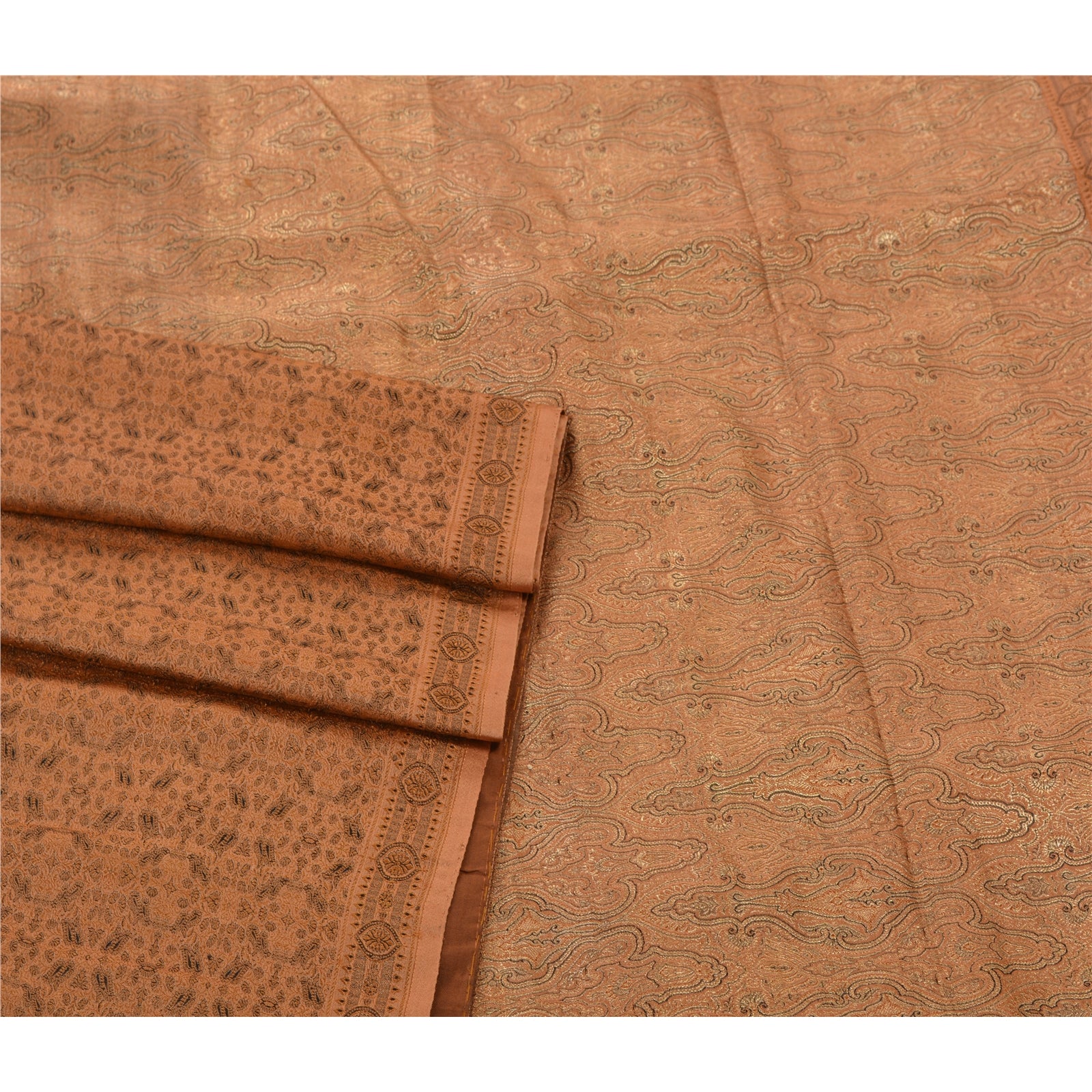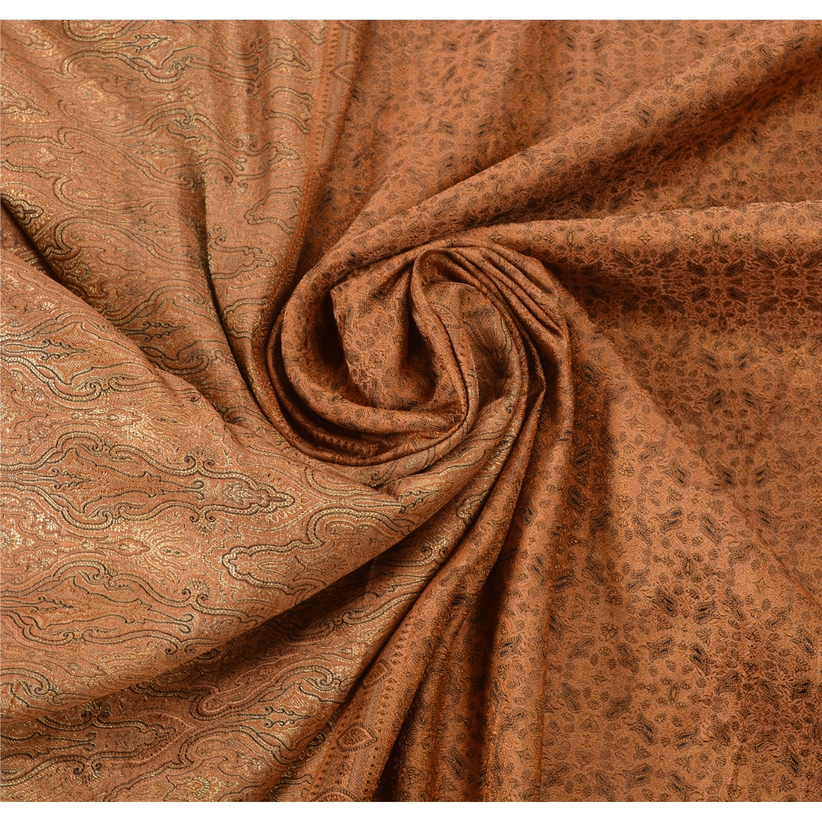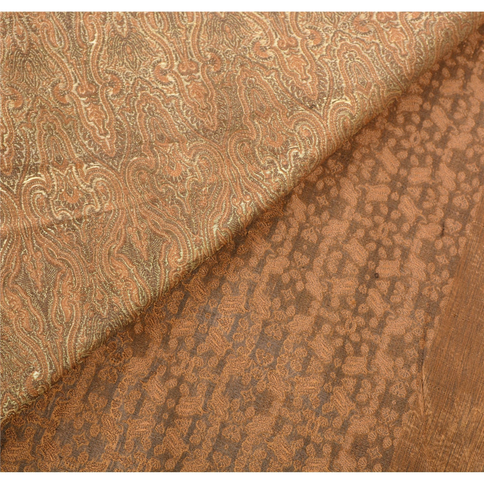 Санскрити Винтаж Коричневый Тяжелое Сари Чистый Атлас Шелк Тканый Экологичный Ткань Этническое Сари