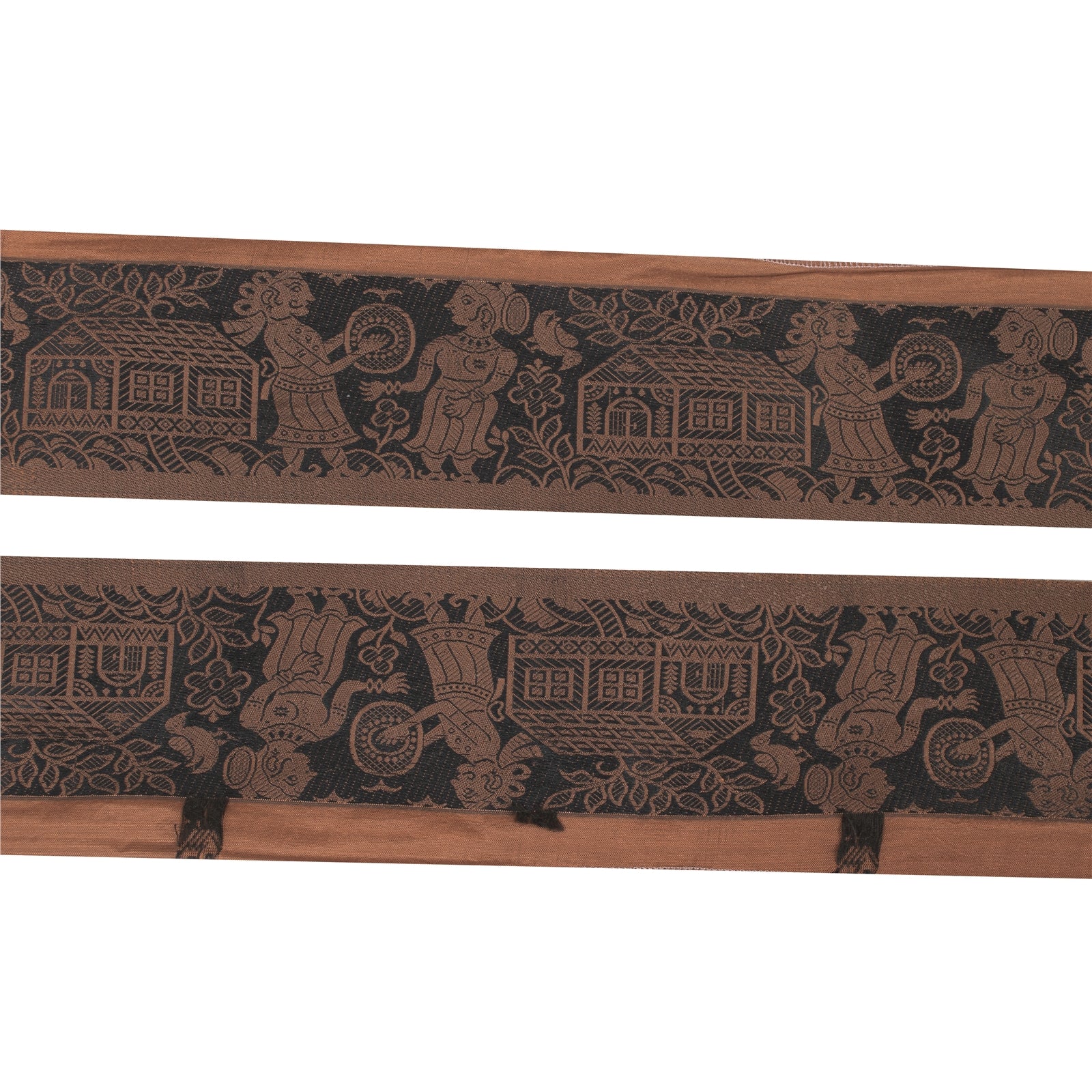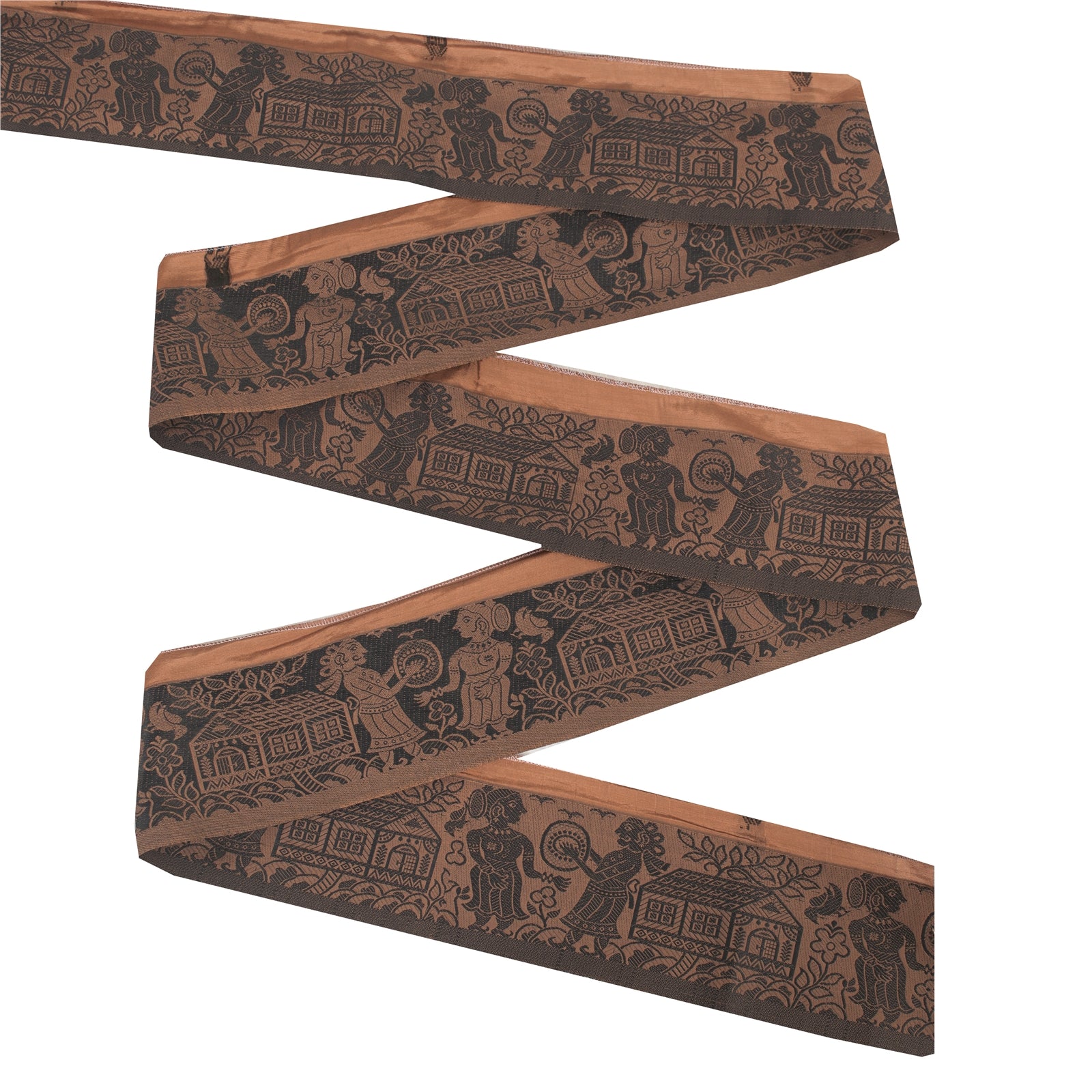 Sanskriti Vintage 1 Yd Saree Border Woven Baluchari Trim Sewing Brown Lace 3.6"W