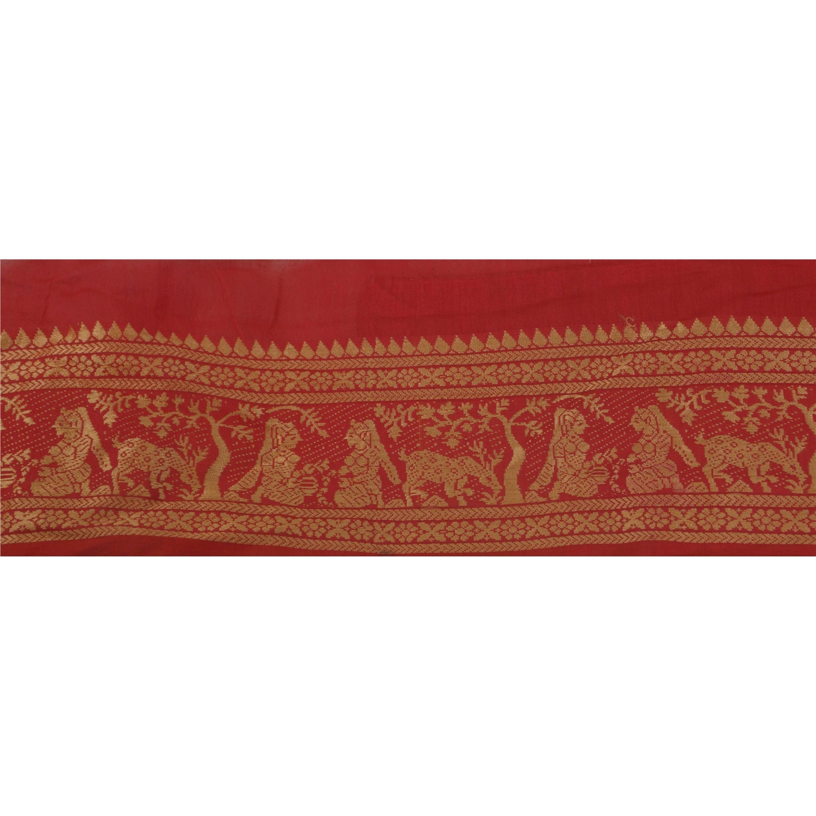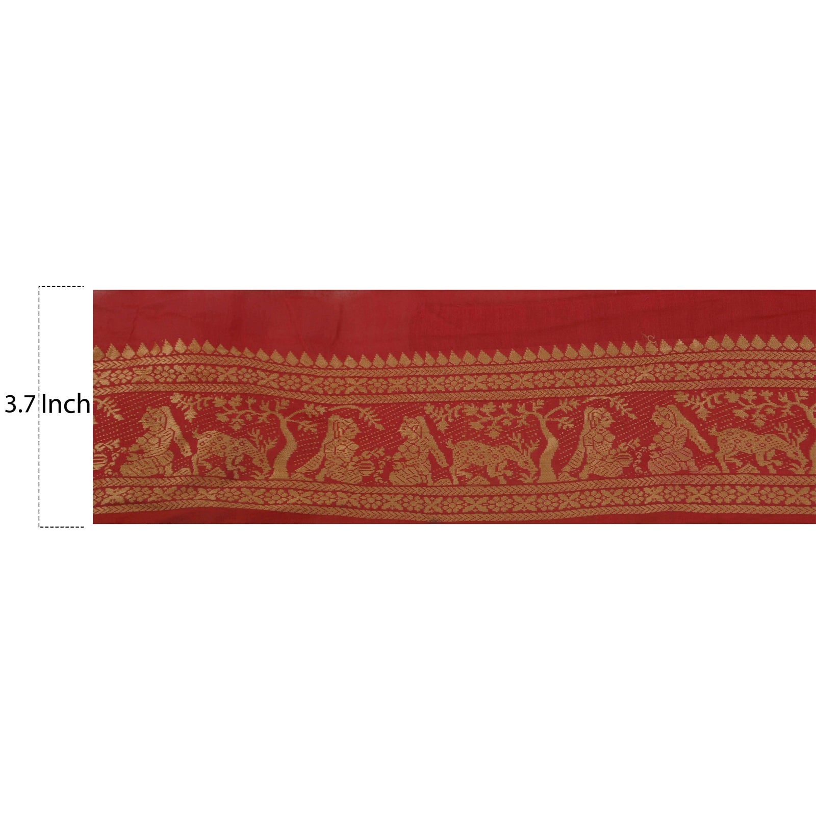 THE ITEM COLOR OR SHADE MAY BE DARKER OR LIGHTER THAN THE PICTURE.' Wonderful pure silk woven sari border in red color highlighting traditional Baluchari work from Odisha (Eastern India). Border has beautiful floral, deer and human figures design painstakingly woven with beige color thread. WOW!! an awesome one of a kind versatile border. 1 Quantity = 1 Yard International buyers please note: Import duties, taxes, and charges are not included in the item price or postage cost. These charges are the buyer's responsibility. Please check with your country's customs office to determine what these additional costs will be prior to bidding or buying. Buyer will pay custom duty/tax. It is calculated and charged differently by every country. As a seller I do not have any control over it.VAT or sales tax is calculated by the platform at the time of checkout. Customs charge is payable at the time of delivery. B-14445