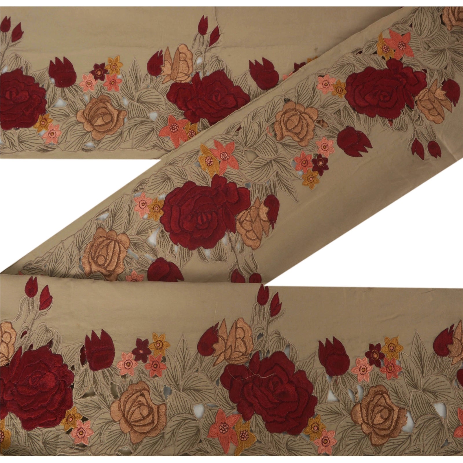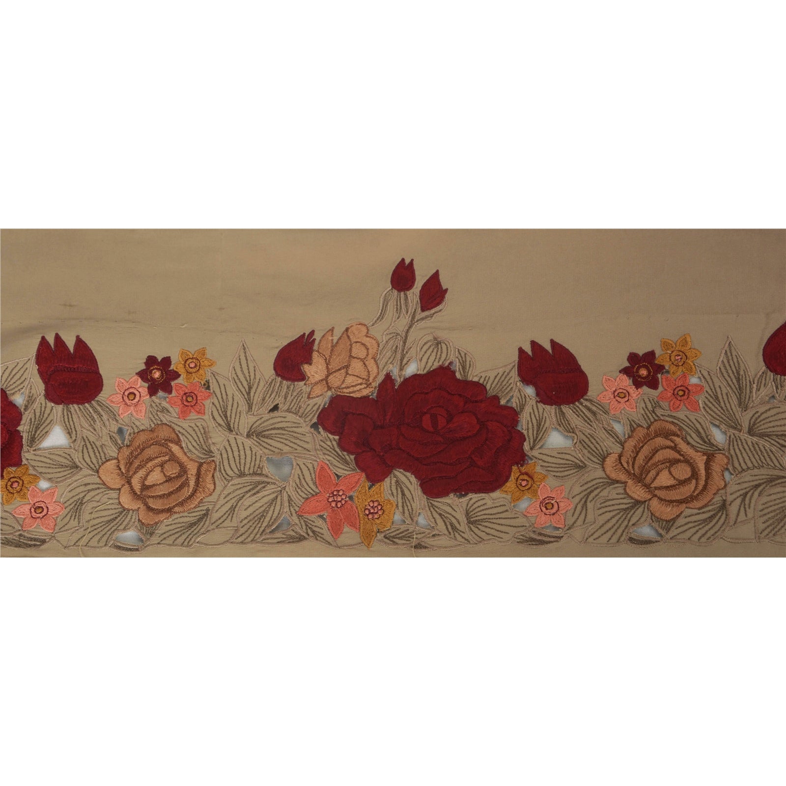 Великолепная вышитая кайма сари из крепового шелка нежно-кремового цвета с акцентными нитями. Бордюр украшен красивыми цветочными узорами, кропотливо вышитыми разноцветными нитками. ВАУ!! потрясающий, уникальный и универсальный бордюр. 1 Количество = 1 Ярд