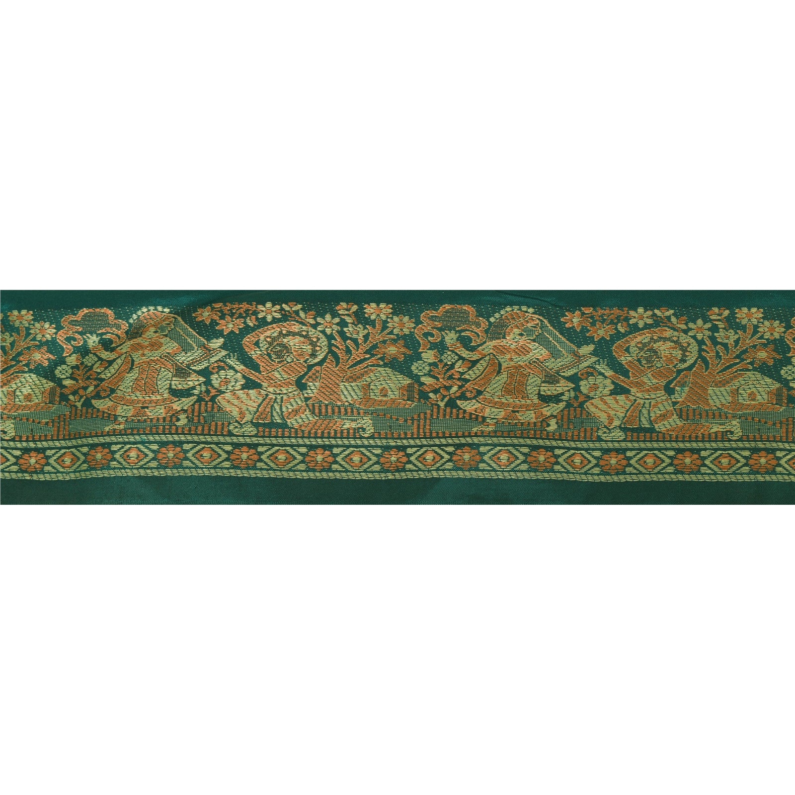 Sanskriti Vintage 1 YD Sari Border Baluchari Trim Sewing Green Craft Lace