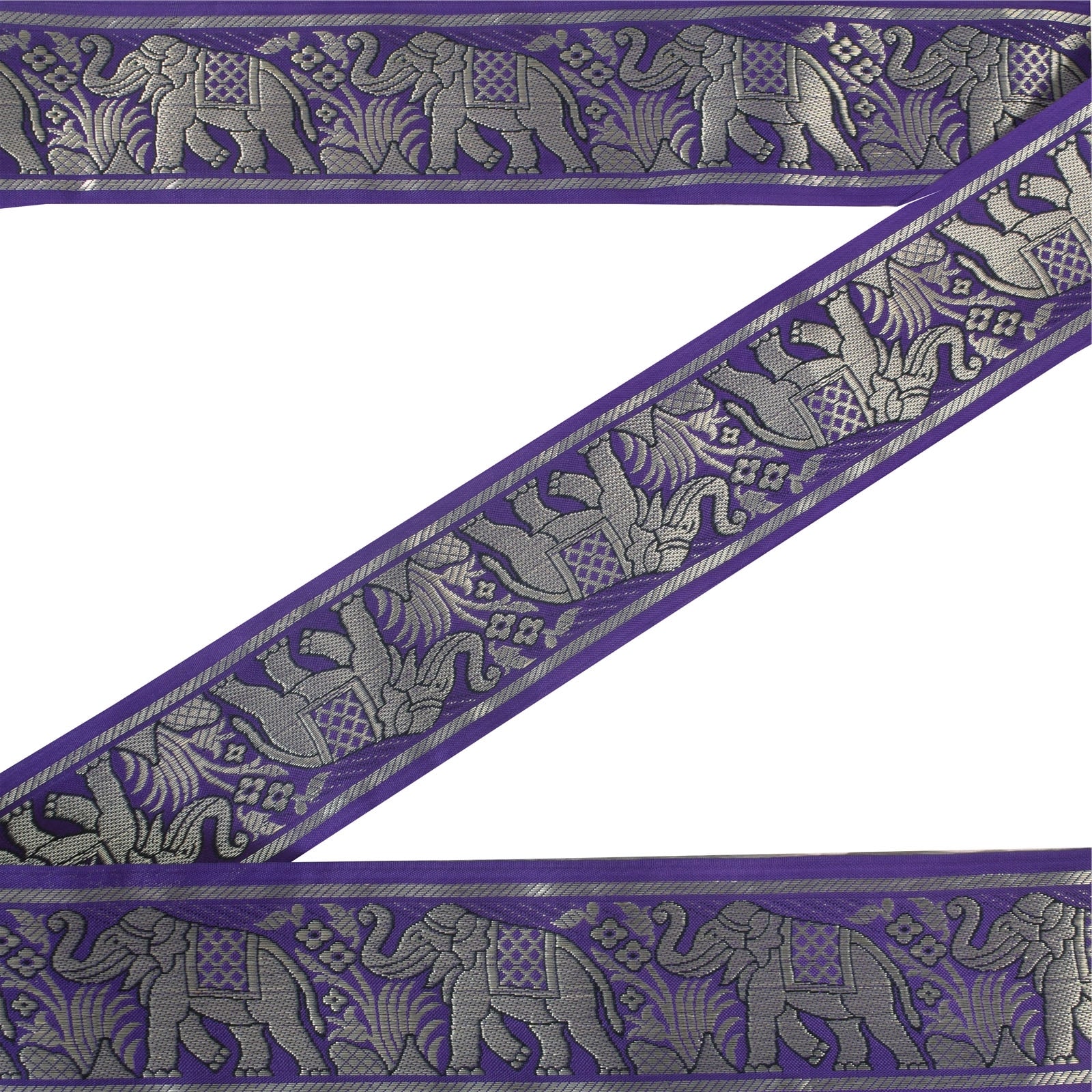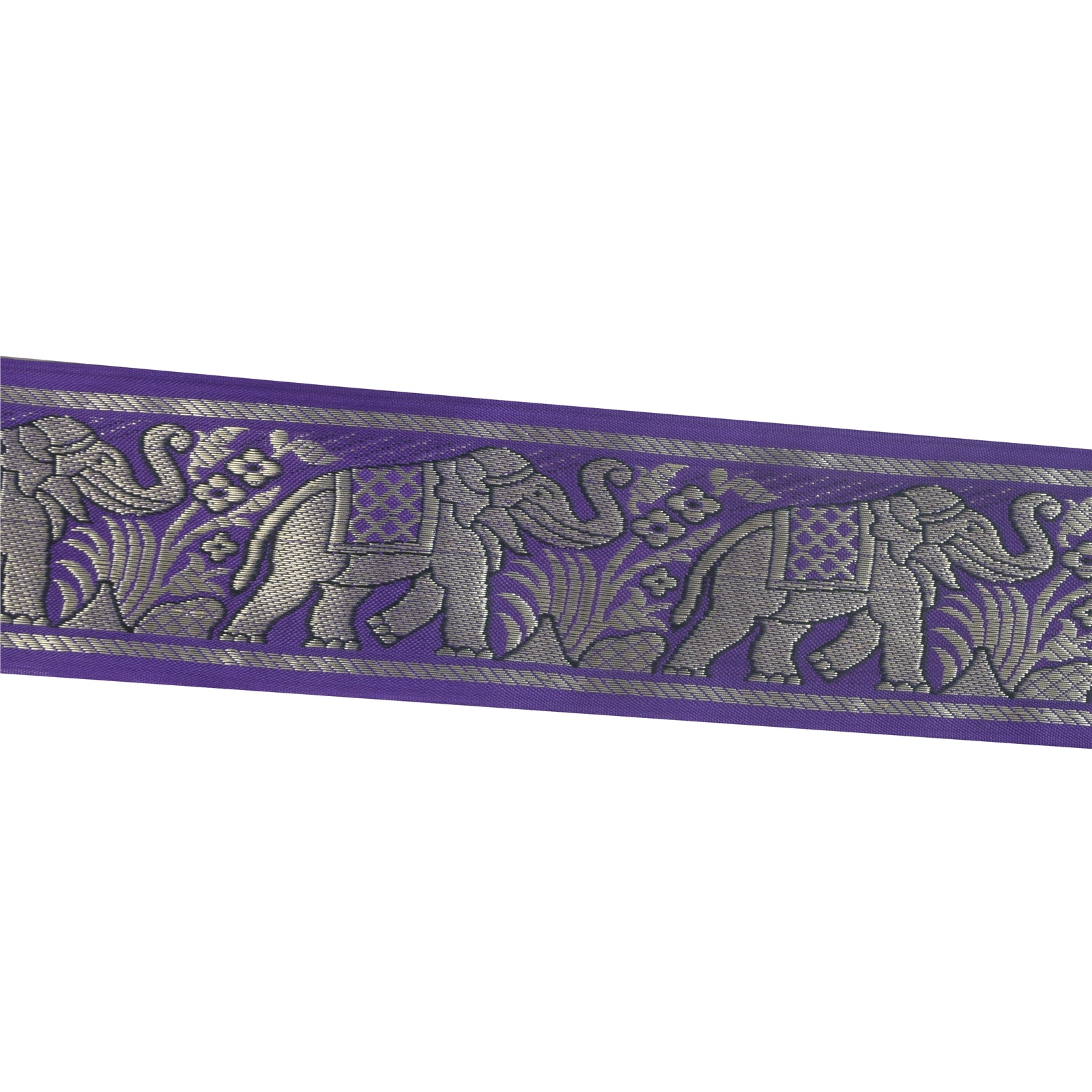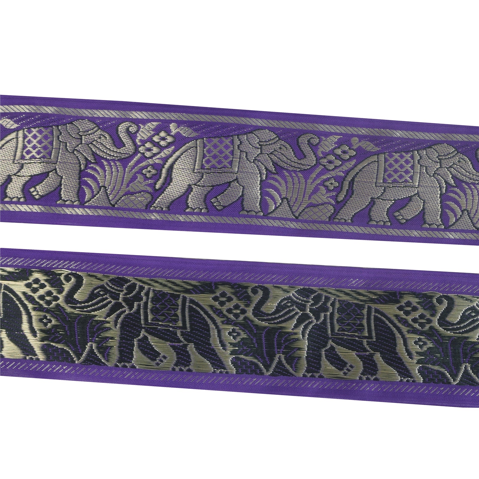 THE ITEM COLOR OR SHADE MAY BE DARKER OR LIGHTER THAN THE PICTURE.' Amazing pure silk hand woven sari border in purple color. Border has beautiful floral & elephant design with woven work. WOW!! an awesome one of a kind versatile border. 1 Quantity = 1 Yard B-14763