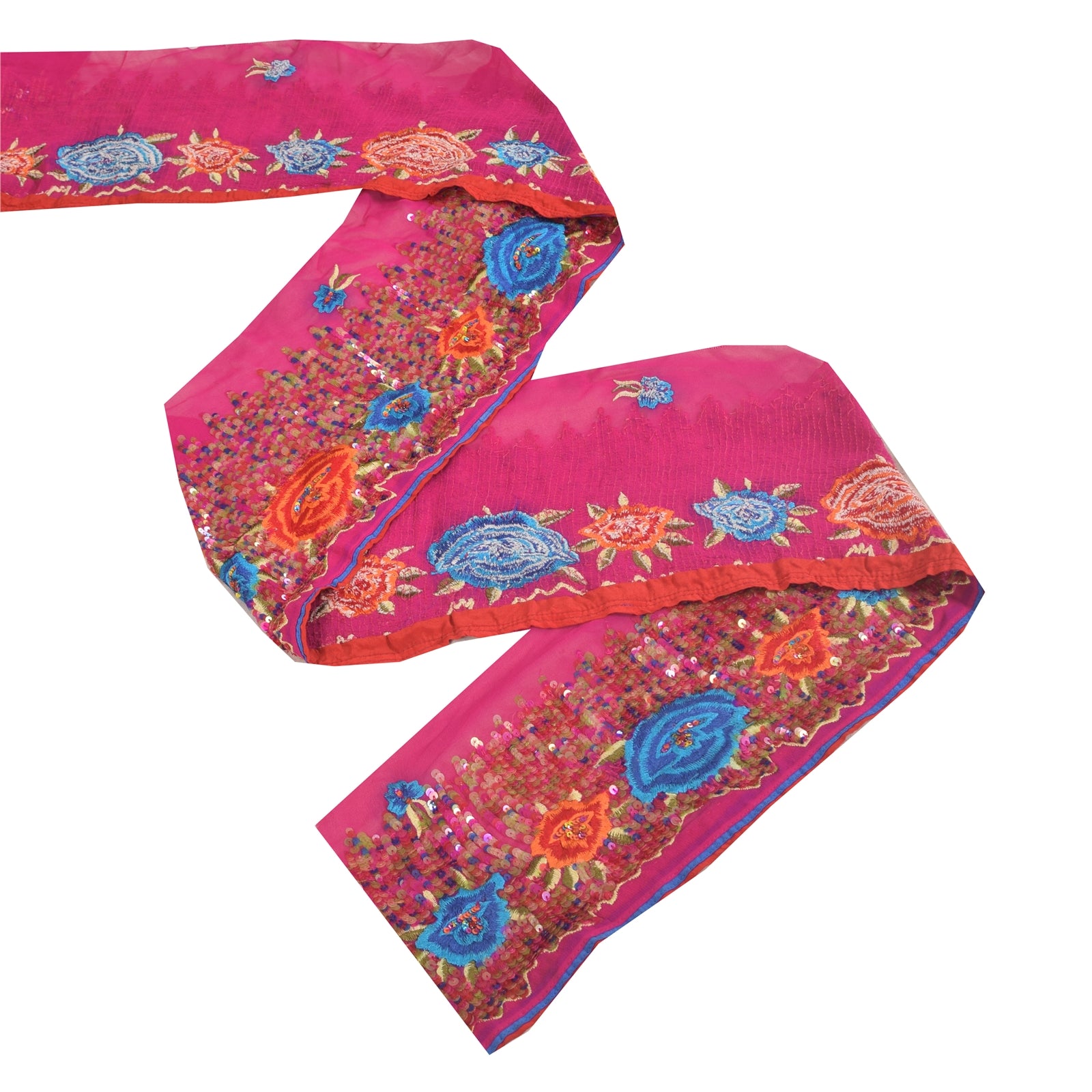 THE ITEM COLOR OR SHADE MAY BE DARKER OR LIGHTER THAN THE PICTURE.' Amazing pure silk embroidered sari border in pink color. Border has beautiful floral design with thread & sequins work. WOW!! an awesome one of a kind versatile border. 1 Quantity = 1 Yard B-14755