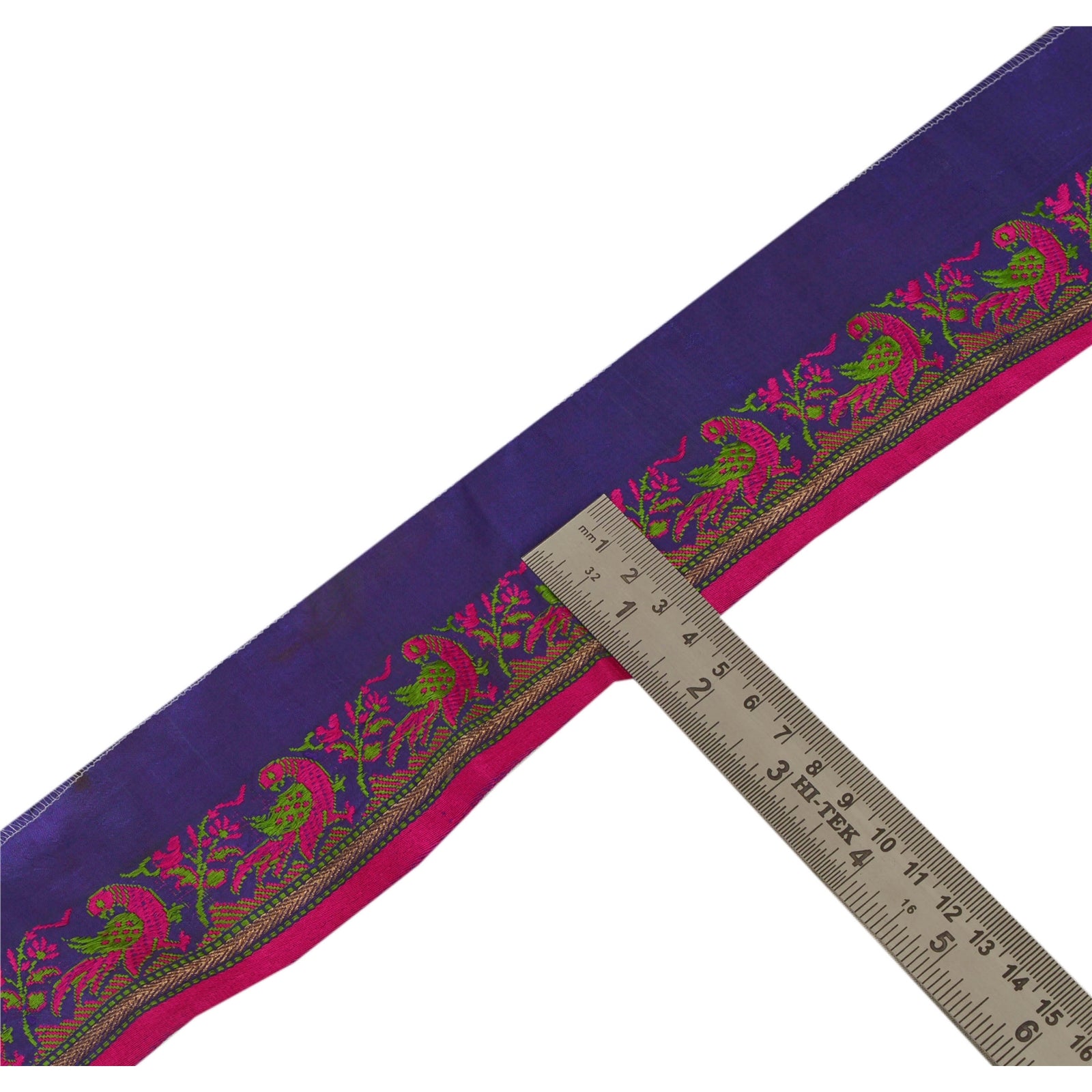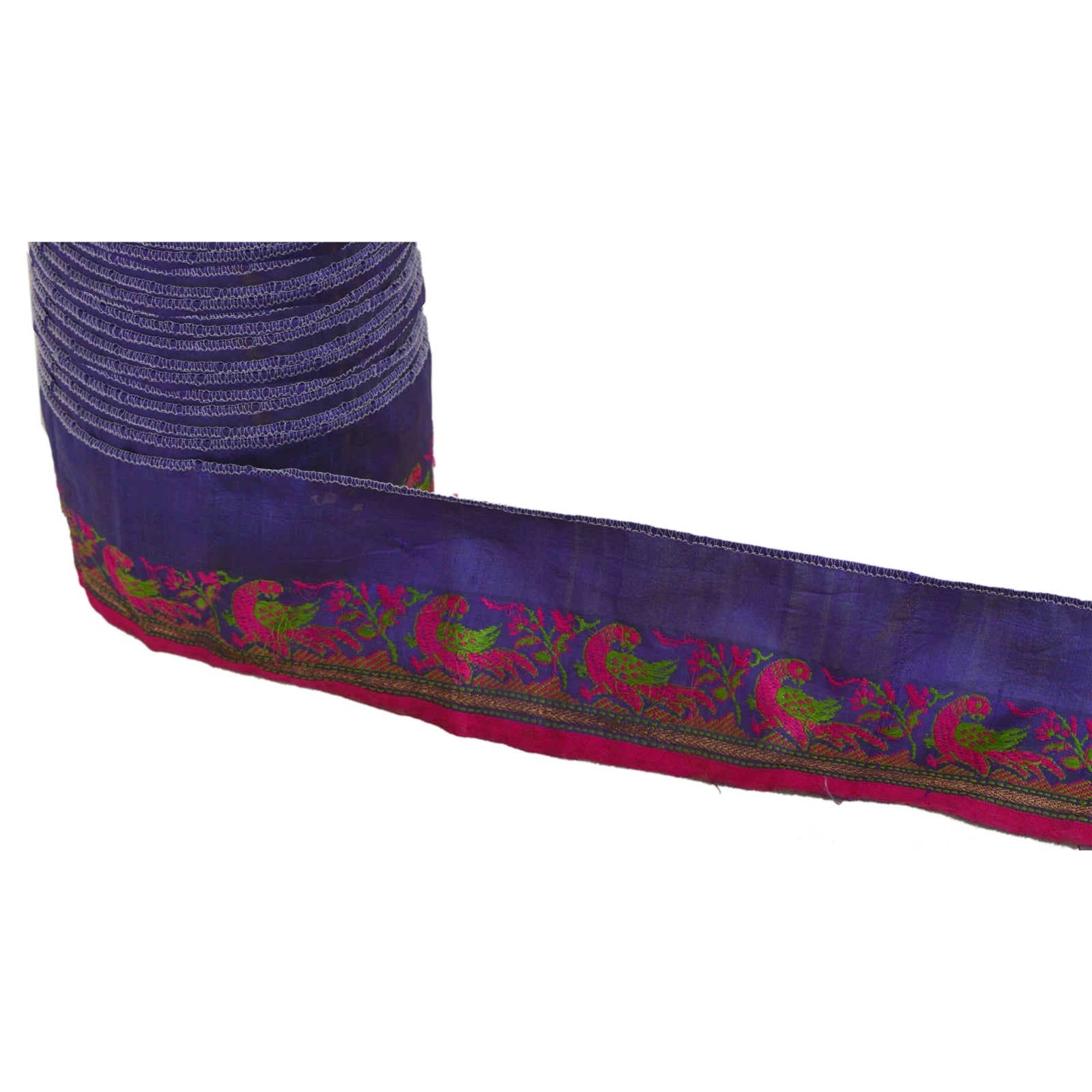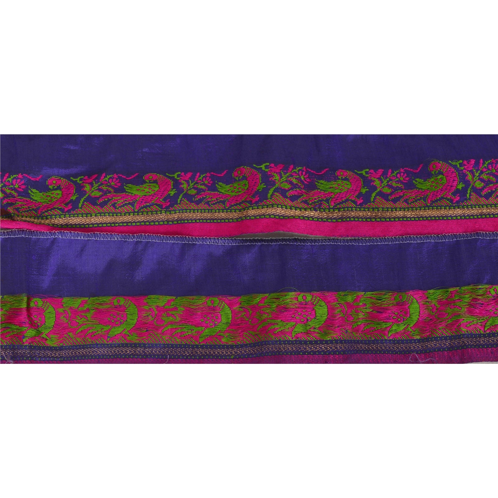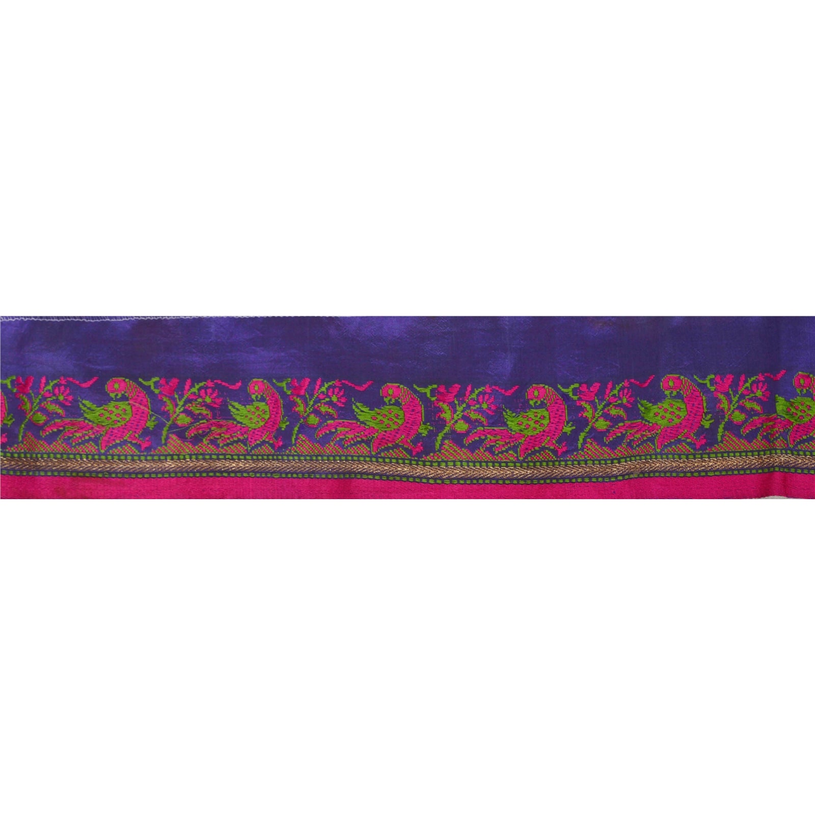 Потрясающая 100% шелковая тканая кайма сари в синих и розовых тонах, подчеркивающая тканую работу. Кайма имеет красивый цветочный и павлиний дизайн, кропотливо розово-зеленая тканая работа. Также вы можете увидеть золотую работу зари. ВАУ!! потрясающая, единственная в своем роде, универсальная кайма. 1 количество = 1 ярд
