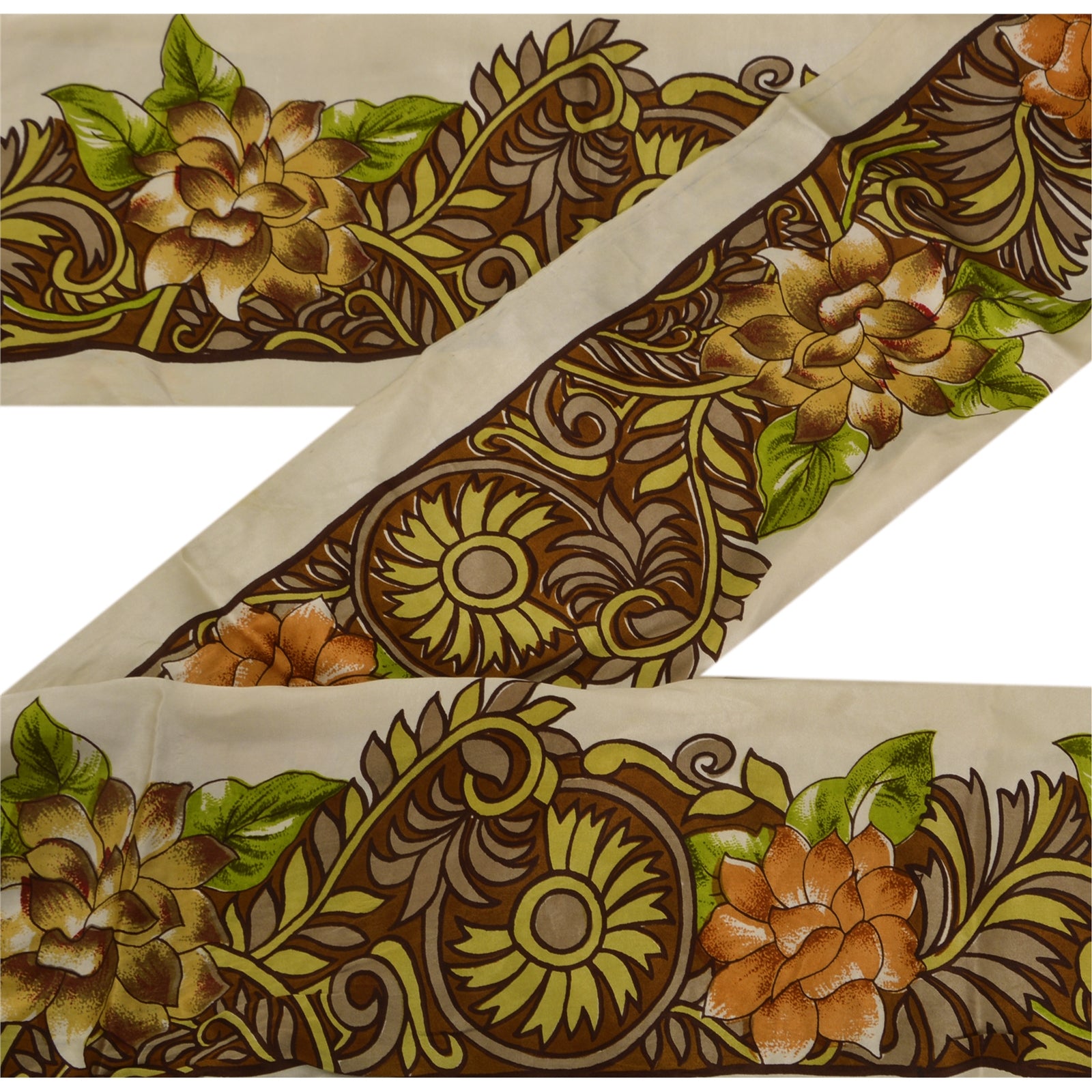 Удивительная кайма сари из чистого шелка с цифровой печатью в коричневых и кремовых тонах. Бордюр украшен красивыми цветочными узорами, напечатанными цифровым способом, с использованием разноцветных узоров. ВАУ!! потрясающий, уникальный и универсальный бордюр. 1 Количество = 3 Ярда