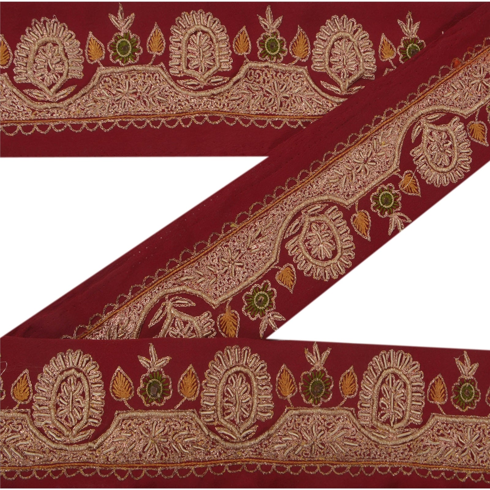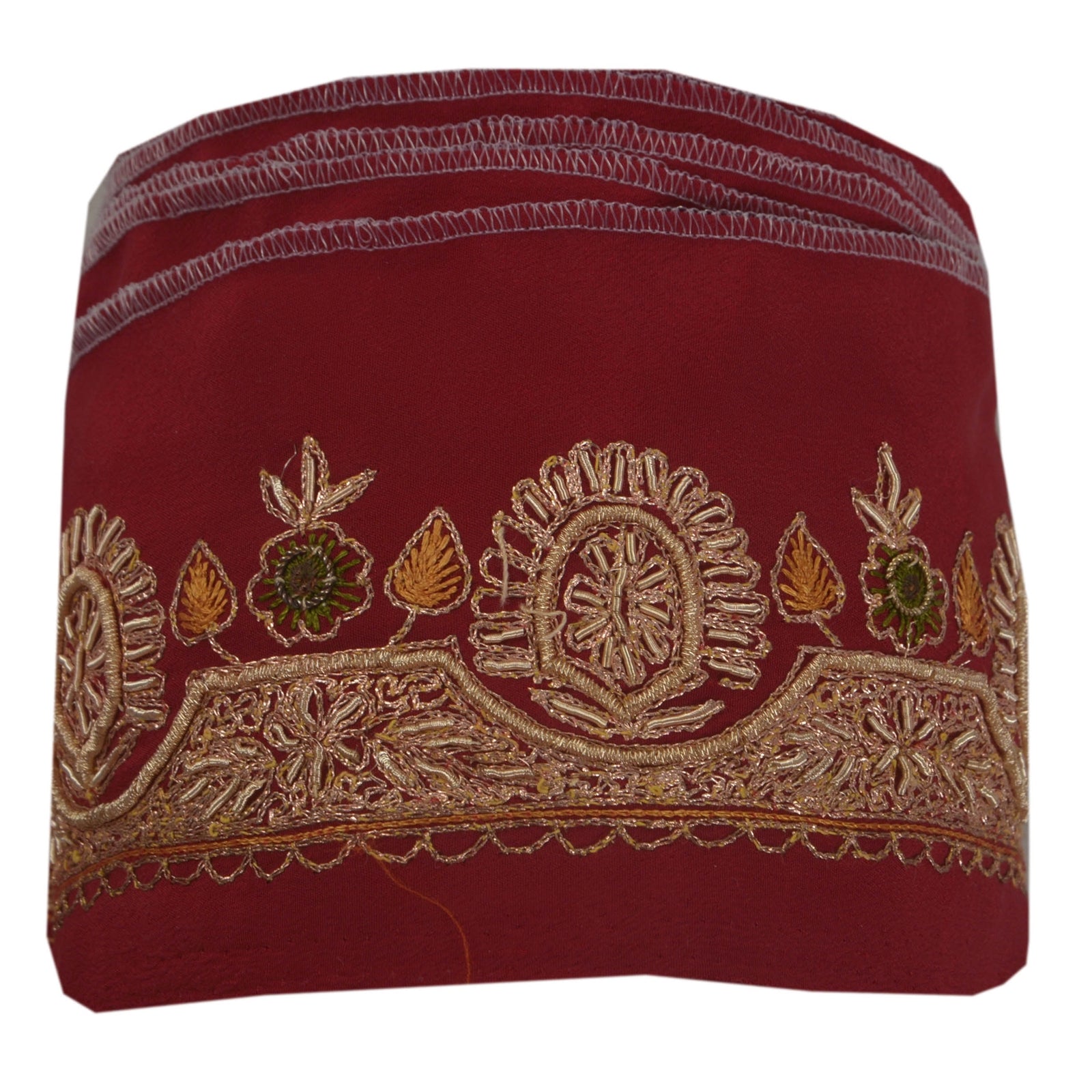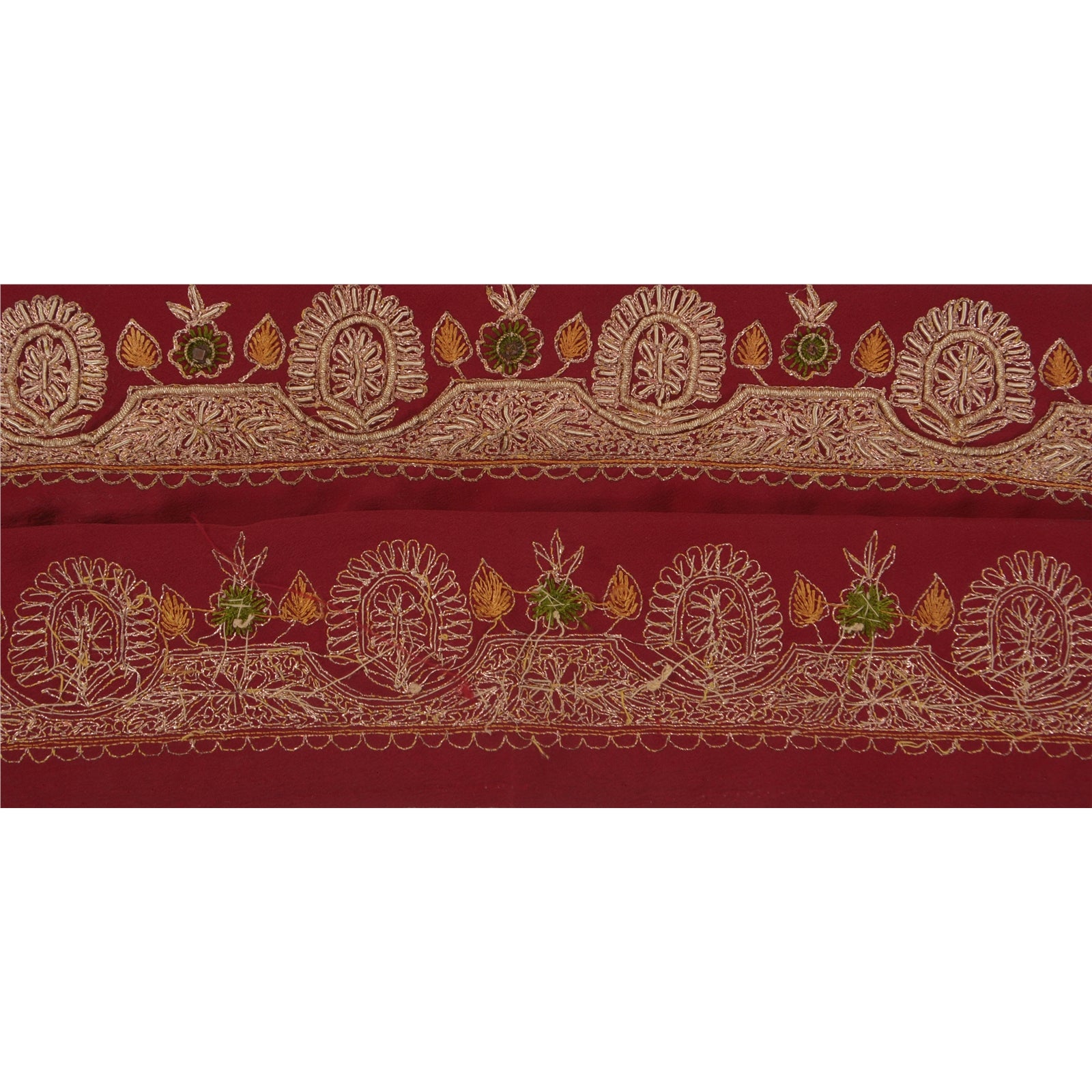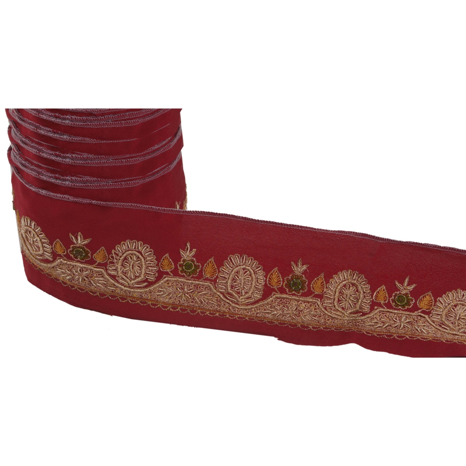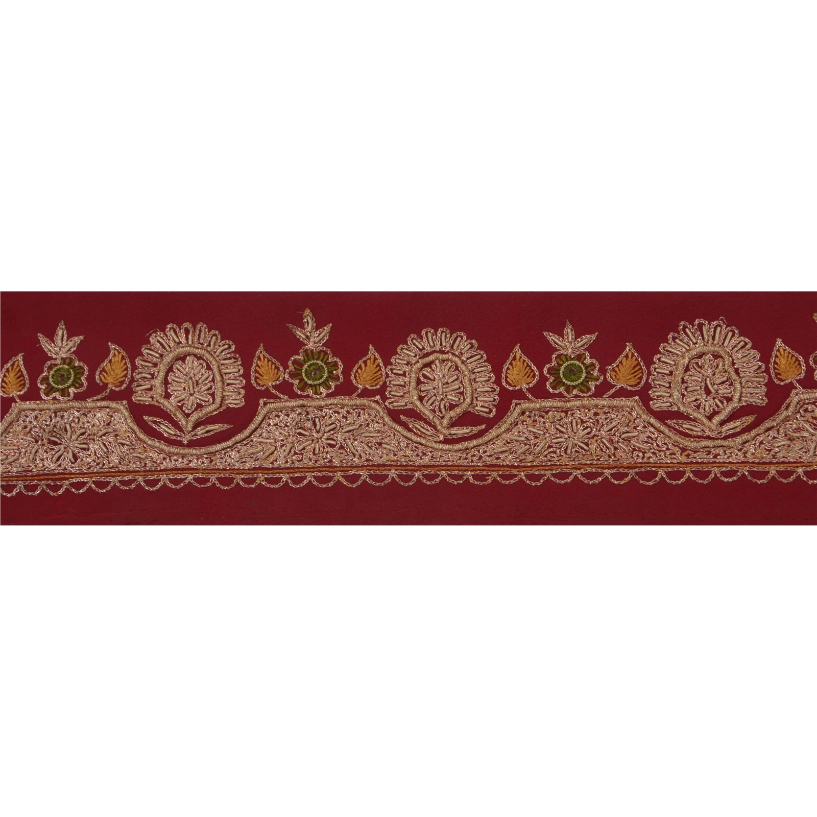 Удивительная вышитая вручную кайма сари из крепированного шелка темно-красного цвета, подчеркивающая работу зардози. Кайма имеет красивые цветочные узоры, кропотливо вышитые вручную золотой работой зари/зардози/дабка. Далее вы можете увидеть тонкую детализацию с помощью работы зелеными/горчичными нитями. ВАУ!! потрясающая, единственная в своем роде, универсальная кайма. 1 количество = 1 ярд
