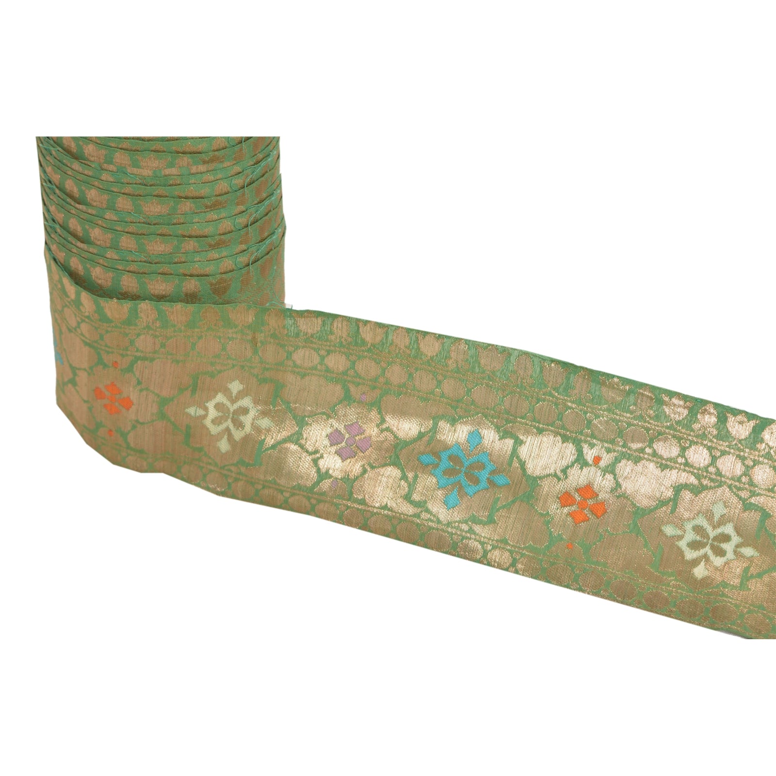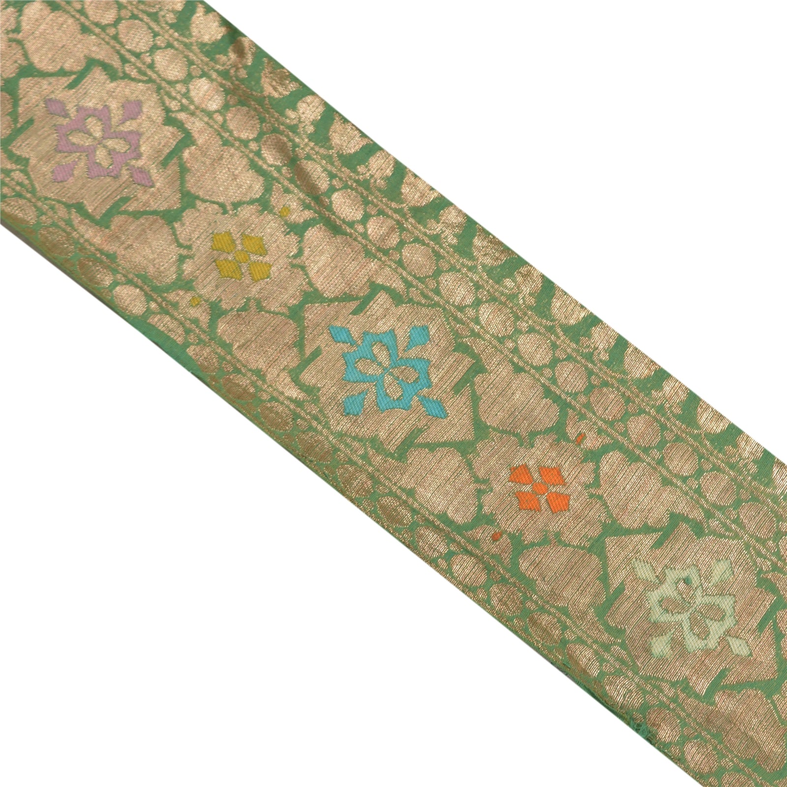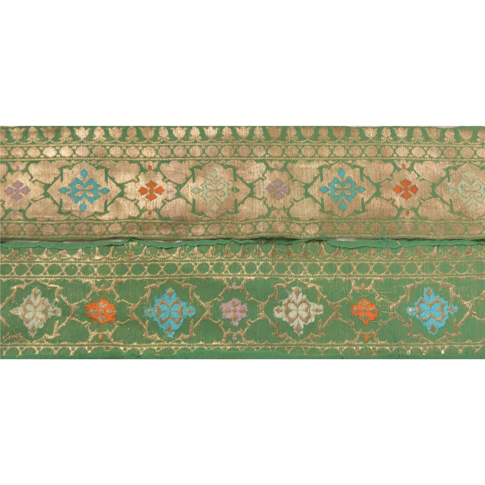 Красивая кайма сари из 100% чистого шелка зеленого цвета, подчеркивающая тканую работу Banasari/Brocade. Кайма имеет красивые цветочные узоры, кропотливо выполненная золотисто-металлическая тканая работа Zari, тканая работа из оранжевых/зеленых нитей. ВАУ!! потрясающая, единственная в своем роде, универсальная кайма. 1 количество = 1 ярд