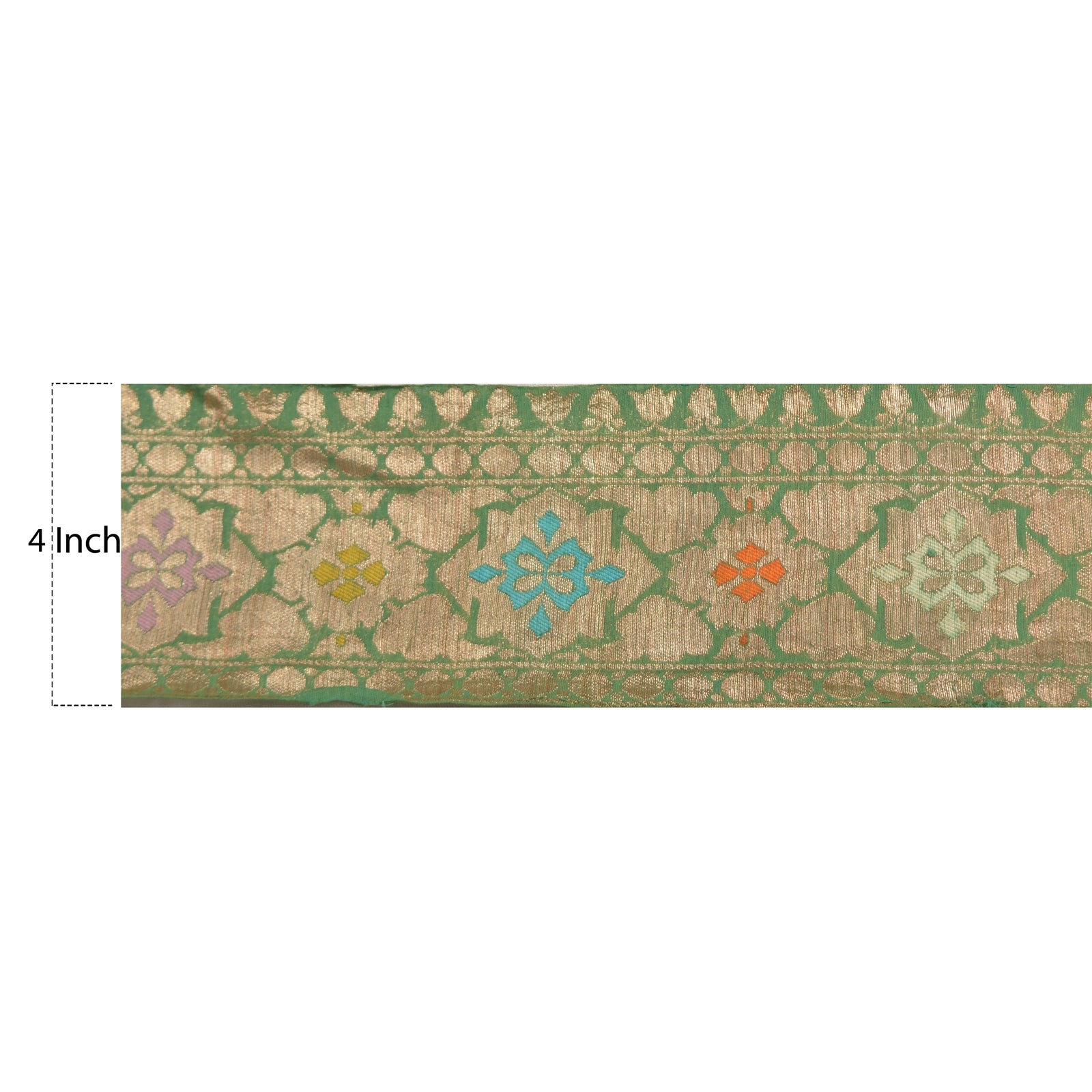 Санскрити Винтаж 1Yd Сари Кайма 4"W Парчовая Отделка Шитье Craft Зеленое Кружево