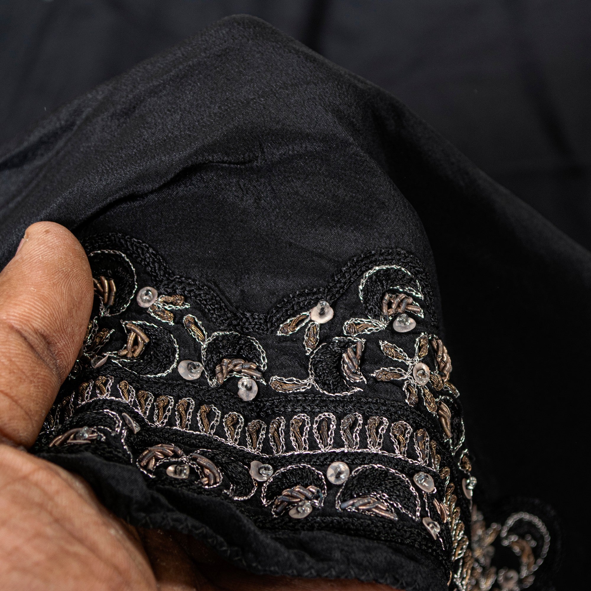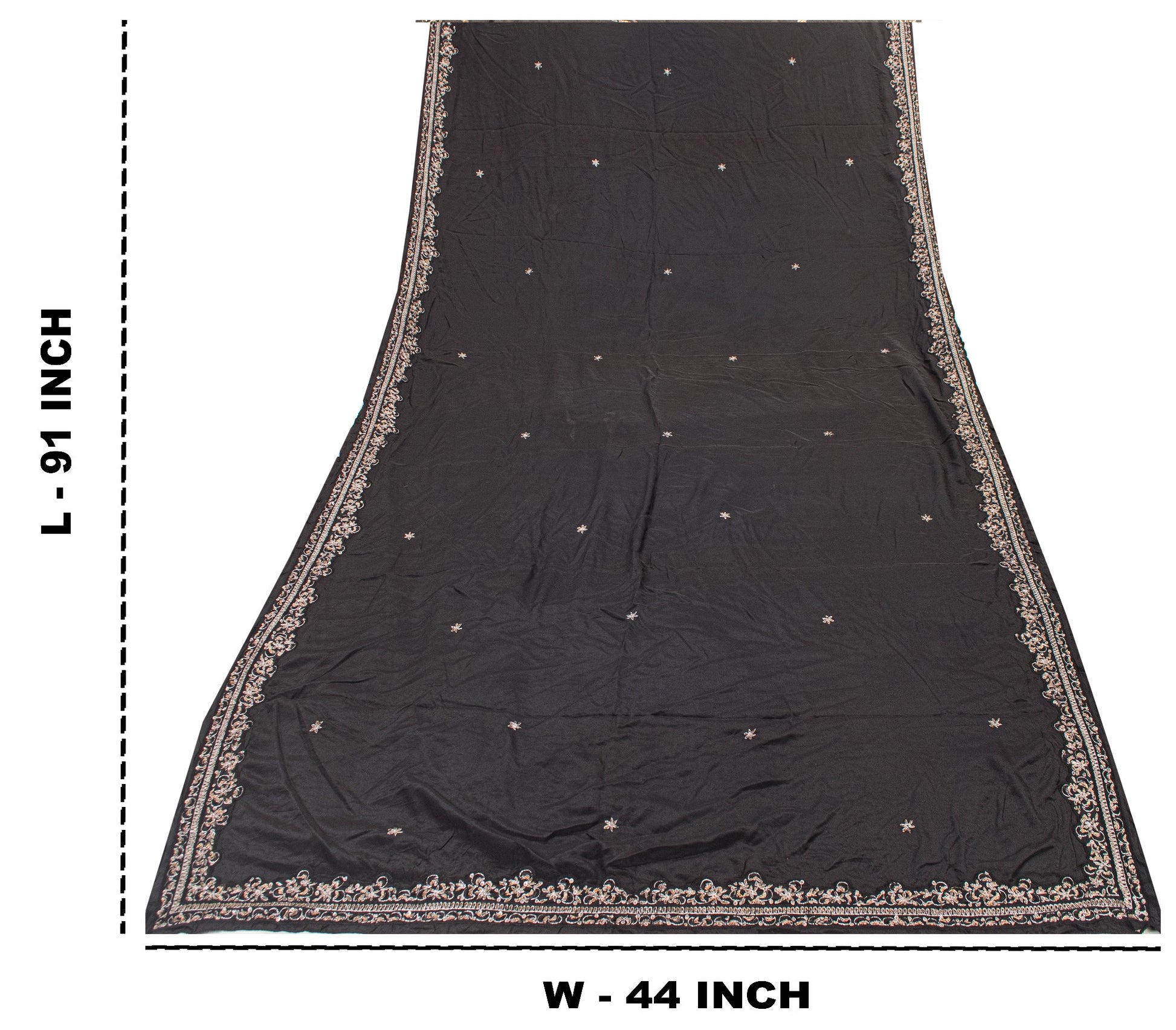 Sanskriti Vintage Black Pure Silk Dupatta Long Stole Hand Beaded Zardozi Scarves