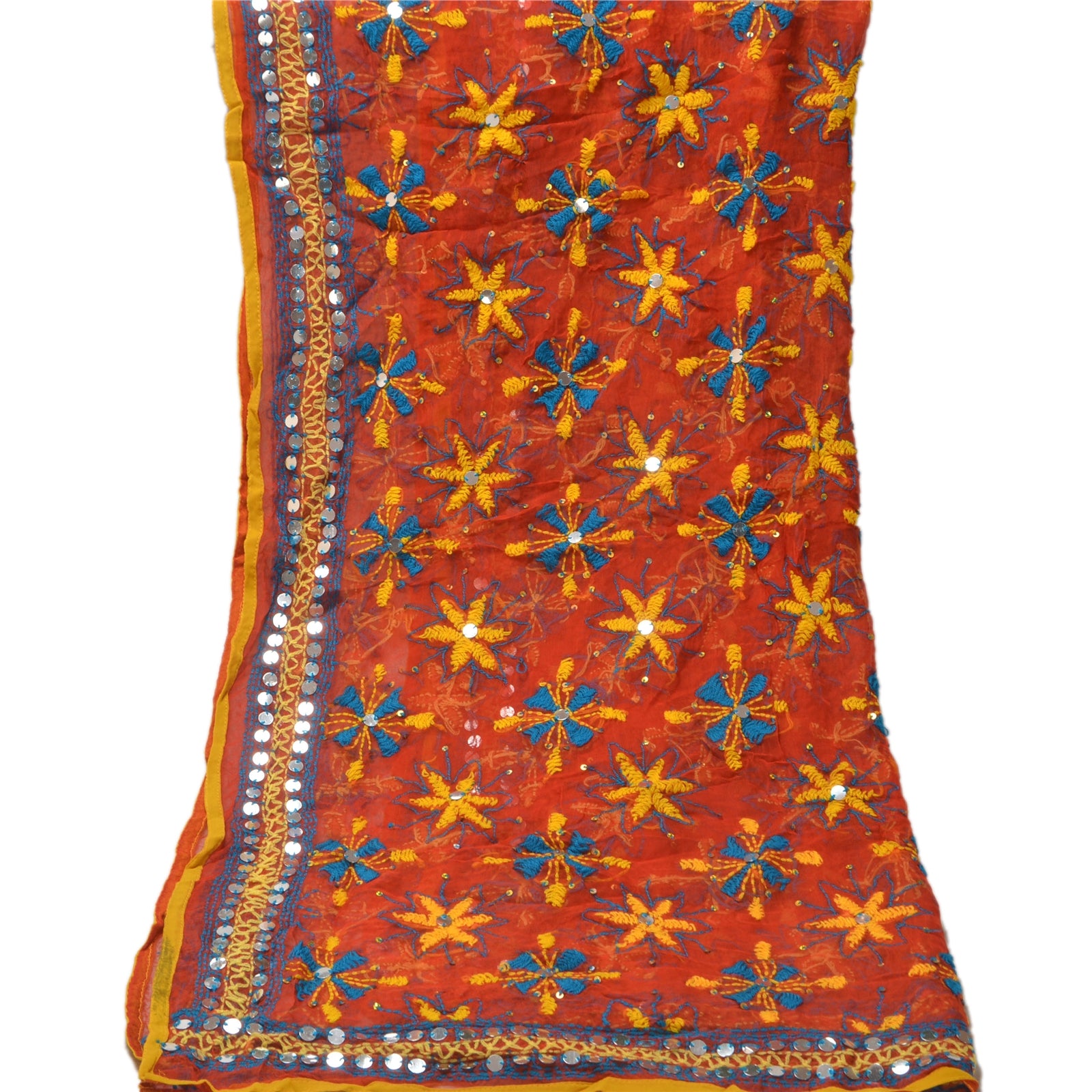 Sanskriti Vintage Blend Georgette Dupatta Long Stole OOAK Handmade Phulkari Veil