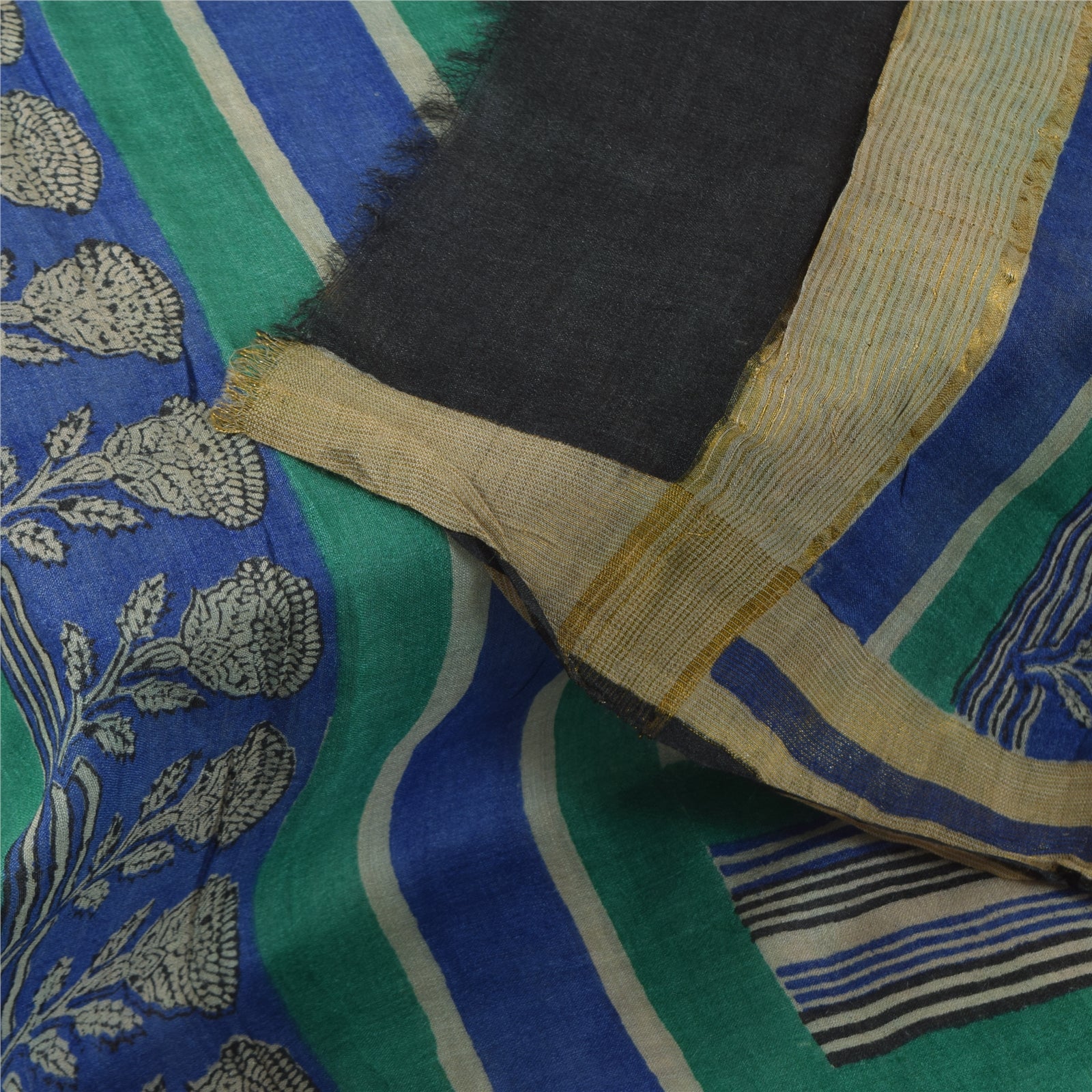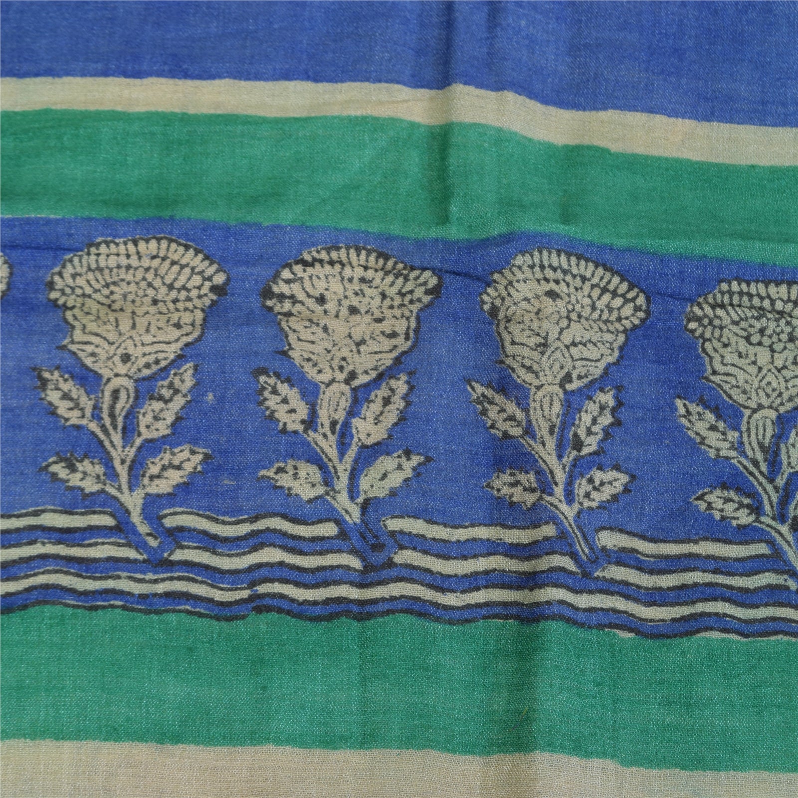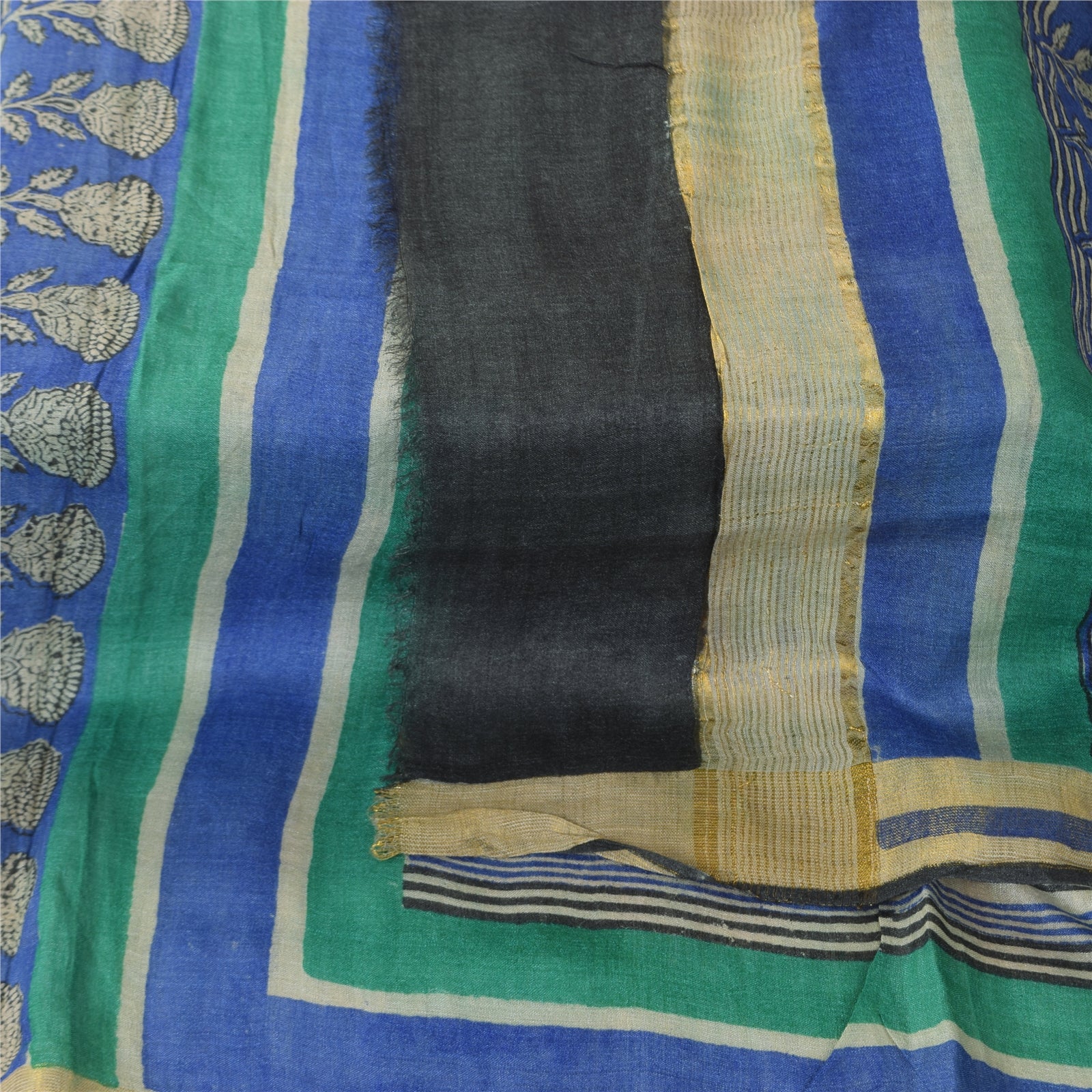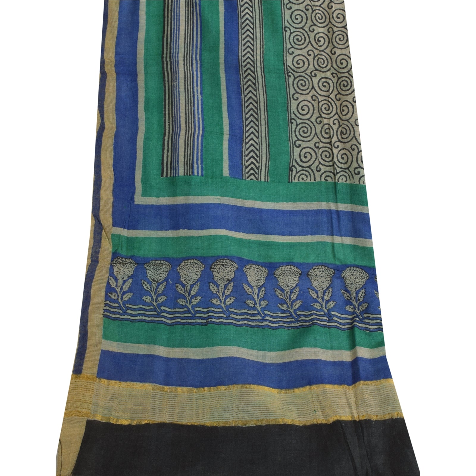 Санскрити Винтаж Синий/Серый Дупатта Длинный Палантин Чистый Шелк Печатный Премиум Шарфы