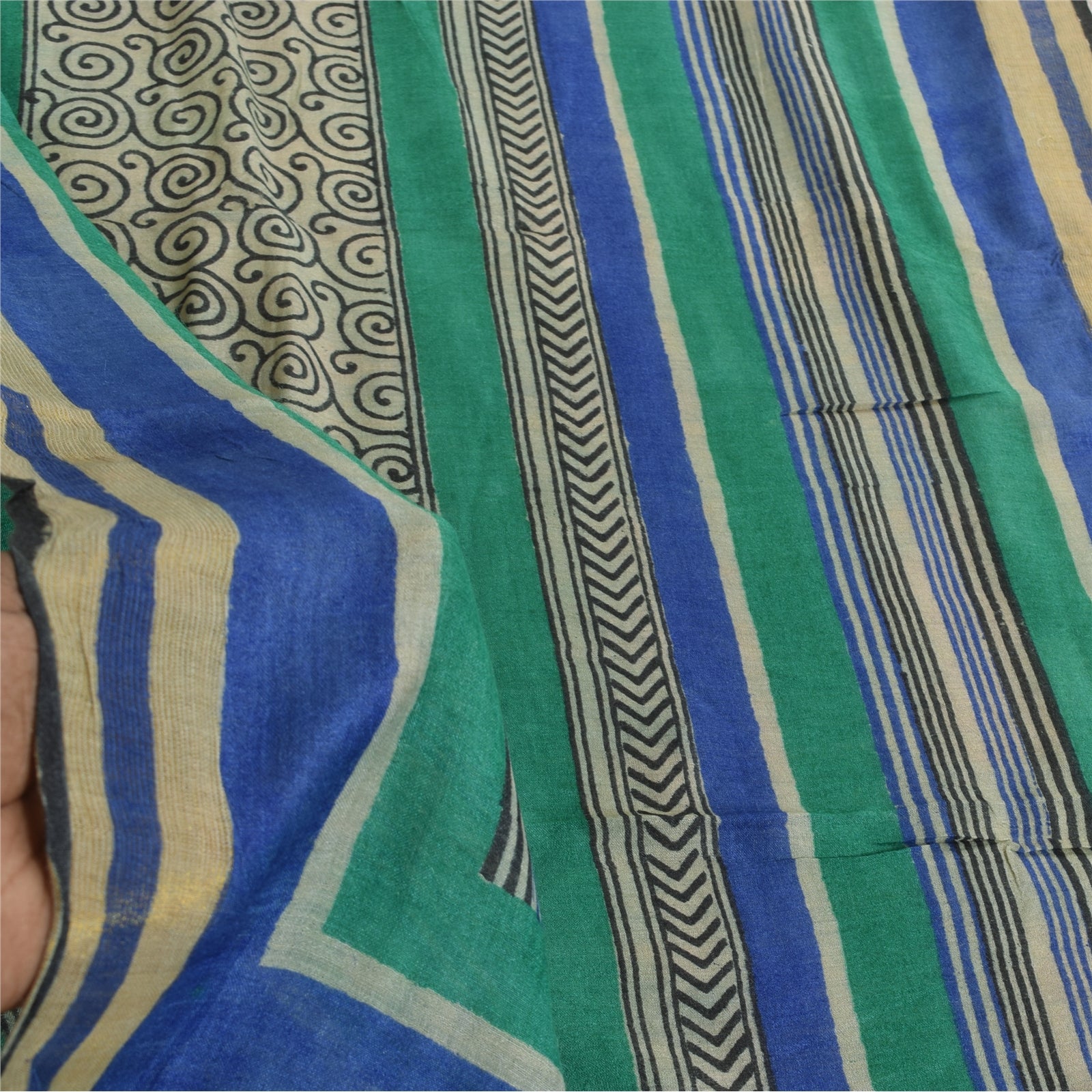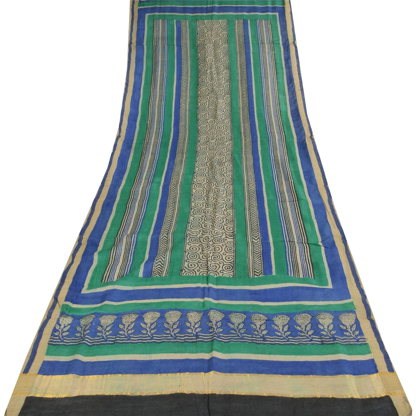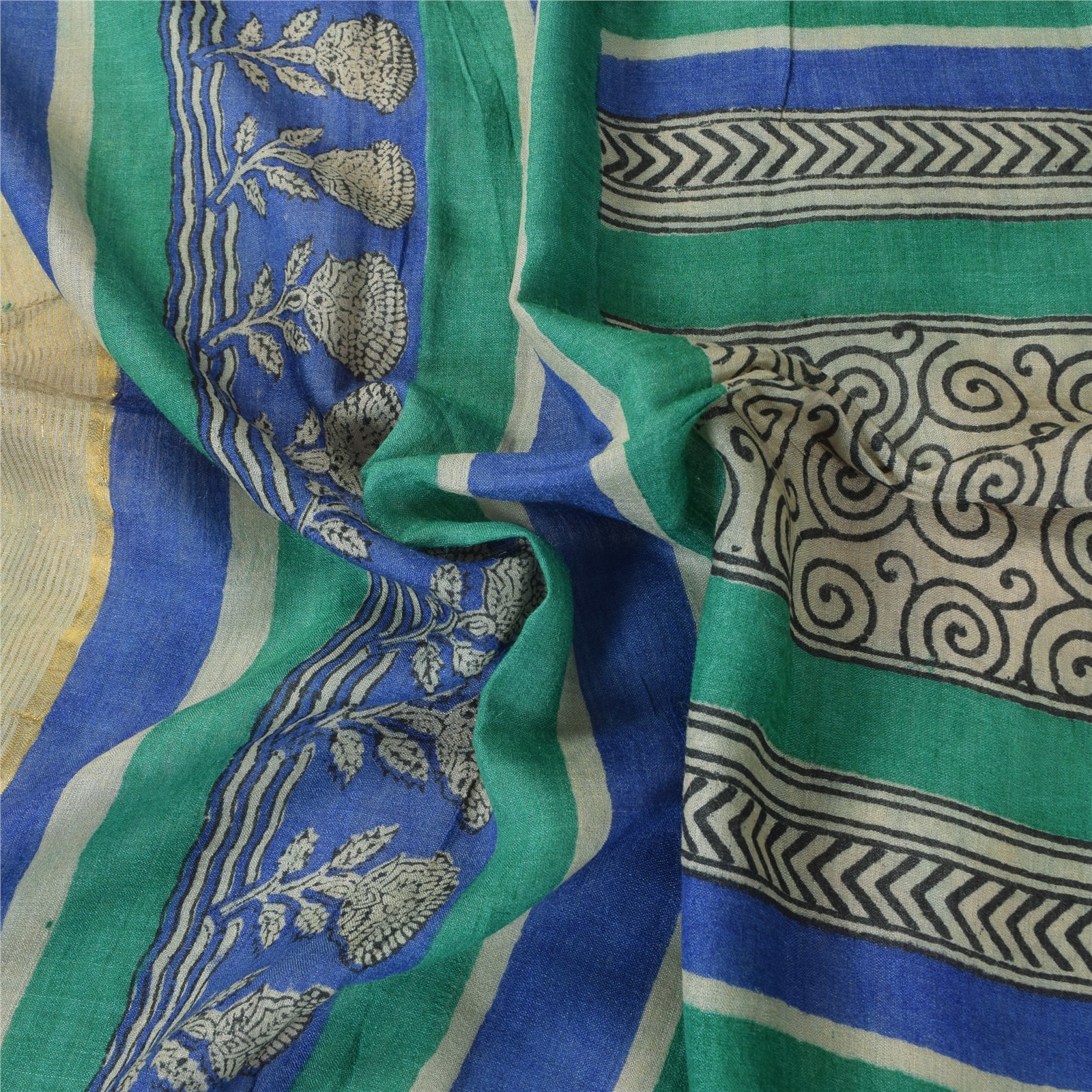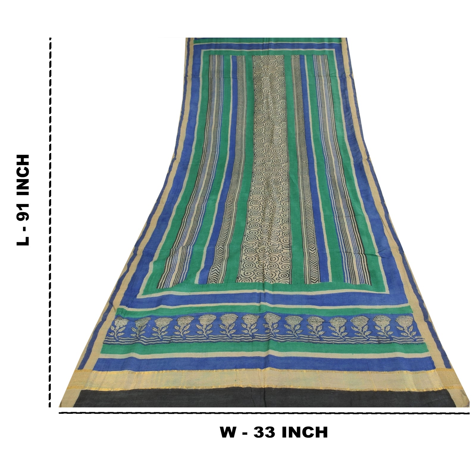 Санскрити Винтаж Синий/Серый Дупатта Длинный Палантин Чистый Шелк Печатный Премиум Шарфы