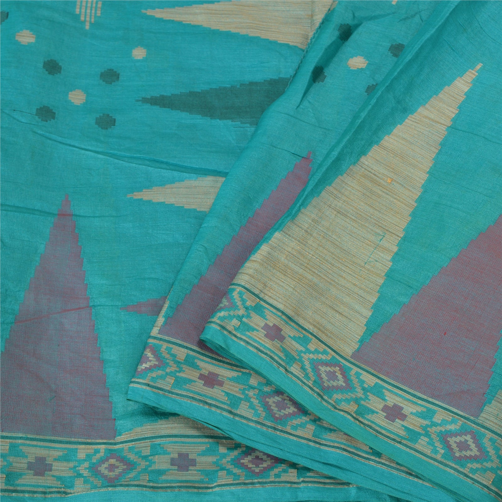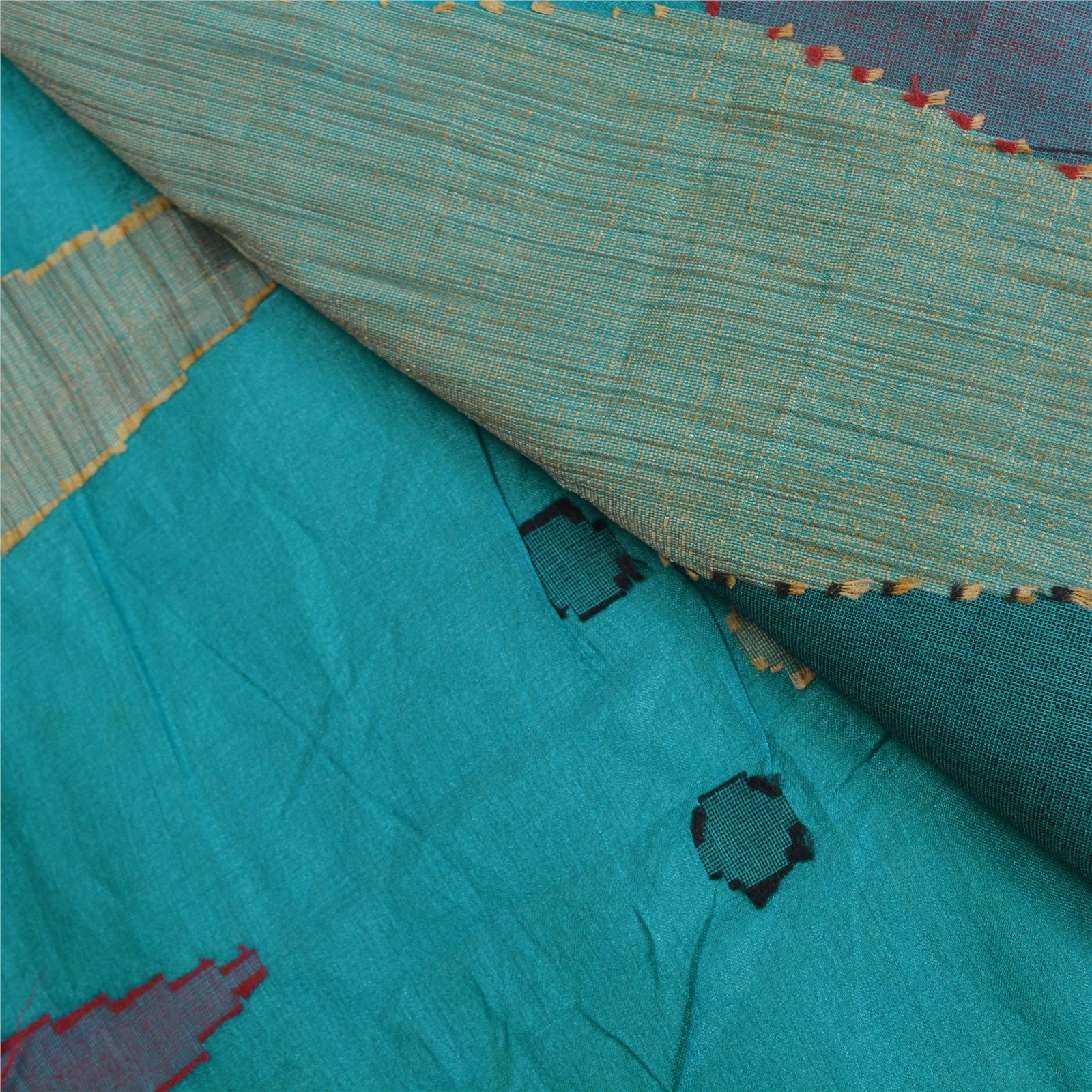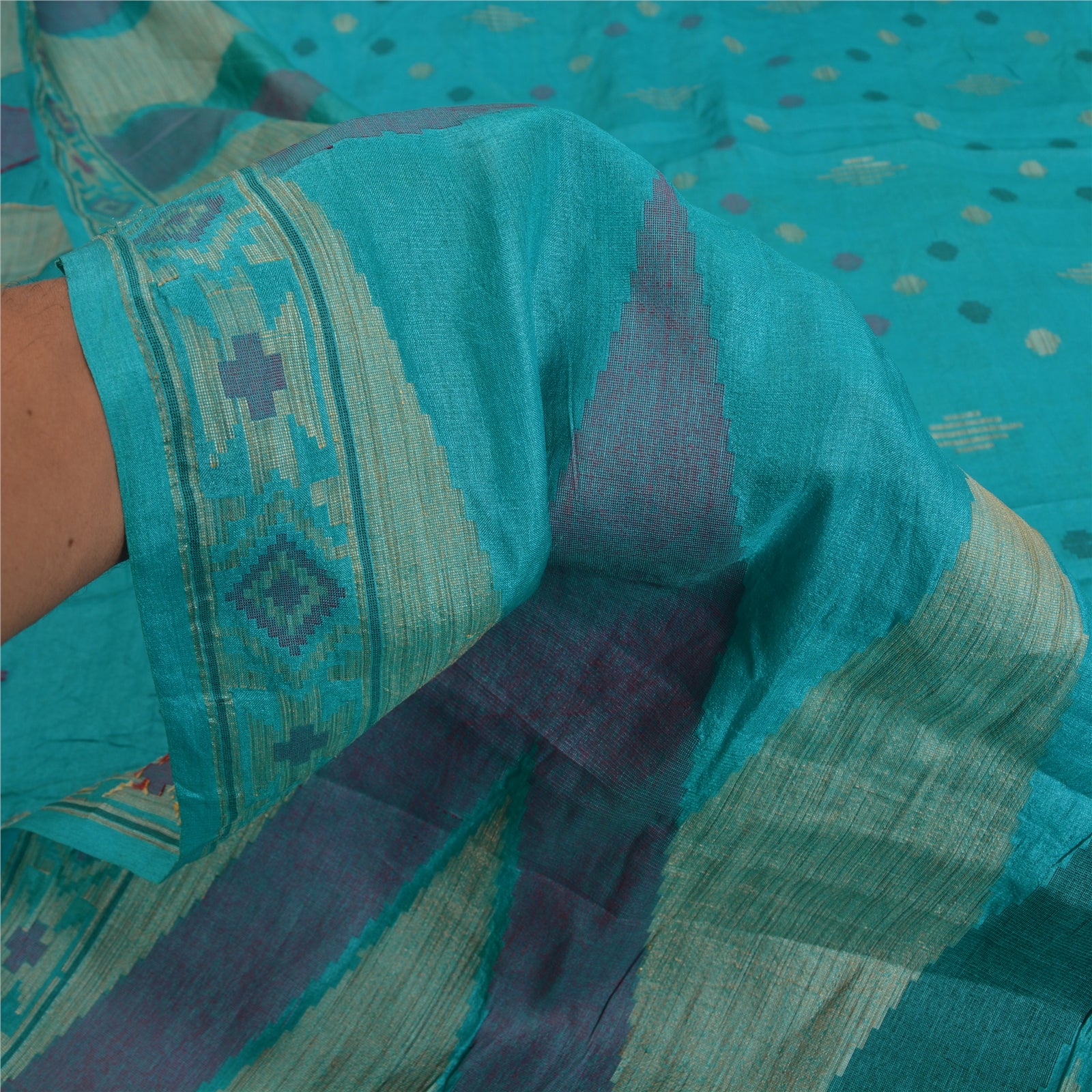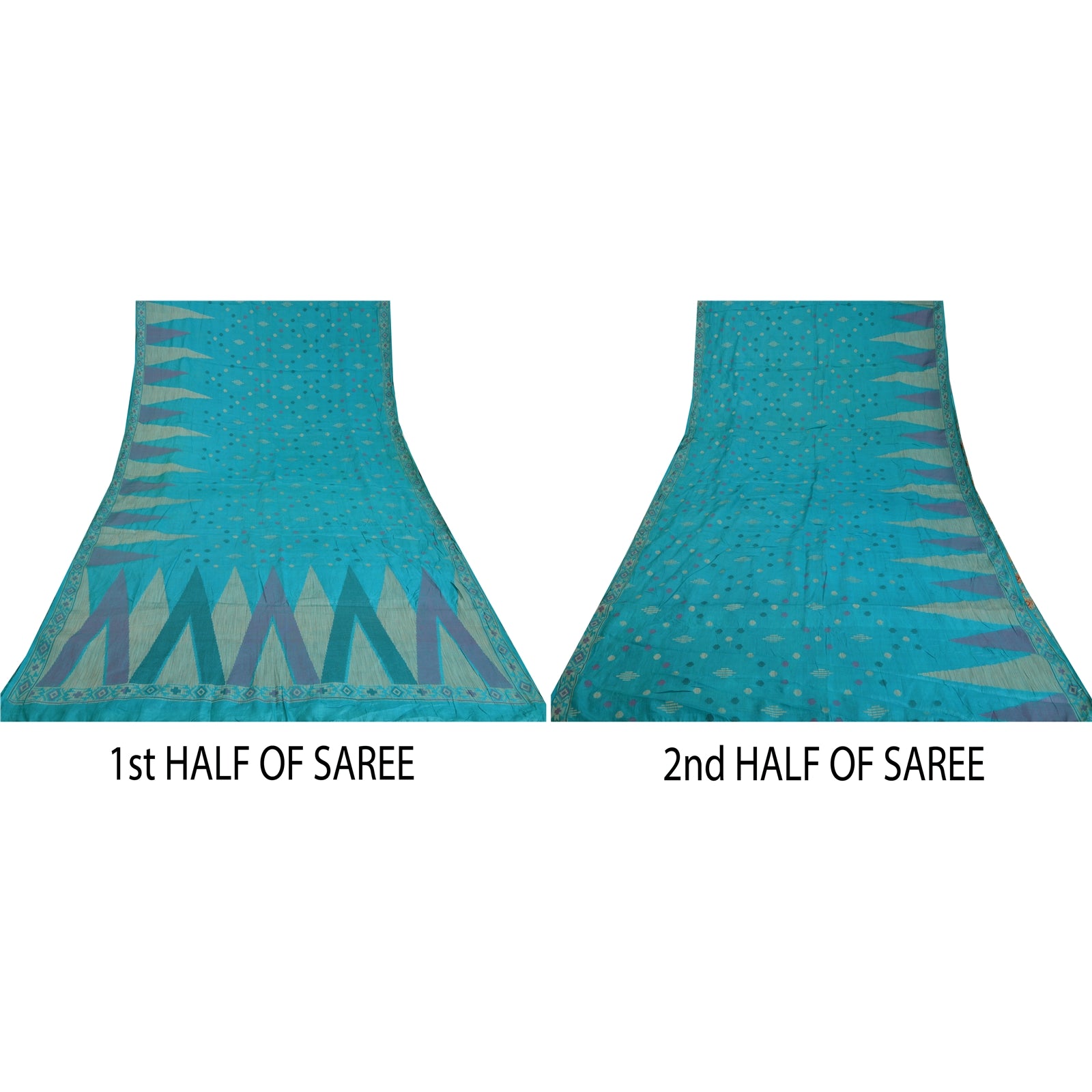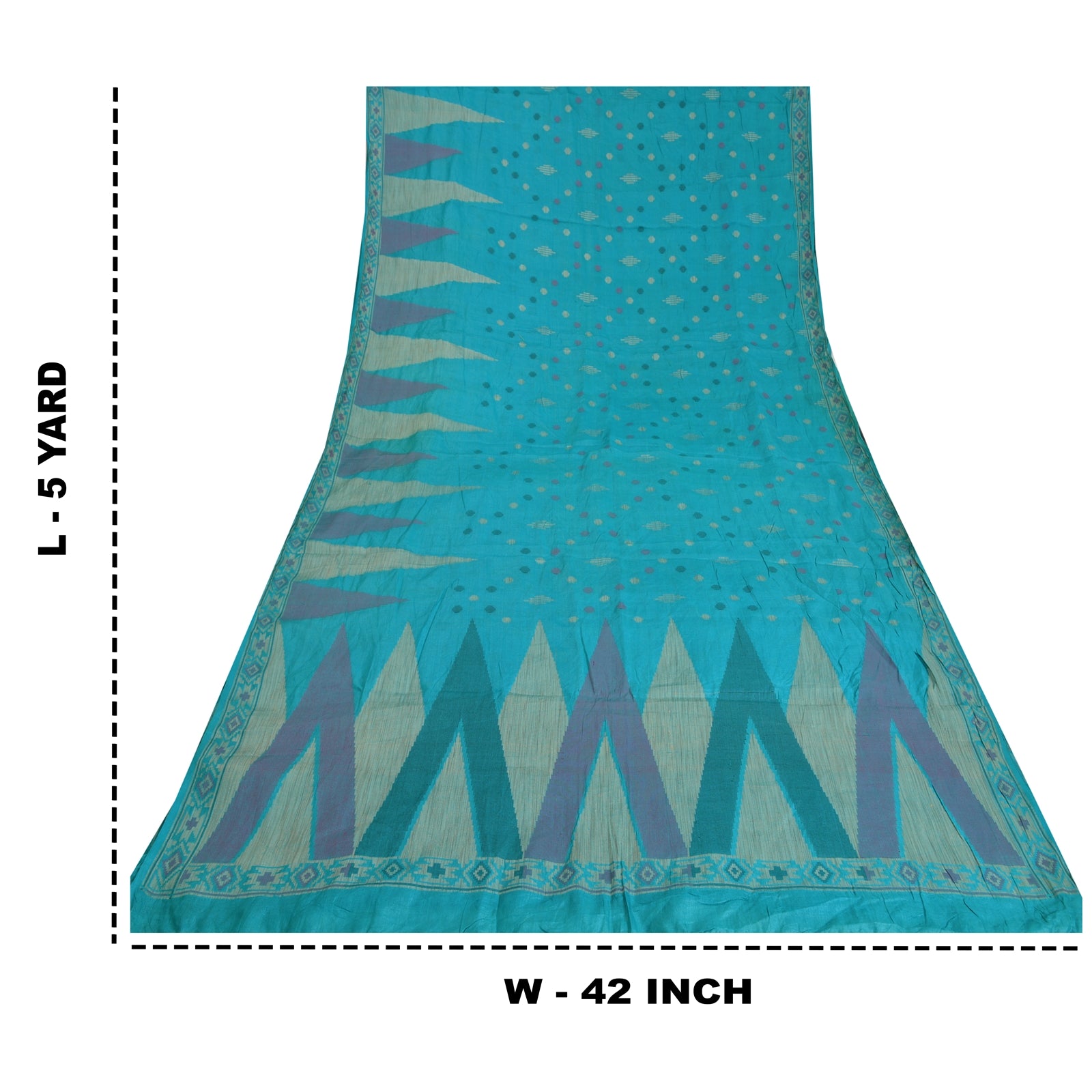 Санскритские винтажные синие индийские сари 100% чистый шелк тканое сари 5 ярдов устойчивая ткань