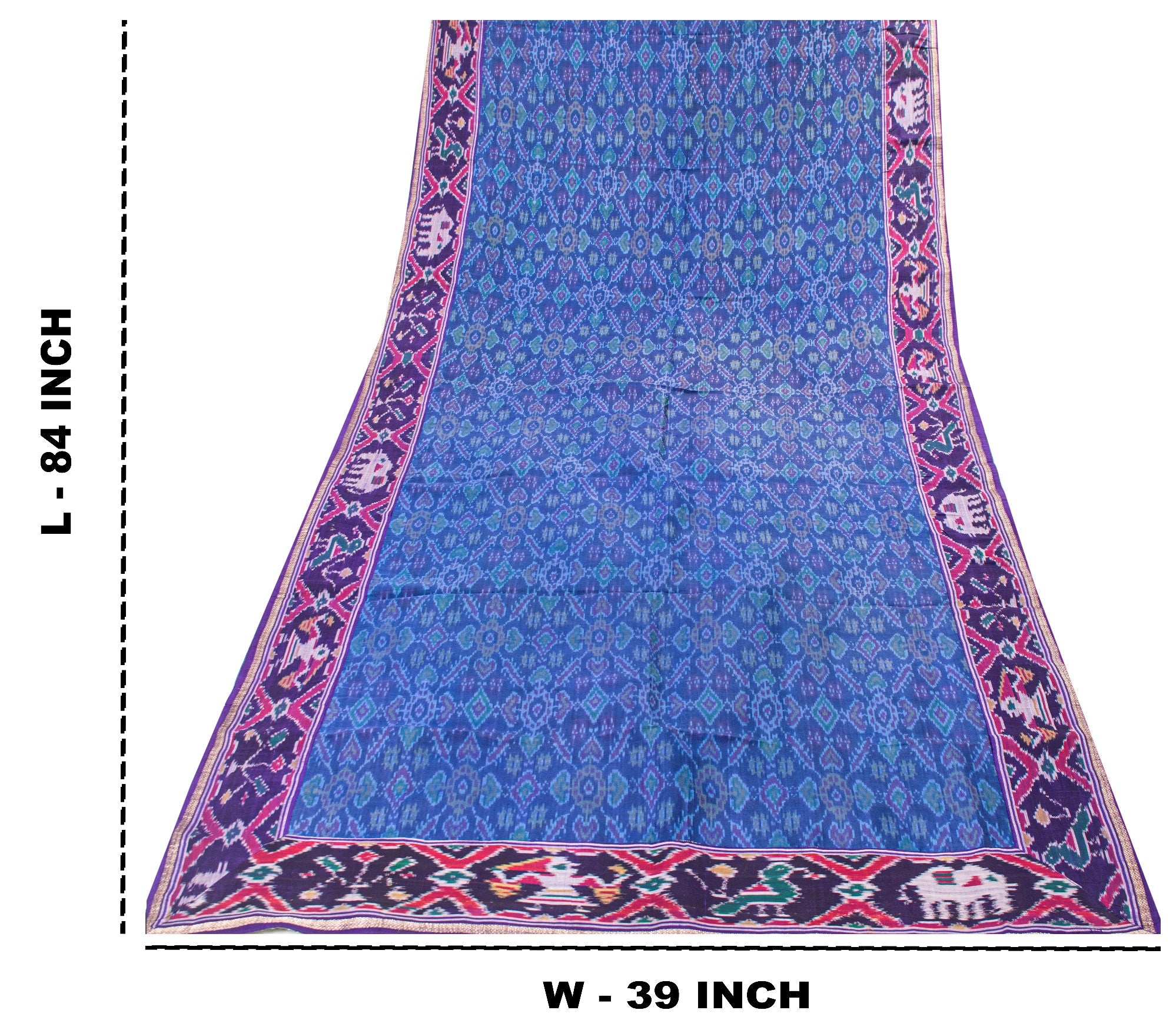 • Brand: • Product Type: Dupatta / Stole / Scarf / Veil • Fabric: Pure Silk • Color: Blue • Work: Hand Ikat Woven • Patan Patola From Gujrat Of India • Design: All-Over Geometric Design And Animal Design On Borders • Texture: Lightweight, Soft Flowy Drape • Length: Long Dupatta / Stole (Approx. Standard Length) • Condition: Vintage / Pre-Owned • Usage: Neck Scarf, Head Veil, Bridal Styling, Festive Wear, Layering Piece • Occasion: Wedding, Party, Ethnic Wear, Special Occasions • Craft Use: Ideal For Upcycling, Fashion Design, Or Decor Projects • Origin: India The Item Color Or Shade May Be Darker Or Lighter Than The Picture.' International Buyers Please Note: Import Duties, Taxes, And Charges Are Not Included In The Item Price Or Postage Cost. Buyer Will Pay Custom Duty/Tax,Vat, And Any Applicable Charges At The Time Of Delivery. Hd-7876