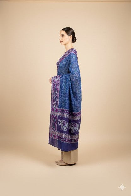 Sanskriti Vintage Blue Pure Silk Dupatta Long Stole Patan Patola Ikat Hand Woven