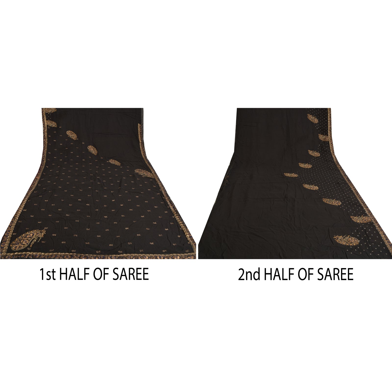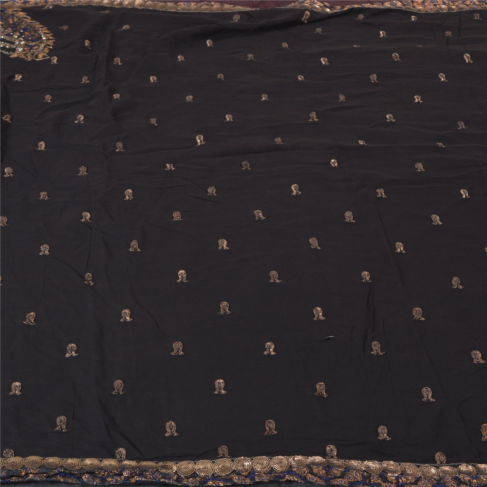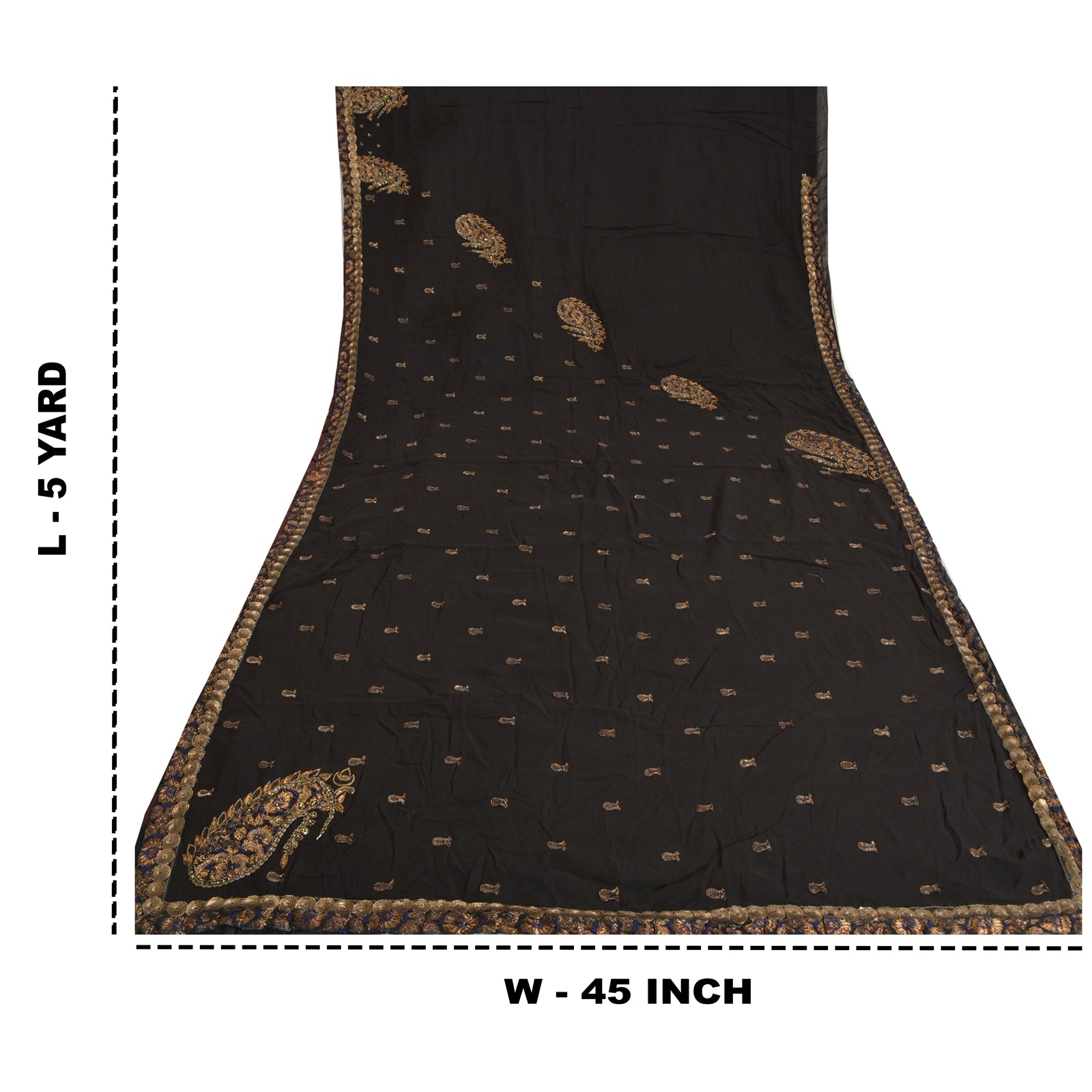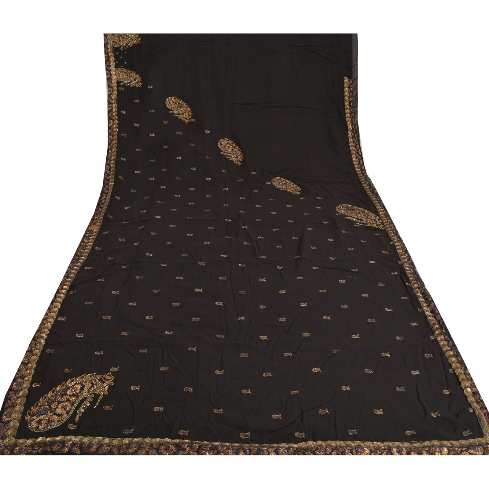 «ЦВЕТ ИЛИ ОТТЕНОК ИЗДЕЛИЯ МОЖЕТ БЫТЬ ТЕМНЕЕ ИЛИ СВЕТЛЕЕ, ЧЕМ НА ИЗОБРАЖЕНИИ». Красивое сари из чистого шелка-жоржета черного цвета с ручной вышивкой. Край выполнен из синей ткани с заплатками из экологически чистой ткани, украшенной золотистыми пайетками. В центре сари расположена аналогичная нашивка из экологически чистой ткани с узором зари/задози, белыми стеклянными бусинами с узором пейсли и цветами. Это сари можно использовать и для различных идей рукоделия. Используйте его для дизайна одежды, в качестве пледа, для оформления окон, обивки, столового белья и многого другого. Дайте волю своим творческим сокам. «Международные покупатели, обратите внимание: Импортные пошлины, налоги и сборы не включены в цену товара или стоимость почтовых расходов. Эти сборы оплачивает покупатель. Пожалуйста, свяжитесь с таможней вашей страны, чтобы определить, какими будут эти дополнительные расходы, до торгов или покупки. Покупатель оплачивает таможенную пошлину/налог. Она рассчитывается и взимается по-разному в каждой стране. Как продавец, я не имею никакого контроля над ней. НДС или налог с продаж рассчитывается платформой во время оформления заказа. Таможенный сбор оплачивается во время доставки.