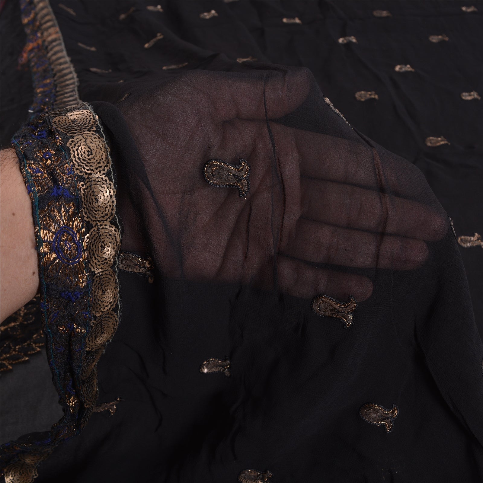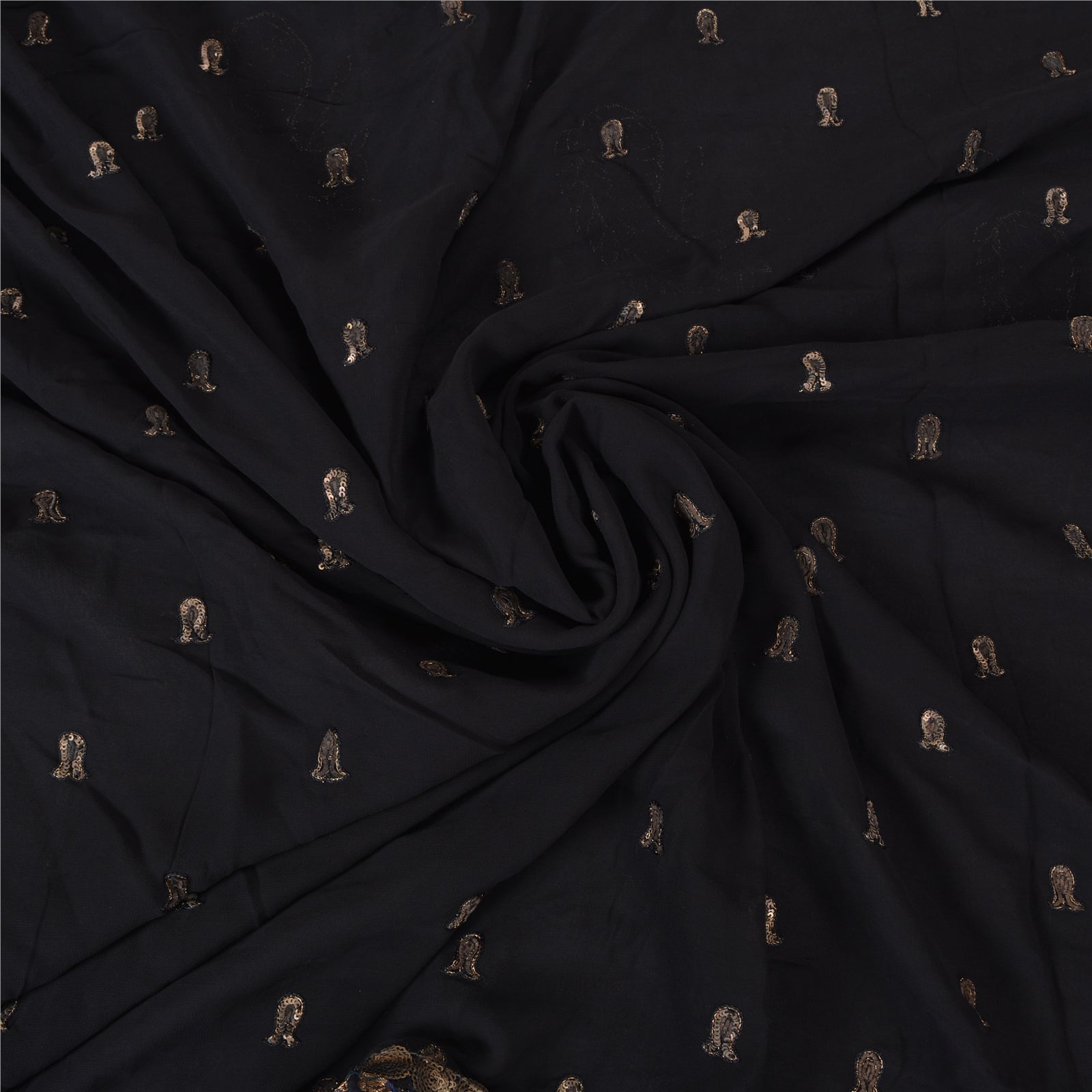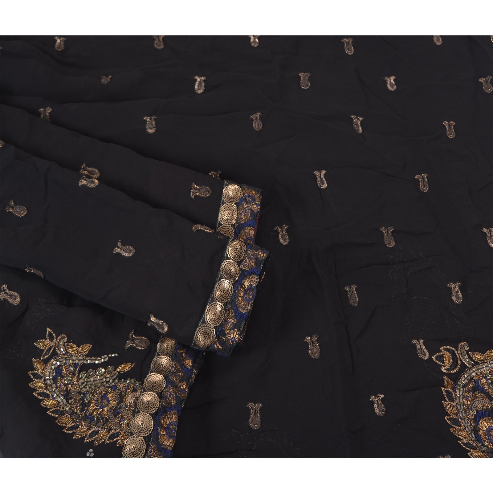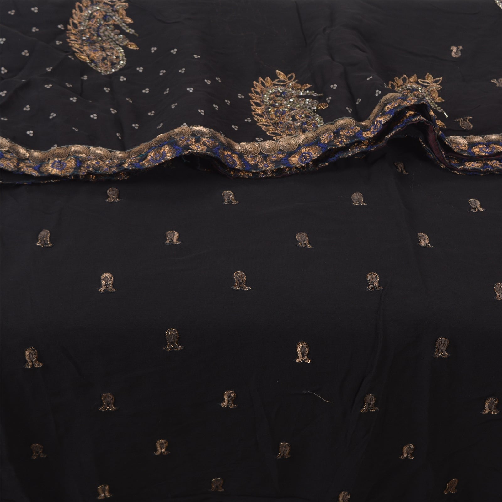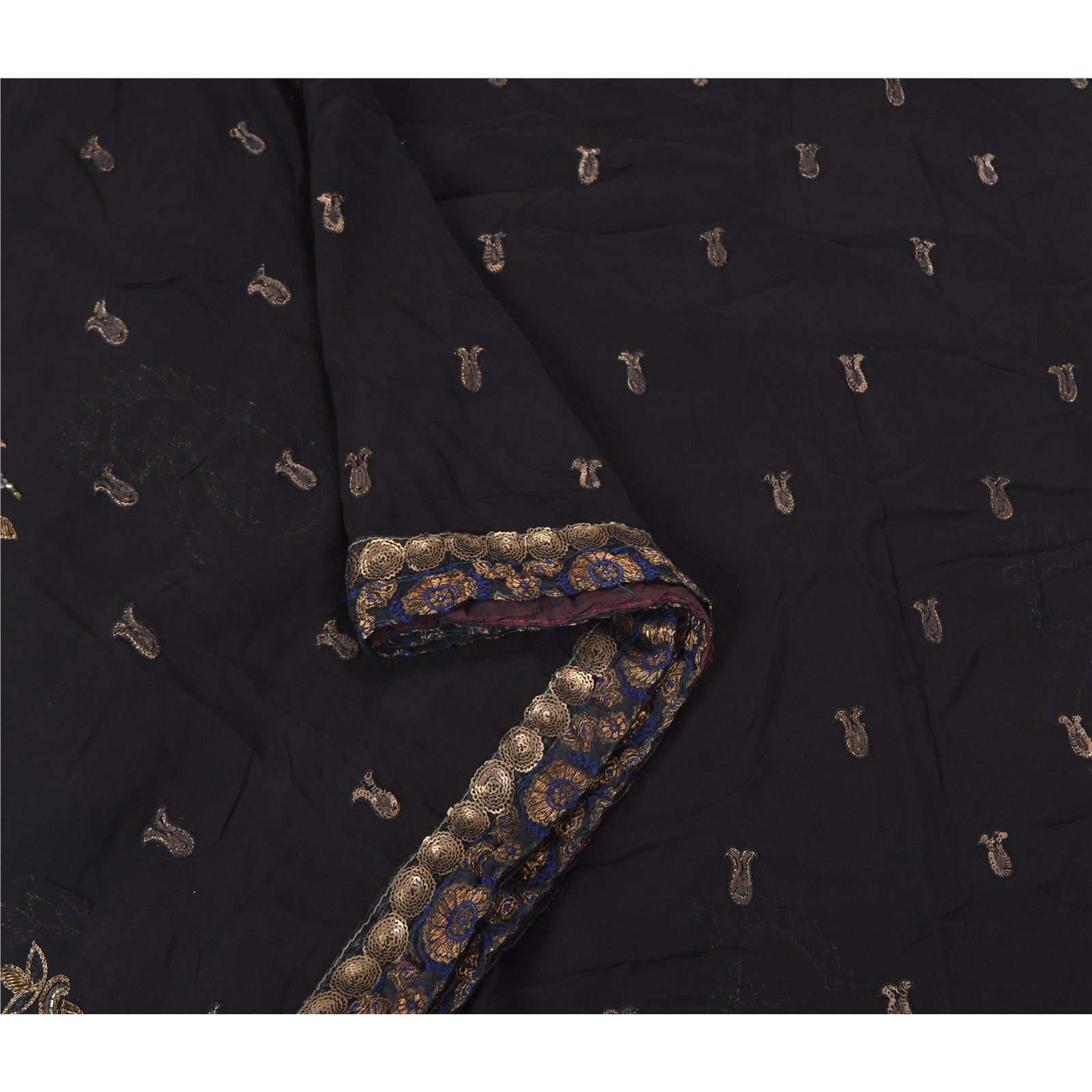 «ЦВЕТ ИЛИ ОТТЕНОК ИЗДЕЛИЯ МОЖЕТ БЫТЬ ТЕМНЕЕ ИЛИ СВЕТЛЕЕ, ЧЕМ НА ИЗОБРАЖЕНИИ». Красивое сари из чистого шелка-жоржета черного цвета с ручной вышивкой. Край выполнен из синей ткани с заплатками из экологически чистой ткани, украшенной золотистыми пайетками. В центре сари расположена аналогичная нашивка из экологически чистой ткани с узором зари/задози, белыми стеклянными бусинами с узором пейсли и цветами. Это сари можно использовать и для различных идей рукоделия. Используйте его для дизайна одежды, в качестве пледа, для оформления окон, обивки, столового белья и многого другого. Дайте волю своим творческим сокам. «Международные покупатели, обратите внимание: Импортные пошлины, налоги и сборы не включены в цену товара или стоимость почтовых расходов. Эти сборы оплачивает покупатель. Пожалуйста, свяжитесь с таможней вашей страны, чтобы определить, какими будут эти дополнительные расходы, до торгов или покупки. Покупатель оплачивает таможенную пошлину/налог. Она рассчитывается и взимается по-разному в каждой стране. Как продавец, я не имею никакого контроля над ней. НДС или налог с продаж рассчитывается платформой во время оформления заказа. Таможенный сбор оплачивается во время доставки.