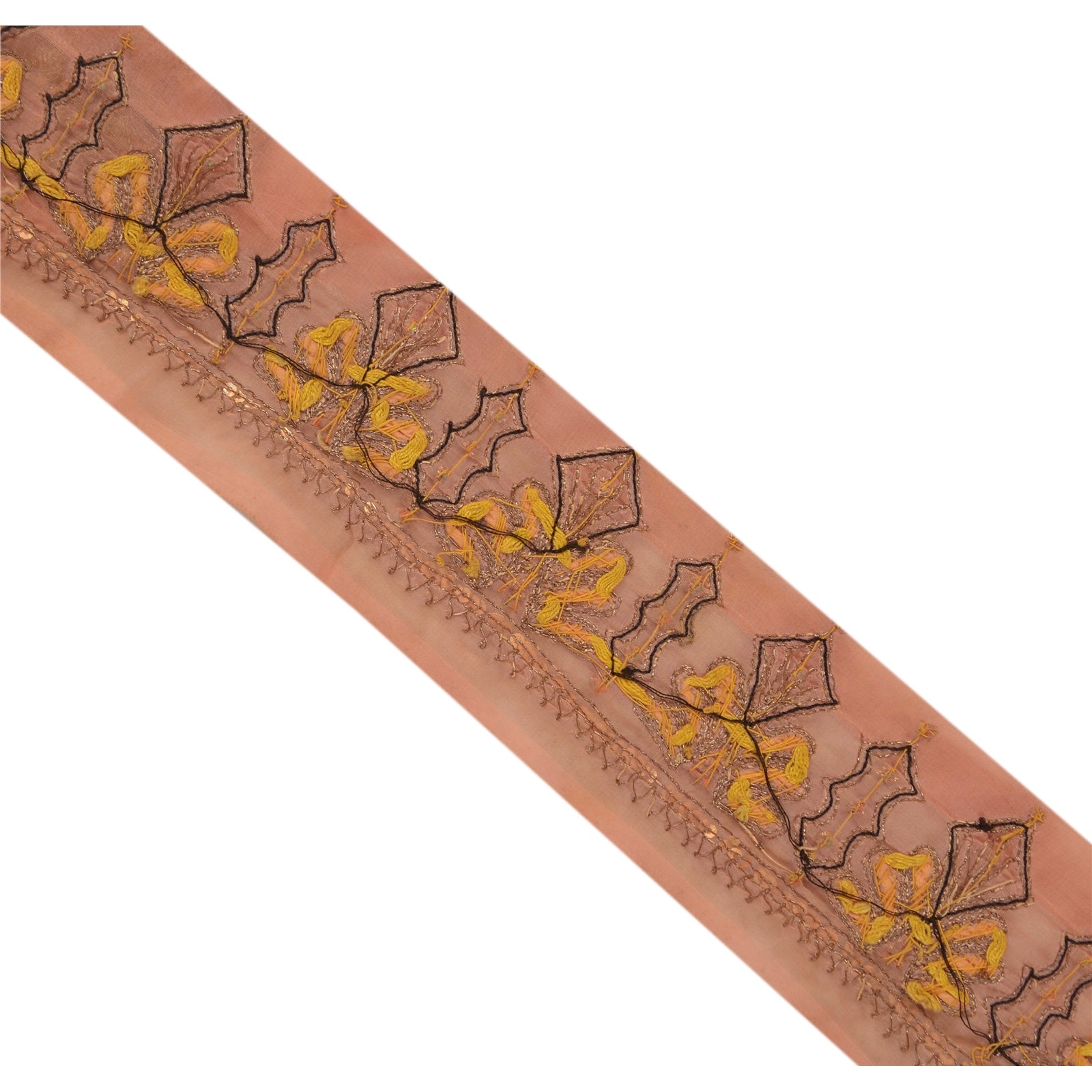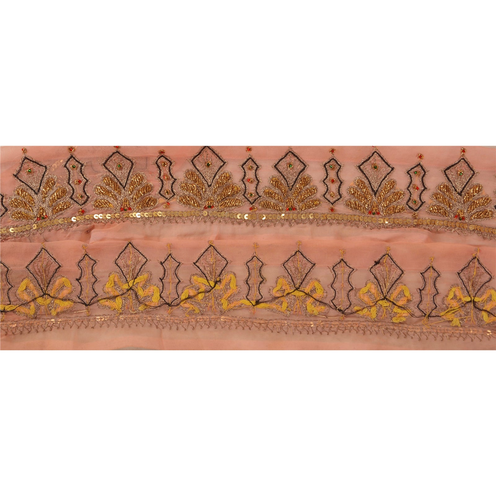 Sanskriti Vintage Border Antique Hand Beaded 1 YD Trim Sequins Pink Zari Lace