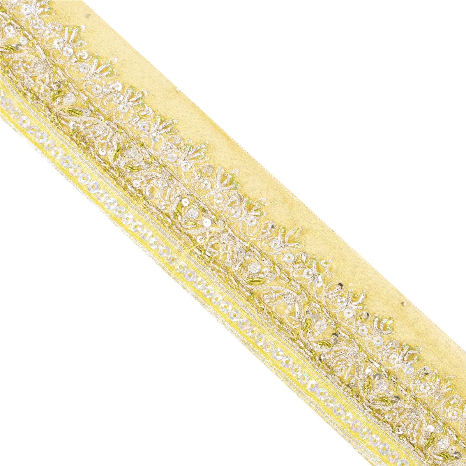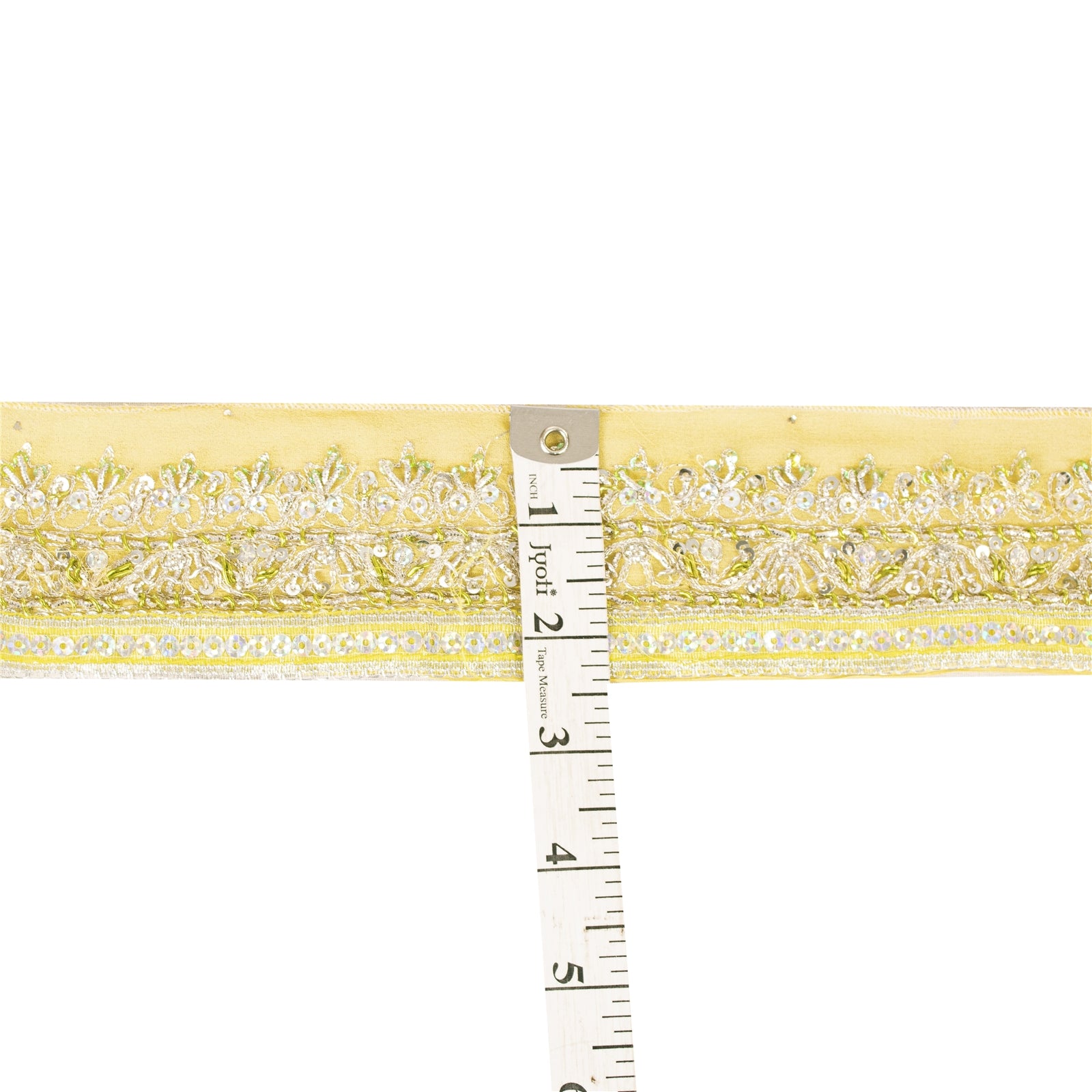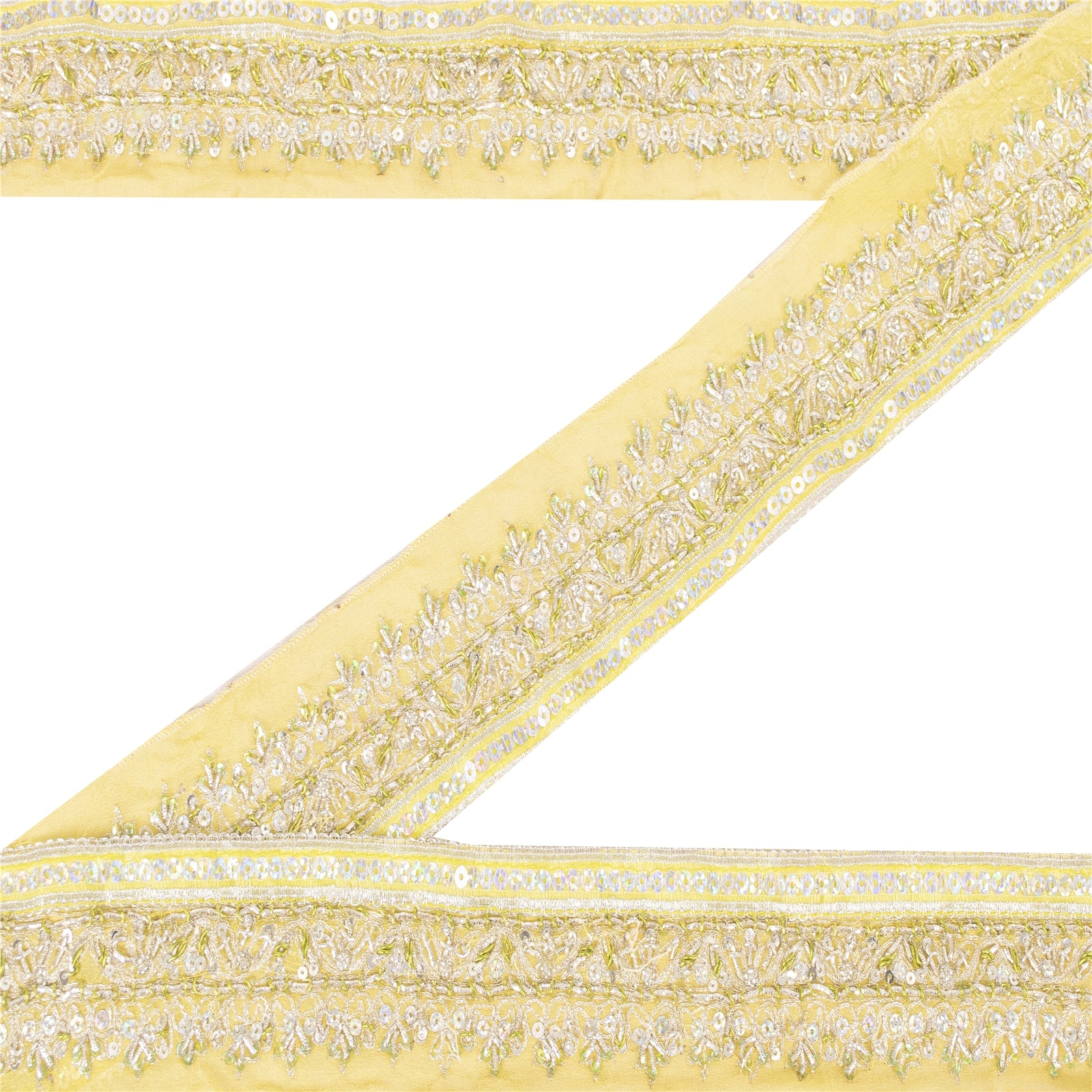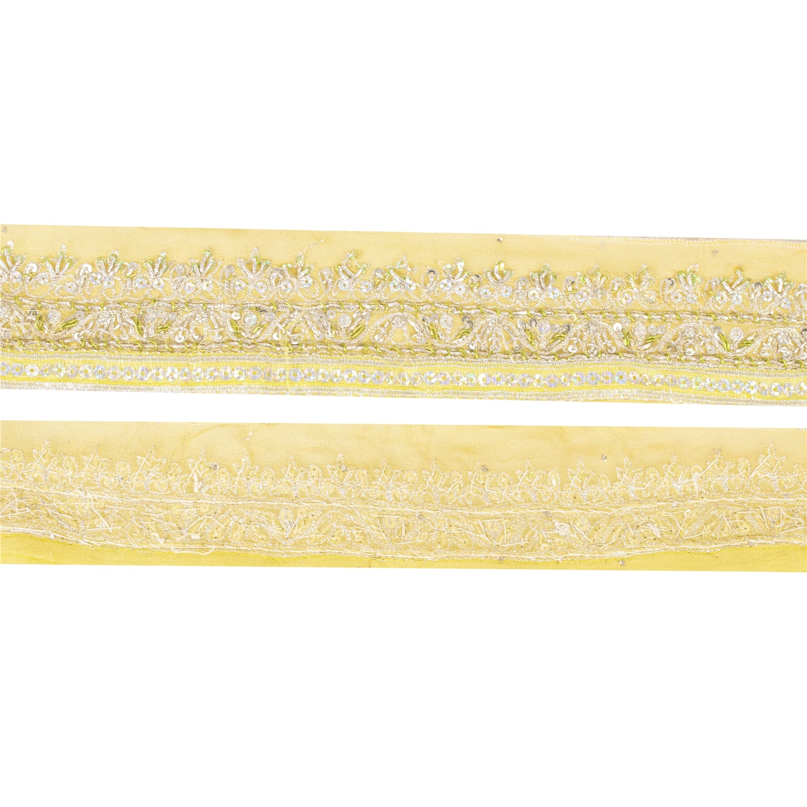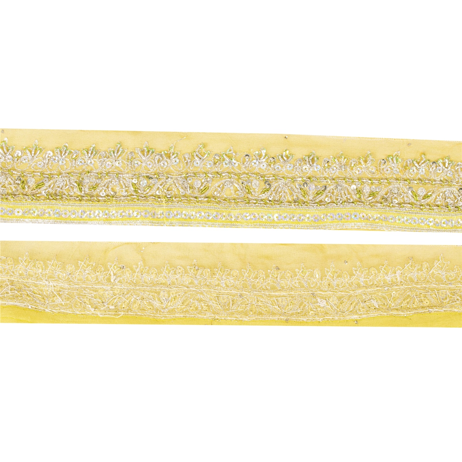 Sanskriti Vintage Border Antique Hand Beaded 1 YD Trim Sewing Green Zardozi Lace