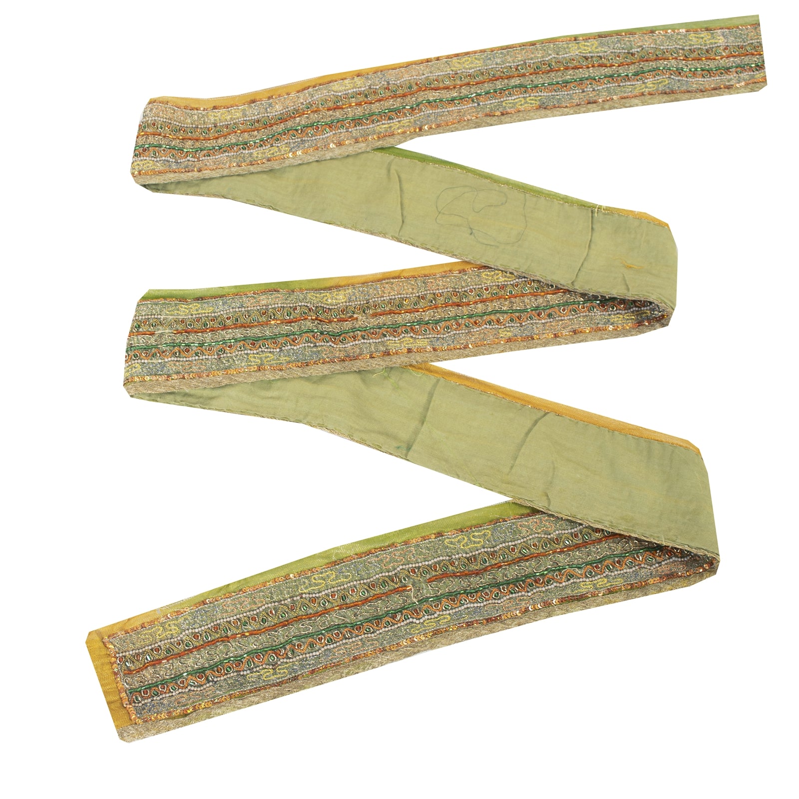 THE ITEM COLOR OR SHADE MAY BE DARKER OR LIGHTER THAN THE PICTURE.' Beautiful pure silk hand embroidered sari border. Further embellished by gold zardozi work, multi color thread work . Also, you can see orange/green glass beads, brown beads, orange sequins work along with floral design on saffron & green base fabric. 1 quantity = 1 yard International buyers please note: Import duties, taxes, and charges are not included in the item price or postage cost. These charges are the buyer's responsibility. Please check with your country's customs office to determine what these additional costs will be prior to bidding or buying.Buyer will pay custom duty/tax. It is calculated and charged differently by every country. As a seller I do not have any control over it. VAT or sales tax is calculated by the platform at the time of checkout. Customs charge is payable at the time of delivery. B-11143
