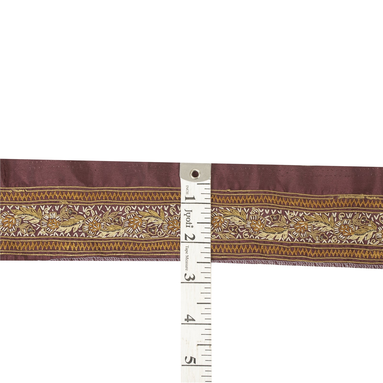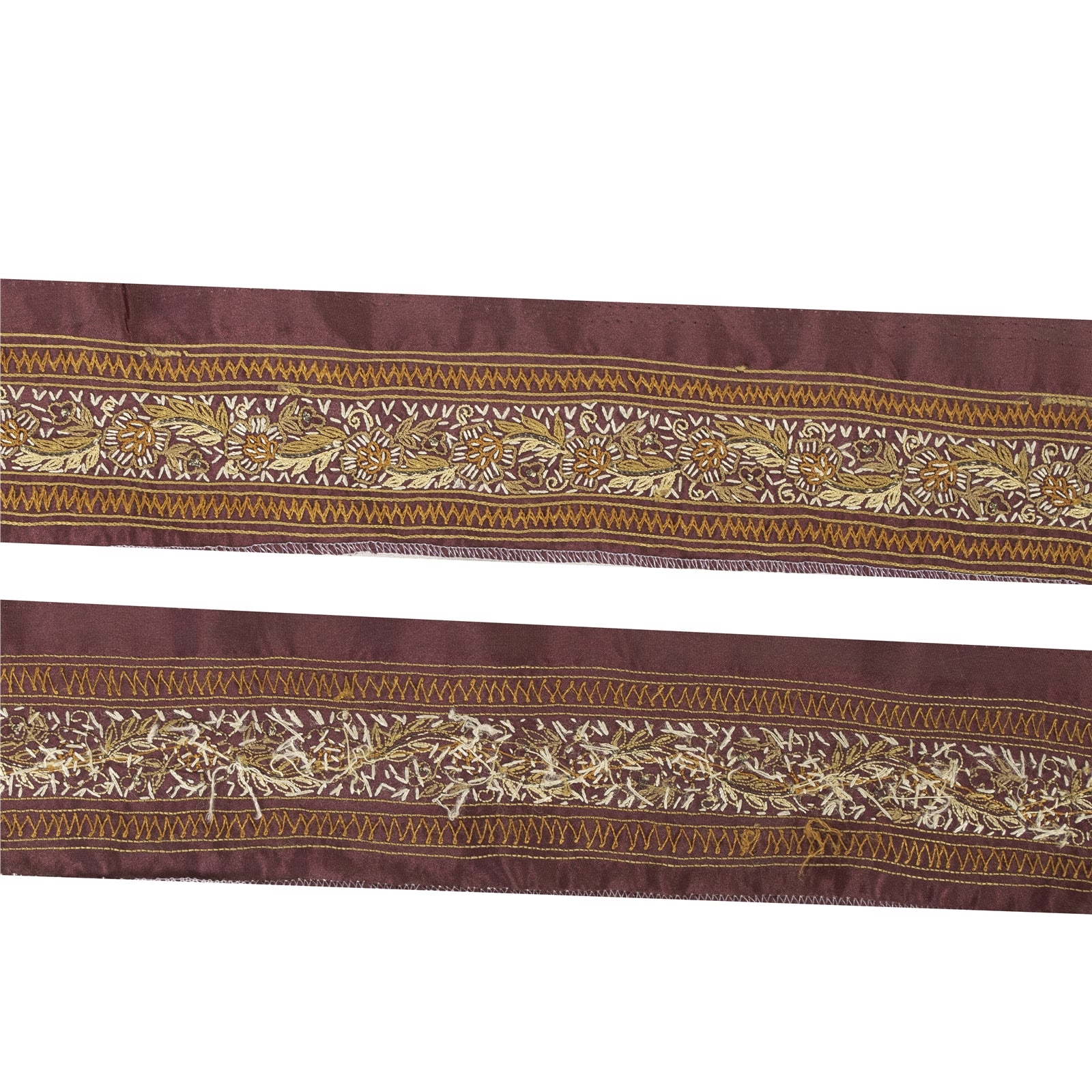 Sanskriti Vintage Border Antique Hand Embroidered 1 YD Trim Ribbon Dark Red Lace